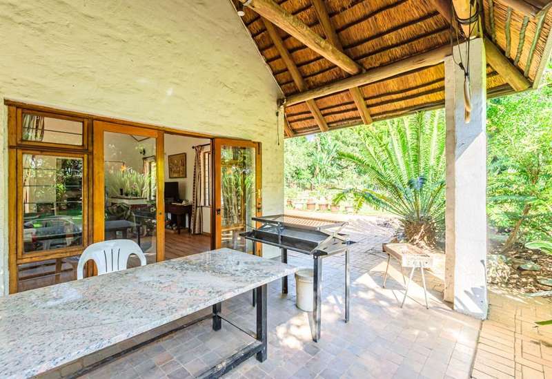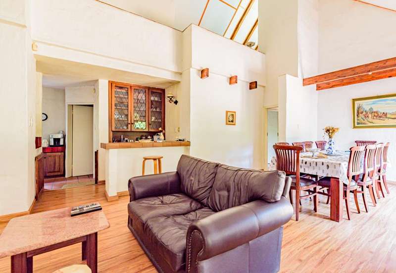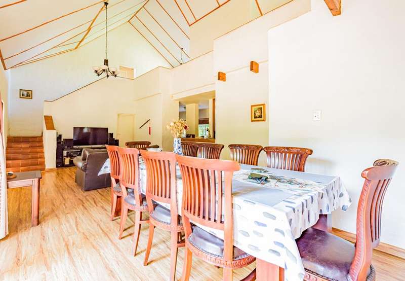 Spacious 4-Bedroom Double-Storey Family Home with Huge Potential! Located in a secure, sought-after neighbourhood, this expansive 4-bedroom home offers the perfect blend of family comfort and investment potential. Boasting a charming, thatched roof covered with Harvey tiles and impressive high ceilings, this double-storey home welcomes you with an inviting, open-plan lounge complete with a cozy fireplace. The lounge flows seamlessly onto a covered patio overlooking a lush garden featuring beautiful cycads - perfect for entertaining or relaxing in nature. The dining area is generously sized and ideal for hosting, while the well-equipped kitchen includes ample cupboard space, a pantry, a separate scullery and a laundry area. Two spacious bedrooms, a full bathroom and a guest toilet are conveniently located downstairs. Upstairs, you will find a second lounge/TV room with views of the garden and pool area, a sunny main bedroom with built-in cupboards, a private balcony and a full en-suite bathroom. There is also a fourth bedroom and an open-plan study area - ideal for remote work or homework zones, as well as a separate bathroom. Additional Features: ?Çó Walk-in safe ?Çó Inverter with 34 solar panels for reliable backup power ?Çó Alarm system with outdoor beams ?Çó Double garage ?Çó Domestic quarters ?Çó Large, sparkling swimming pool ?Çó Expansive garden space with endless potential. A key highlight is the undeveloped section of the stand, offering excellent potential for expansion. With a bit of TLC, this could be your dream family home or a standout investment opportunity. Contact us today to arrange your private viewing of this remarkable property!