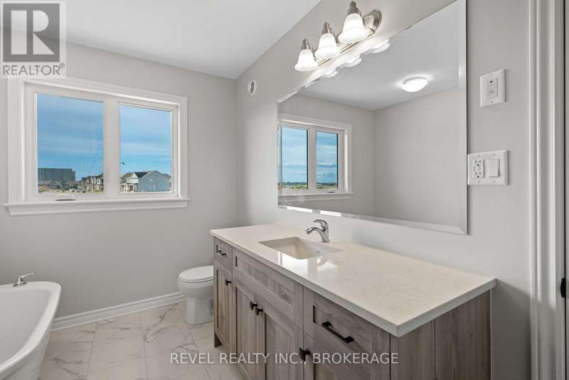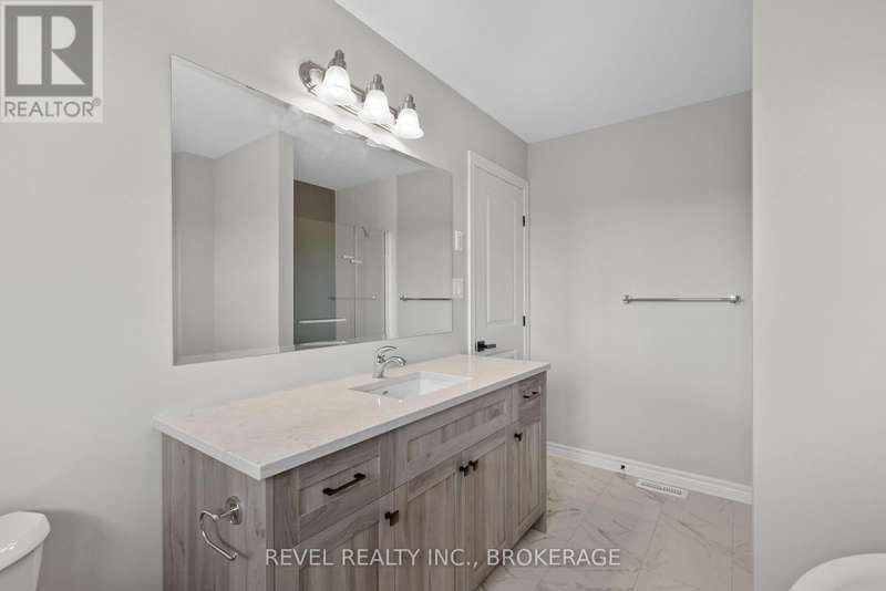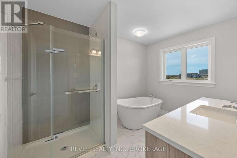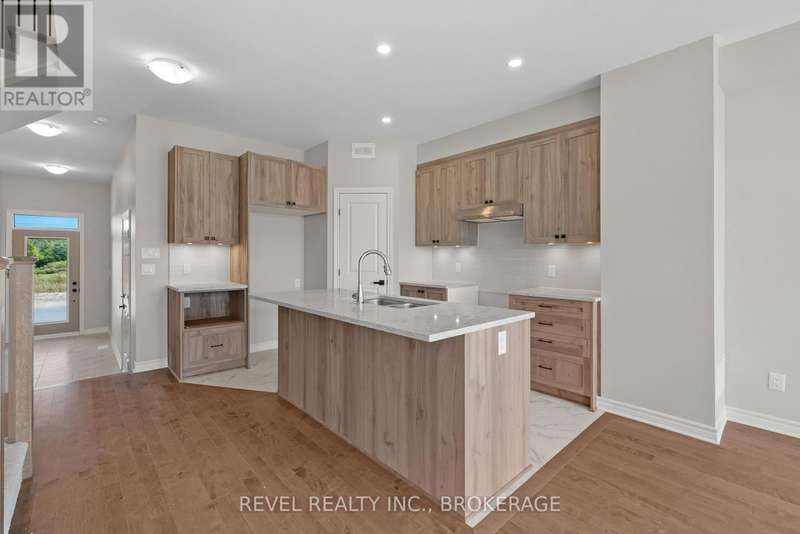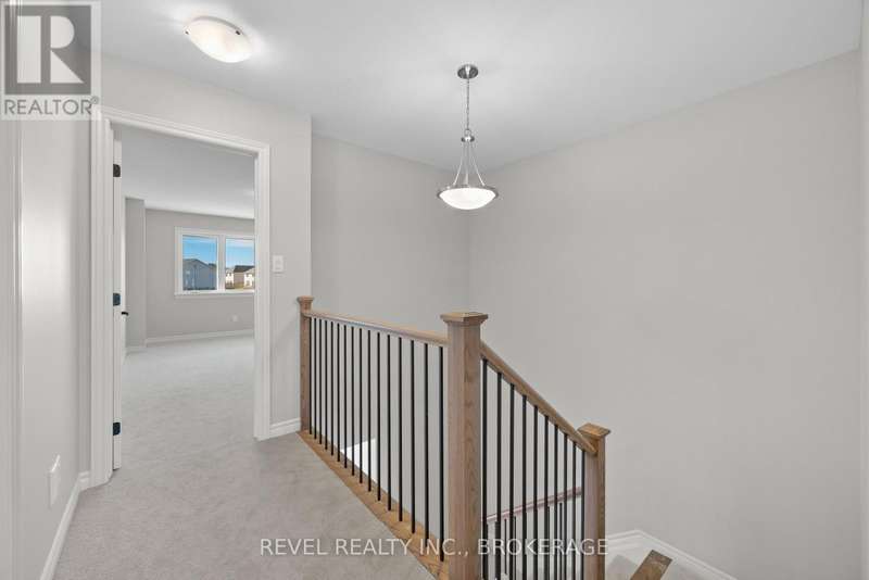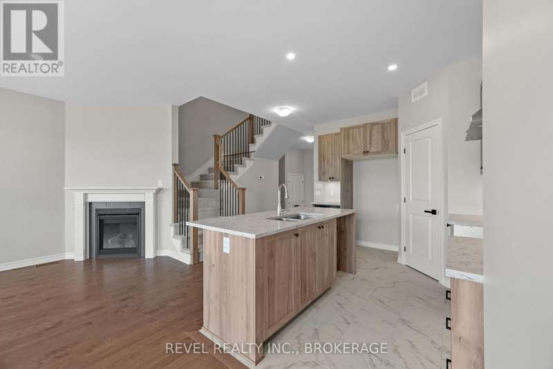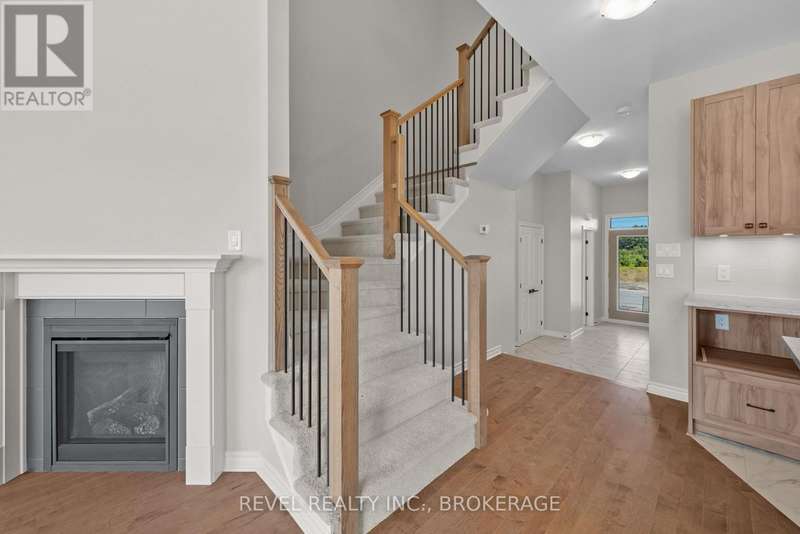 1071 Barrow offers over 1,800 sq ft of finished living space in Kingstons sought-after West Village community. The main floor showcases maple hardwood in a Greystone finish, a cozy gas fireplace in the living room, and a modern kitchen featuring Pietra shaker cabinetry and Quartz Mercer countertops. Upstairs, the primary suite includes a spa-inspired ensuite with a freestanding tub and a glass-enclosed shower, complemented by a spacious walk-in closet. The home also features a partially finished basement, offering plenty of room for future expansion or flexible living space. With its stylish design and energy-efficient construction, this home is the perfect blend of comfort and sophistication. (id:7434)