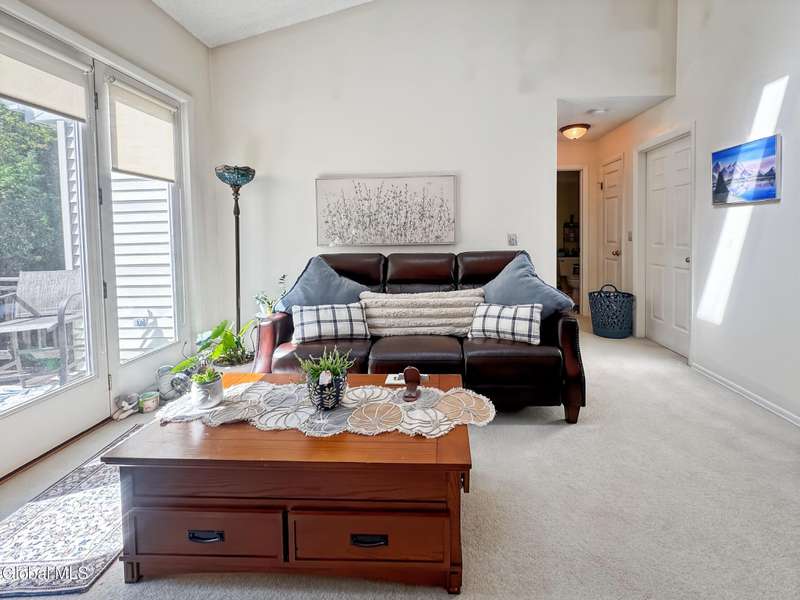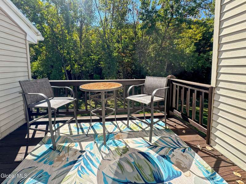 Welcome Home! This beautifully updated two-bedroom condo is tucked away just off Exit 8 in a prime, convenient location. Perched on the second floor, the space feels bright and airy with vaulted ceilings, skylights, and an open floor plan that's filled with natural light. Step outside to your upper deck overlooking a wooded backdrop - the perfect spot for morning coffee or winding down in the evening - with bonus outdoor storage included. If you've been looking for that perfect blend of comfort, style, a swimming pool and tennis courts... this is it!