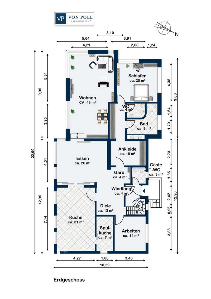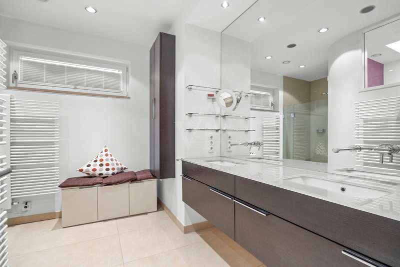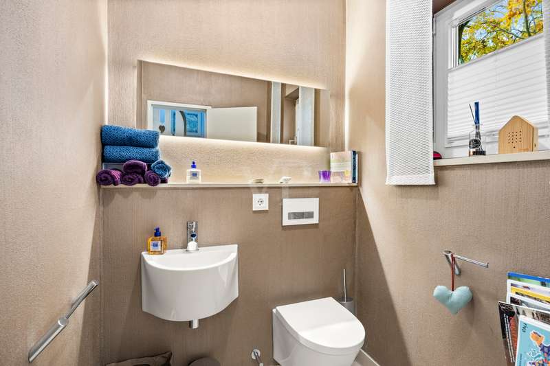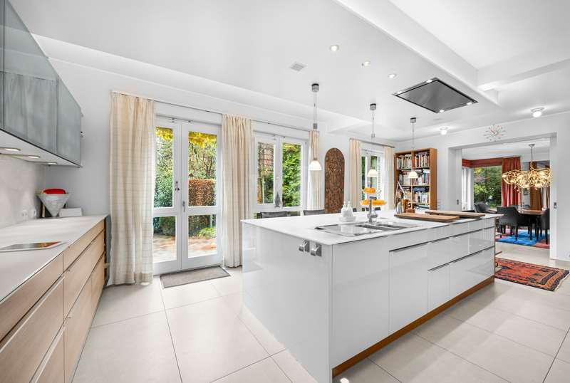 For sale is a modernized detached house that was built in 1956 and extensively renovated in 2010. The extensive refurbishment included both interior design elements and technical systems, which has restored the detached house to almost new condition. With a living area of approx. 280.64 m², this house offers plenty of space for individual design options and family dreams. The property has a total of seven rooms, including four spacious bedrooms, which are perfect for a family. The room sizes allow for a variety of uses - whether as a guest room, office or hobby room, there is room for all your wishes. Three modernized bathrooms and a guest WC ensure comfort and privacy for all residents. The heart of this home is the spacious living room, which impresses with its light-flooded atmosphere. There is plenty of space for relaxation and sociable evenings here. The adjoining kitchen is functionally designed and offers plenty of space for culinary activities. There is also a scullery adjacent to the kitchen, which offers plenty of space thanks to its bespoke built-in cupboards. There are also two balconies or terraces, which are ideal for sunny days and relaxing hours outdoors. The property has a partial basement. In the basement there is a further bedroom, which can be used as a guest bedroom, with its own bathroom. Also in the basement are the boiler room with the heat pump, the switch cabinet and the server for the building services. The property is situated on an impressive plot of approx. 987 m², which offers a wide range of possible uses. The outdoor area is ideal for leisure activities and for creating a garden paradise. The well-kept garden, laid out as an attractive south-facing garden with a brick garden shed, was designed and laid out in two construction phases by a gardening company. It offers plenty of space for children and pets and gives the property a pleasant atmosphere. The house's advanced heating system deserves special mention. Equipped with efficient underfloor heating and an environmentally friendly heat pump, it ensures a pleasant indoor climate all year round. This modern heating system underlines the high quality of the property and ensures low energy consumption. In summary, this modernized detached house offers an ideal home for families who value quality and space. The successful combination of generous living space, functional floor plan and modern features makes this property an excellent choice for your new home. Arrange a viewing appointment now to see the benefits of this property for yourself. We look forward to hearing from you!
