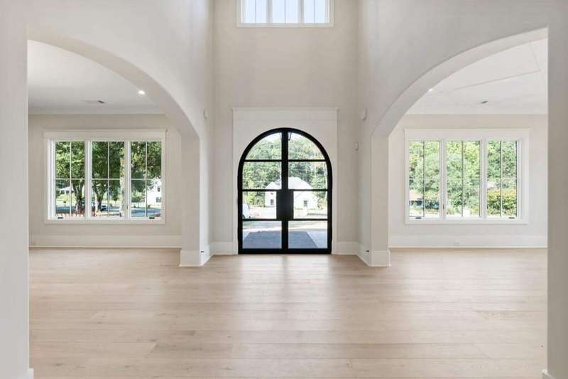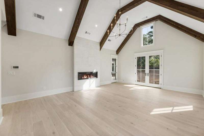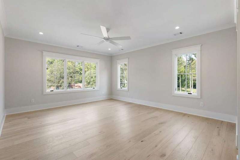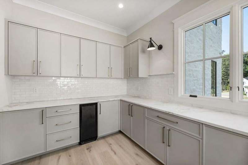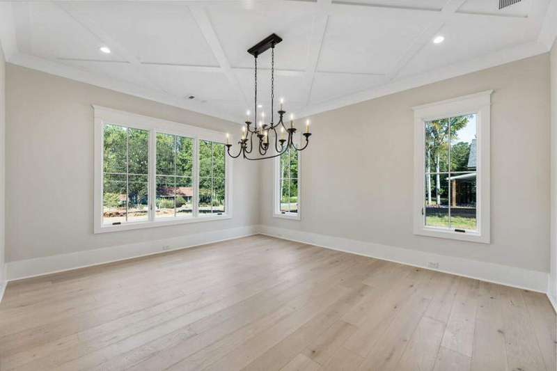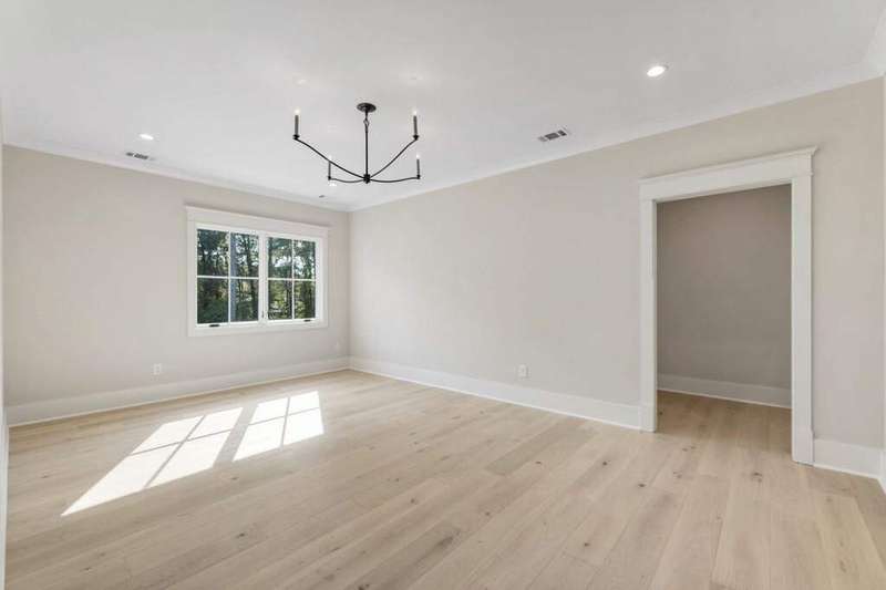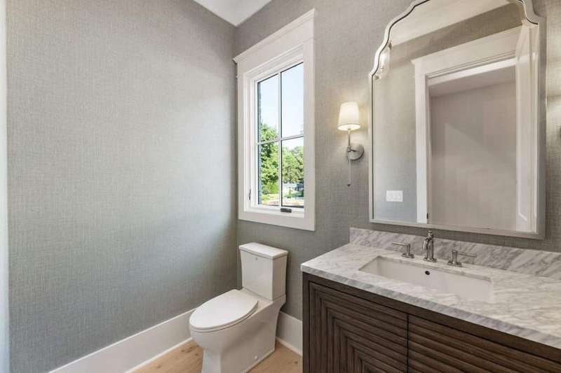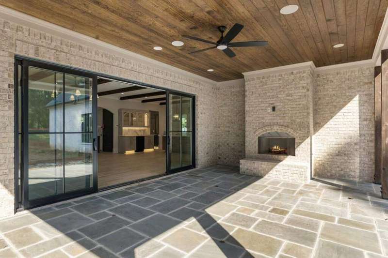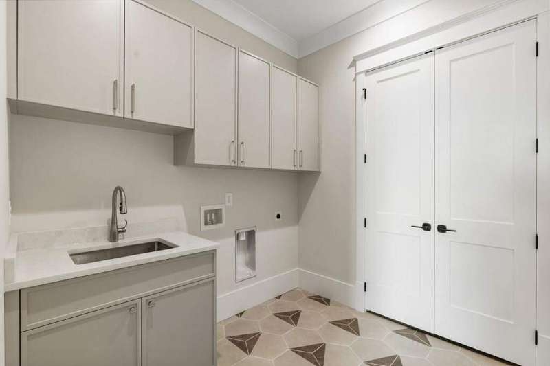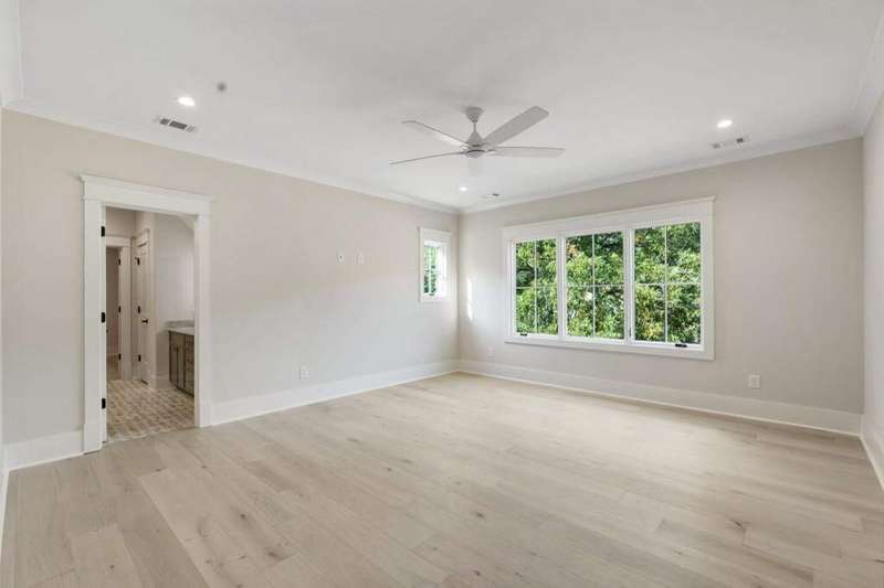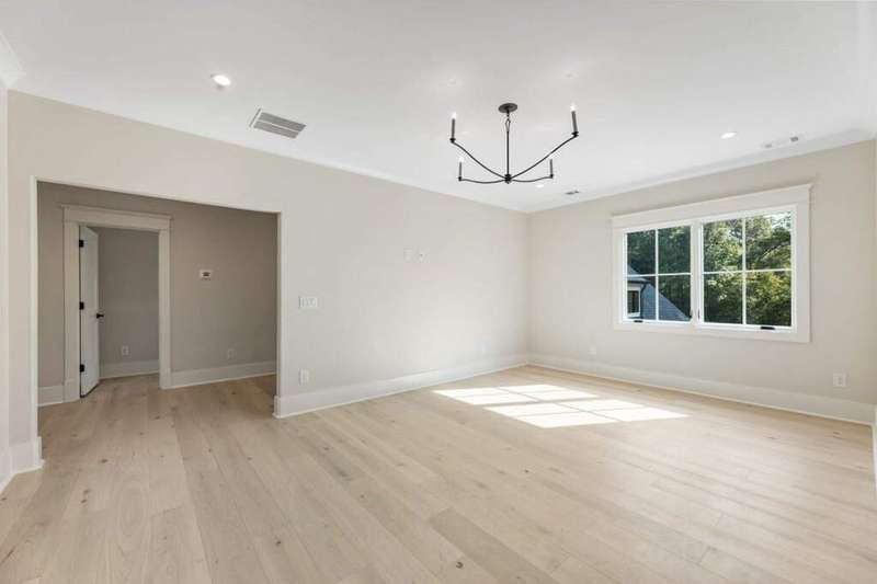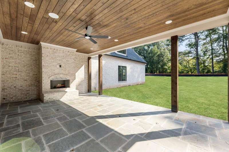 On this quiet street just outside of downtown Alpharetta, enjoy the convenience of a premier location paired with the serenity of a private and level walk out on the main level to the backyard with this gorgeous new construction. This newly built home on just under an acre lot has been thoughtfully designed and beautifully appointed with every upgrade, including a fully installed elevator for effortless access between levels and primary on main level with spacious bedrooms upstairs and three laundry rooms.. The main-level primary suite offers vaulted ceiling with beams and a fireplace as well as access to the backyard and covered porch area. There is abundant storage, and seamless walkout to outdoor living spaces make this residence as functional as it is refined. This elevation is stunning with timeless brick and accented with limestone details and an arched iron entry door sets the tone for enduring craftsmanship from the very first impression. A level driveway leads to the three-car garage with carriage doors, while gas lanterns and cedar columns add warmth and character to the front covered porch. Inside, light-filled rooms with soaring ceilings and rich hardwood floors welcome you. The living room is anchored by a striking 48-inch fireplace and opens to the gourmet kitchen, where custom cabinetry extends to the ceiling, stone countertops shine under designer fixtures, and professional Sub Zero and Wolf-grade appliances make entertaining effortless. A walk-in pantry and butler's area with wine cooler add convenience and charm as well as a scullery featuring additional beverage refrigerator, dishwasher and lots of extra counter and cabinet space for your entertaining and storage needs. The main-level primary suite features vaulted ceilings with cedar beams and a spa-like bath with soaking tub, oversized glass shower, and expansive custom closet. Three car garage with expansive mud room and laundry space. Upstairs, three bedrooms each include private en-suite baths featuring custom and stunning tile patterns with walk-in closets and laundry room. A fourth bedroom or suite is currently envisioned as a flex space with full bathroom offering versatility and can easily serve as another bedroom if desired. Outdoor living is a highlight with a covered back porch featuring a wood-burning fireplace, cedar beam mantle, and peaceful views of the landscaped, level backyard. A pool permit has already been applied for and may be priced out for the new homeowner and their design and dreams for outdoor living space. With refined finishes throughout, smart home wiring, and energy-efficient systems, this home blends luxury, livability, and location just moments from the heart of downtown Alpharetta. *Virtual landscaping/grass added to images.