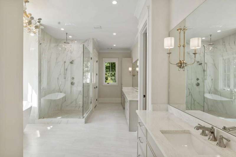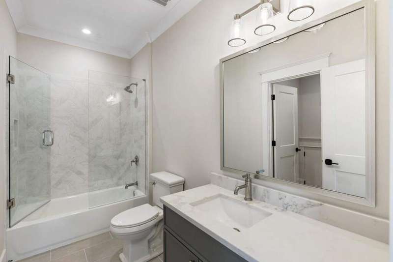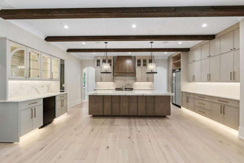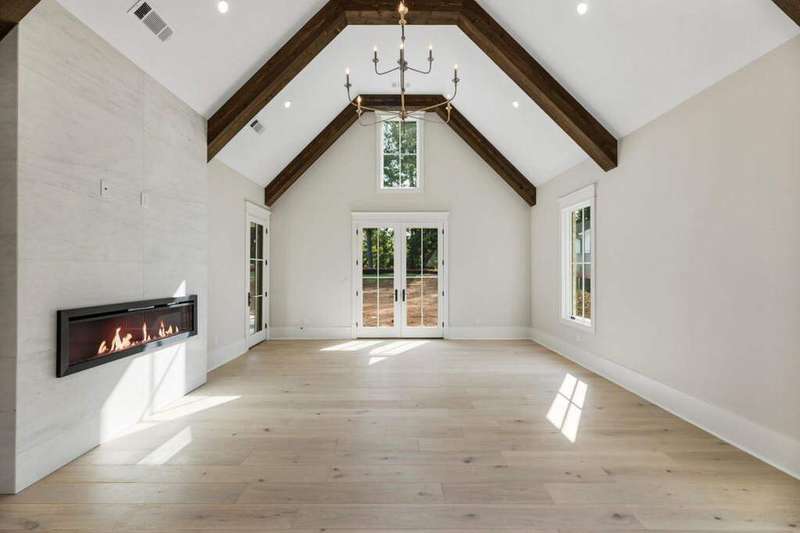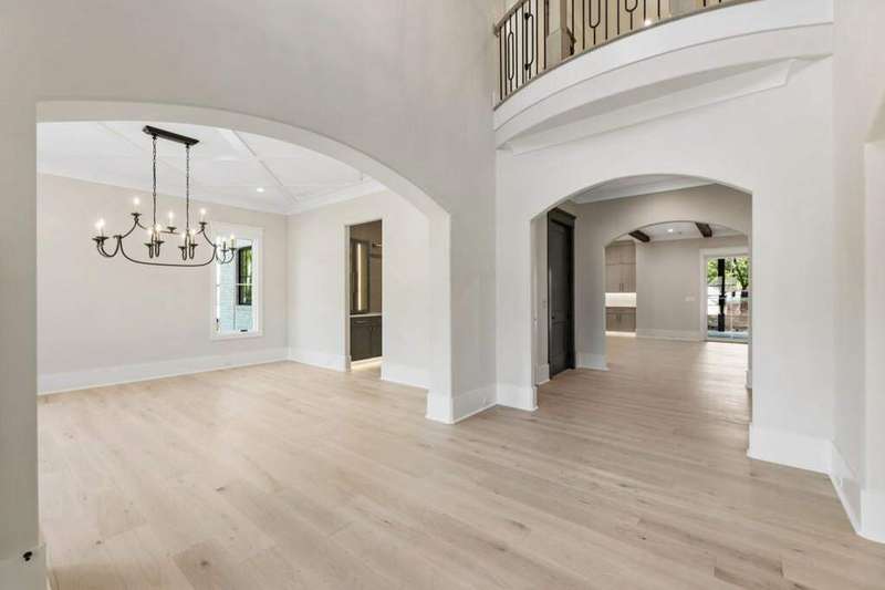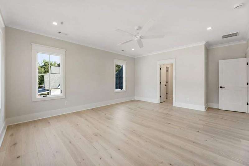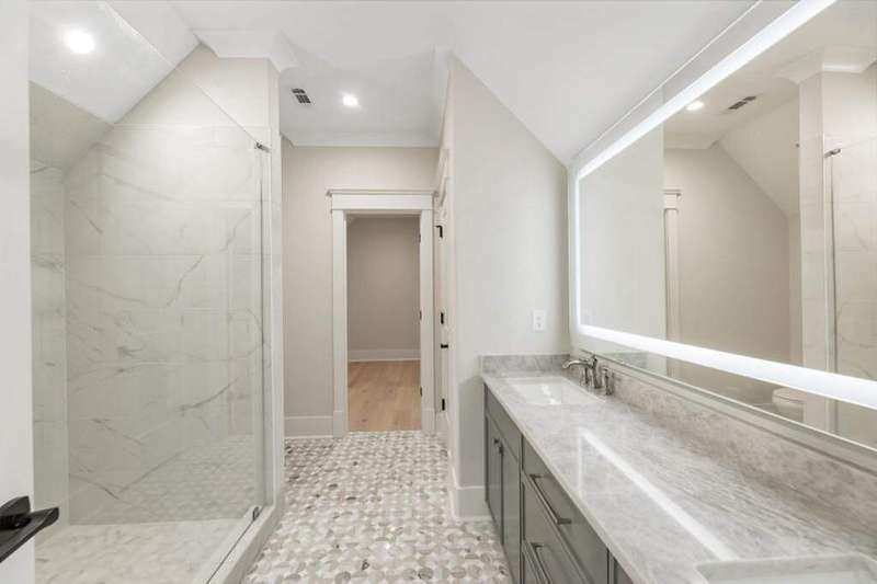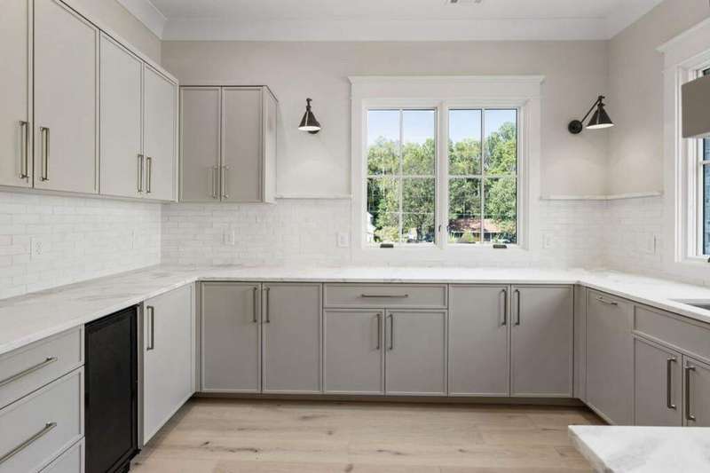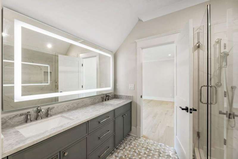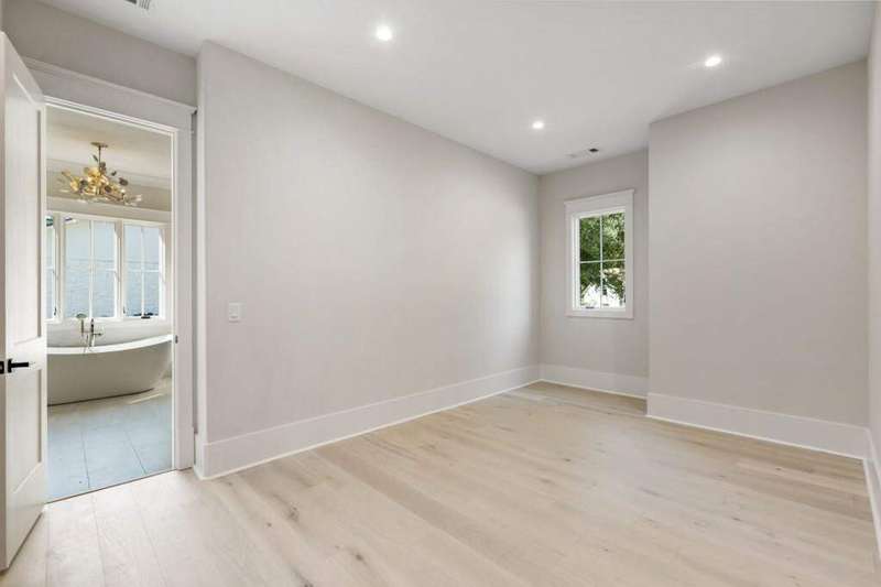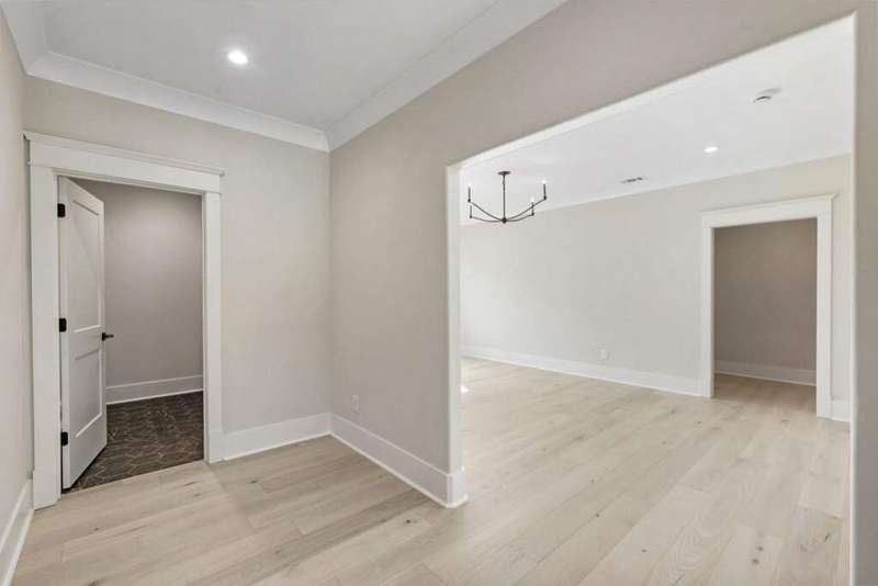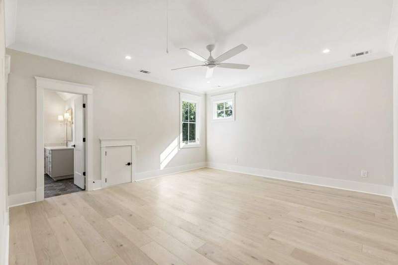 On this quiet street just outside of downtown Alpharetta, enjoy the convenience of a premier location paired with the serenity of a private and level walk out on the main level to the backyard with this gorgeous new construction. This newly built home on just under an acre lot has been thoughtfully designed and beautifully appointed with every upgrade, including a fully installed elevator for effortless access between levels and primary on main level with spacious bedrooms upstairs and three laundry rooms.. The main-level primary suite offers vaulted ceiling with beams and a fireplace as well as access to the backyard and covered porch area. There is abundant storage, and seamless walkout to outdoor living spaces make this residence as functional as it is refined. This elevation is stunning with timeless brick and accented with limestone details and an arched iron entry door sets the tone for enduring craftsmanship from the very first impression. A level driveway leads to the three-car garage with carriage doors, while gas lanterns and cedar columns add warmth and character to the front covered porch. Inside, light-filled rooms with soaring ceilings and rich hardwood floors welcome you. The living room is anchored by a striking 48-inch fireplace and opens to the gourmet kitchen, where custom cabinetry extends to the ceiling, stone countertops shine under designer fixtures, and professional Sub Zero and Wolf-grade appliances make entertaining effortless. A walk-in pantry and butler's area with wine cooler add convenience and charm as well as a scullery featuring additional beverage refrigerator, dishwasher and lots of extra counter and cabinet space for your entertaining and storage needs. The main-level primary suite features vaulted ceilings with cedar beams and a spa-like bath with soaking tub, oversized glass shower, and expansive custom closet. Three car garage with expansive mud room and laundry space. Upstairs, three bedrooms each include private en-suite baths featuring custom and stunning tile patterns with walk-in closets and laundry room. A fourth bedroom or suite is currently envisioned as a flex space with full bathroom offering versatility and can easily serve as another bedroom if desired. Outdoor living is a highlight with a covered back porch featuring a wood-burning fireplace, cedar beam mantle, and peaceful views of the landscaped, level backyard. A pool permit has already been applied for and may be priced out for the new homeowner and their design and dreams for outdoor living space. With refined finishes throughout, smart home wiring, and energy-efficient systems, this home blends luxury, livability, and location just moments from the heart of downtown Alpharetta. *Virtual landscaping/grass added to images.
