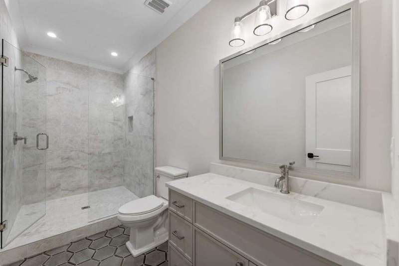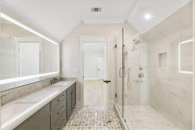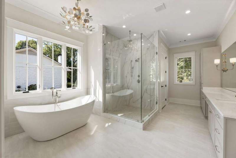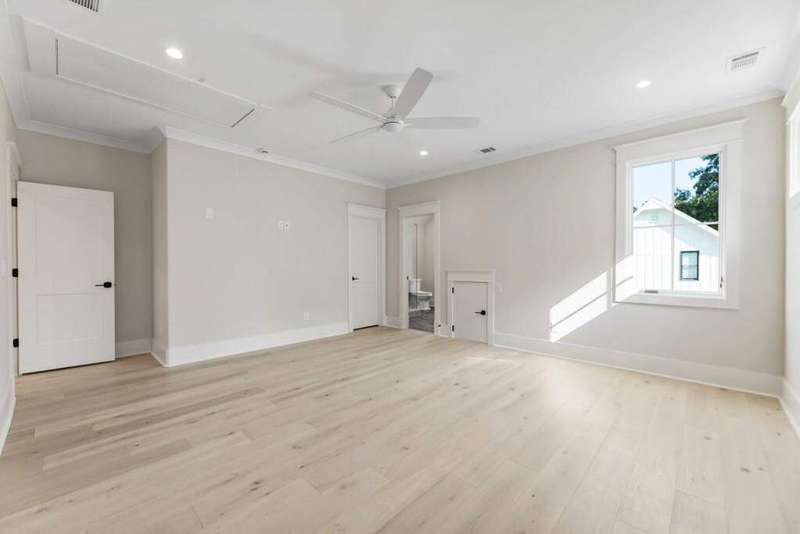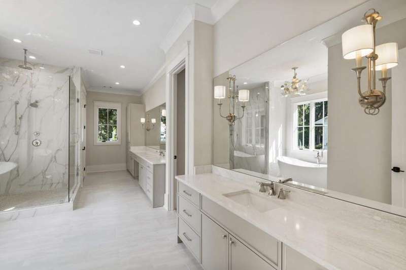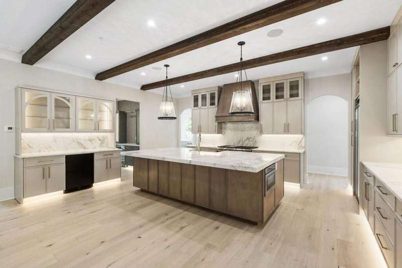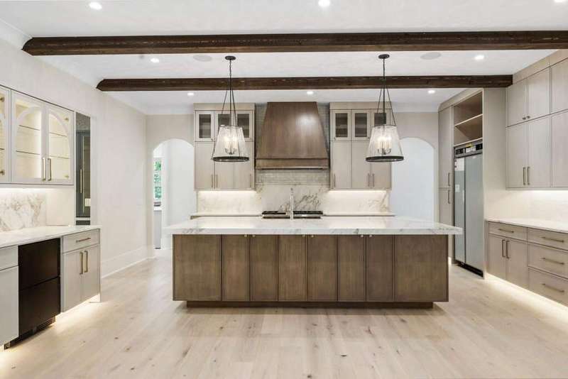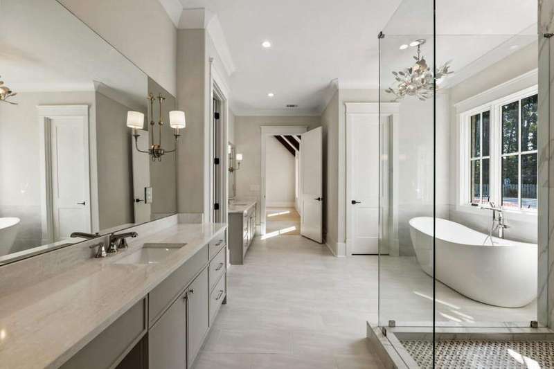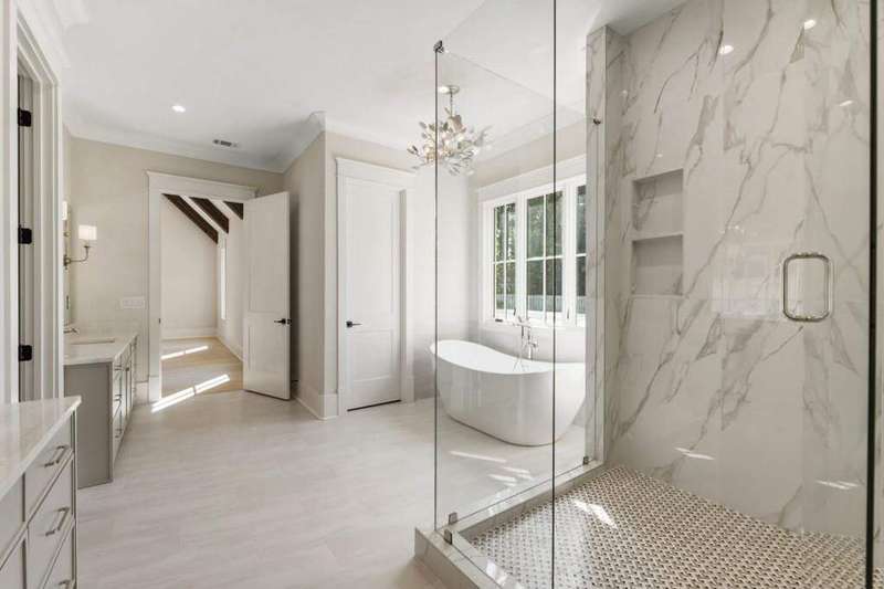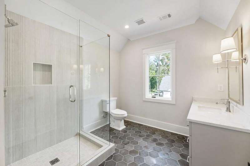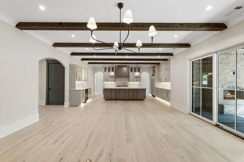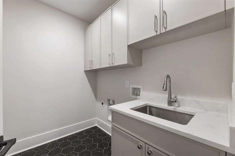 On this quiet street just outside of downtown Alpharetta, enjoy the convenience of a premier location paired with the serenity of a private and level walk out on the main level to the backyard with this gorgeous new construction. This newly built home on just under an acre lot has been thoughtfully designed and beautifully appointed with every upgrade, including a fully installed elevator for effortless access between levels and primary on main level with spacious bedrooms upstairs and three laundry rooms.. The main-level primary suite offers vaulted ceiling with beams and a fireplace as well as access to the backyard and covered porch area. There is abundant storage, and seamless walkout to outdoor living spaces make this residence as functional as it is refined. This elevation is stunning with timeless brick and accented with limestone details and an arched iron entry door sets the tone for enduring craftsmanship from the very first impression. A level driveway leads to the three-car garage with carriage doors, while gas lanterns and cedar columns add warmth and character to the front covered porch. Inside, light-filled rooms with soaring ceilings and rich hardwood floors welcome you. The living room is anchored by a striking 48-inch fireplace and opens to the gourmet kitchen, where custom cabinetry extends to the ceiling, stone countertops shine under designer fixtures, and professional Sub Zero and Wolf-grade appliances make entertaining effortless. A walk-in pantry and butler's area with wine cooler add convenience and charm as well as a scullery featuring additional beverage refrigerator, dishwasher and lots of extra counter and cabinet space for your entertaining and storage needs. The main-level primary suite features vaulted ceilings with cedar beams and a spa-like bath with soaking tub, oversized glass shower, and expansive custom closet. Three car garage with expansive mud room and laundry space. Upstairs, three bedrooms each include private en-suite baths featuring custom and stunning tile patterns with walk-in closets and laundry room. A fourth bedroom or suite is currently envisioned as a flex space with full bathroom offering versatility and can easily serve as another bedroom if desired. Outdoor living is a highlight with a covered back porch featuring a wood-burning fireplace, cedar beam mantle, and peaceful views of the landscaped, level backyard. A pool permit has already been applied for and may be priced out for the new homeowner and their design and dreams for outdoor living space. With refined finishes throughout, smart home wiring, and energy-efficient systems, this home blends luxury, livability, and location just moments from the heart of downtown Alpharetta. *Virtual landscaping/grass added to images.