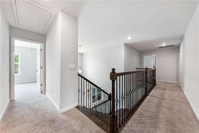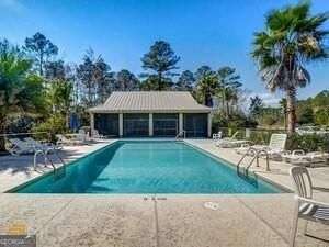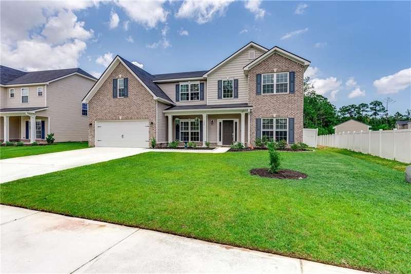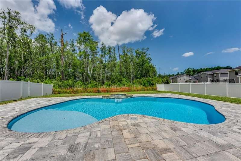 Come into this beautifully crafted 5-bedroom, 3-bathroom home and be greeted by a grand two-story foyer, elegant wood tread staircase with wrought iron spindles, and detailed wainscoting along the stairs and formal dining room-creating a warm, welcoming impression from the start. The main floor offers flexibility and function with a dedicated office, a full bathroom, and a guest bedroom-perfect for visitors or multi-generational living. At the heart of the home is a chef-inspired kitchen featuring an island, high-top breakfast bar, double ovens, an oversized walk-in pantry, and a sunny breakfast nook-perfect for entertaining or everyday living. Upstairs, youll find the HUGE primary suite, which includes either three separate closets or two closets and a bonus room that can serve as a nursery, private office, or dressing room. A hidden room-tucked away behind a bookshelf-adds a unique touch of character and function. The spa-like en-suite bath features dual vanities, a soaking tub, a large tiled shower, and a private water closet. Laundry is conveniently located upstairs as well with the other bedrooms. Come outside to your private backyard oasis with a beautiful cobblestone pool and tranquil fountain feature-ideal for relaxing or entertaining. Located within walking distance to Camden County High School, just 5.8 miles to Kings Bay Naval Base, and only 37.5 miles to FLETC-this home combines elegance, space, and unbeatable convenience! Settlers Hammock neighborhood does also have its own pool as well as basketball hoop, play ground, and sidewalks!