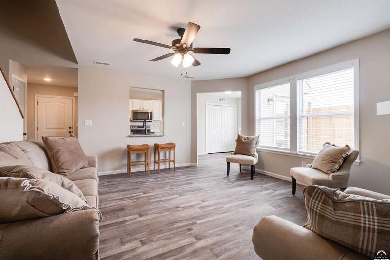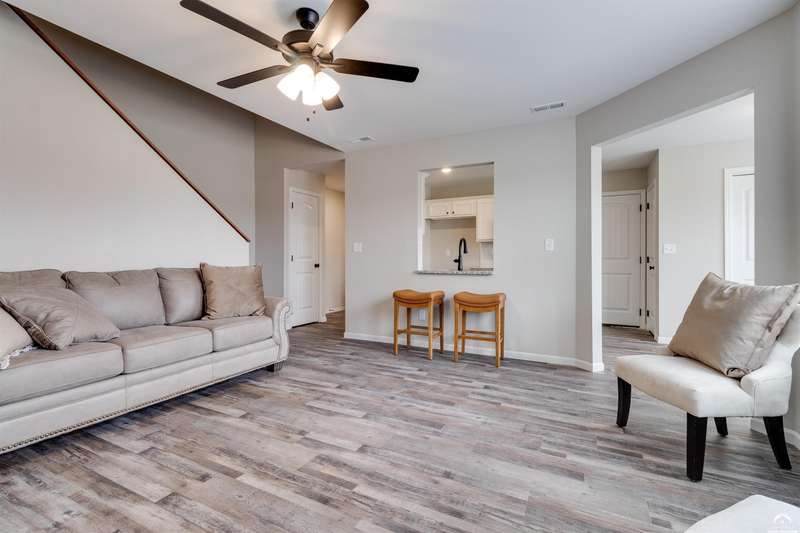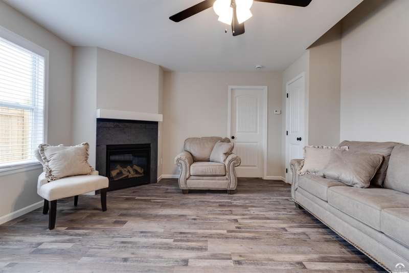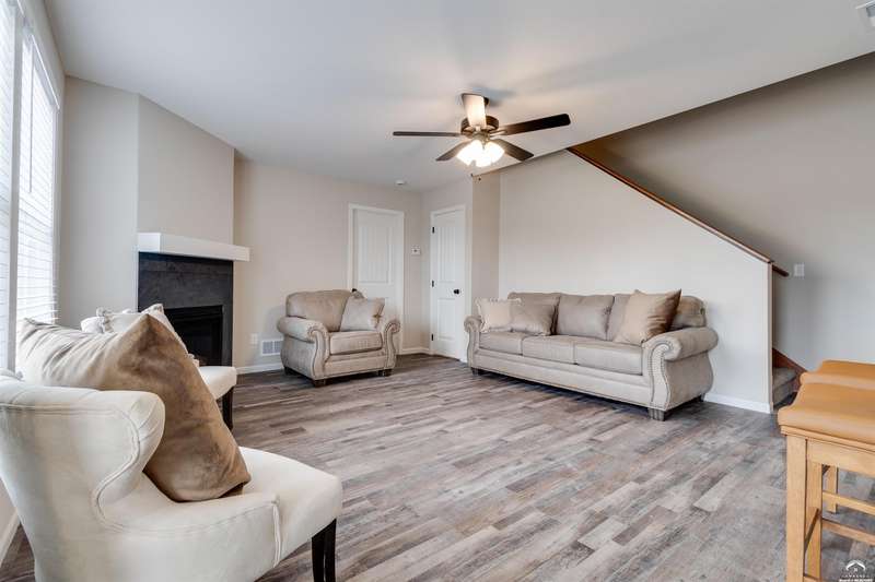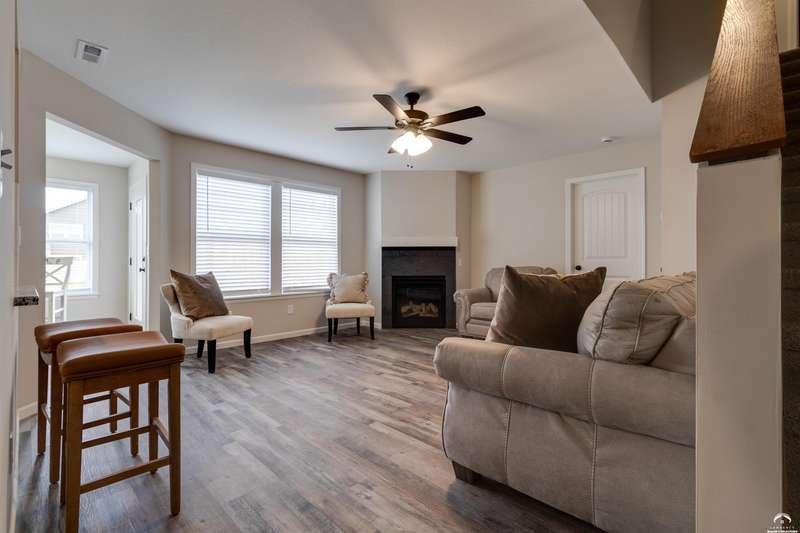 Sharp floor plan with the primary bedroom on the main floor, with a safer room. Beautiful living room fireplace. Granite countertops throughout. HOA of $800 a year takes care of lawn mowing and snow removal of 2" or more. All room sq ft is approximate. Taxes are estimated based on the sales price. Interior photos are from another townhouse with the same floor plan.