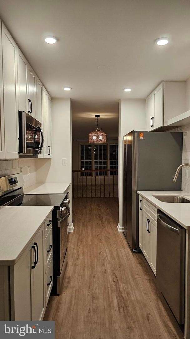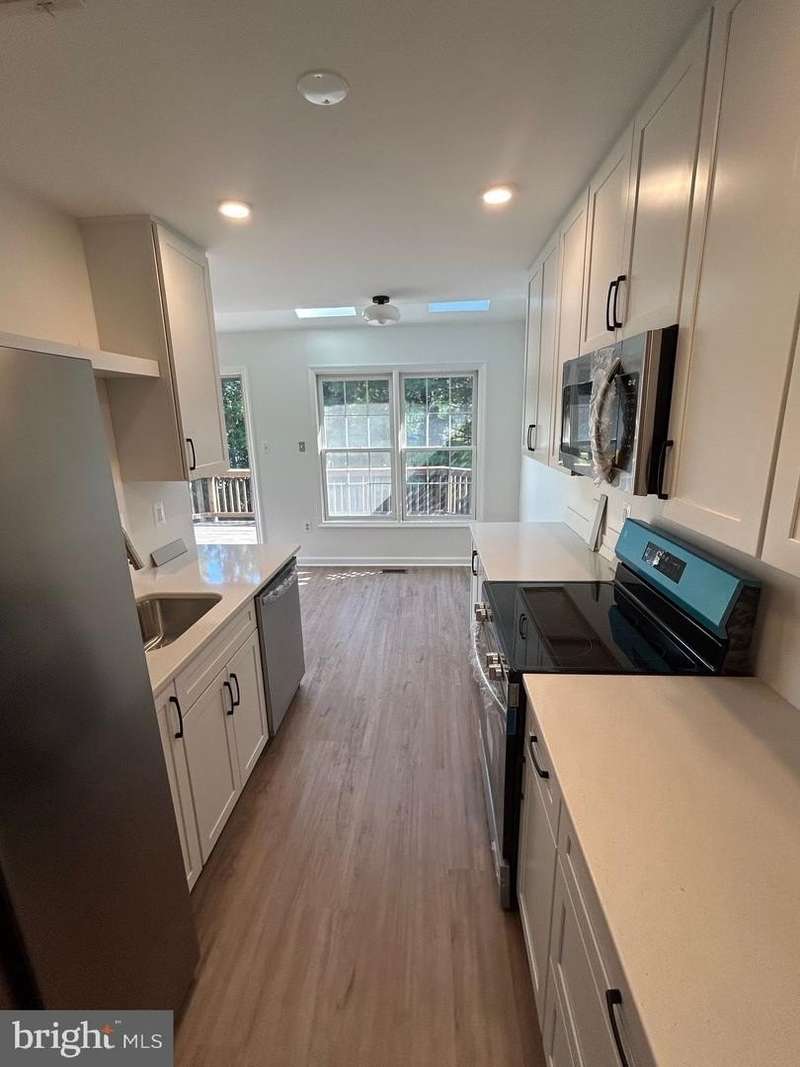 Immaculate & Spacious End Unit Townhome - 3 Finished Levels & Garage! This fully renovated end-unit townhome offers an abundance of space, natural light, and modern updates. Enjoy a bright kitchen with skylights, brand new appliances, and a newly renovated bathroom. The main level features new carpet, a large family room with a cozy fireplace, and a walkout to a private deck overlooking trees-perfect for relaxing or entertaining.