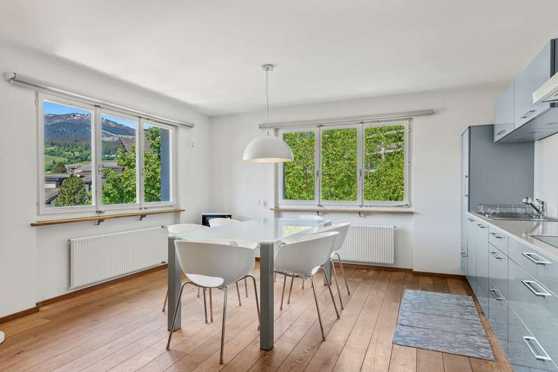 This property combines two self-contained flats in a building with just four units in all. While completely independent. An ideal setup for families, multi-generational living, shared ownership arrangements, or a mix of private use and rental. The top-floor flat offers generously sized rooms, an open-plan kitchen, and a balcony with sweeping alpine vistas. Two bathrooms and two bedrooms provide comfort and space to retreat in a refined setting. The flat on the second floor below features a clearly defined layout, a bright living area with adjoining kitchen, and its own balcony. Two bedrooms and an additional room, suitable for use as a study or guest room, complete the interior. This flat also includes two modern bathrooms. A dedicated part of the garden affords space in which to unwind and enjoy spending time. A separate toolshed provides practical storage capacity. Situated on a quiet road with next to no traffic in a sunny hillside location above Flims, this property offers a tranquil living environment with convenient access to the village and chair-lift via a nearby bus stop. The property: - 3.5-room flat on the top floor - Approx. 115m² living space - 4.5-room flat on the second floor - Approx. 107m² living space - Approx. 10m² ancillary space - Balconies and dedicated share of garden included - 1 garage space, 2 outdoor parking spaces