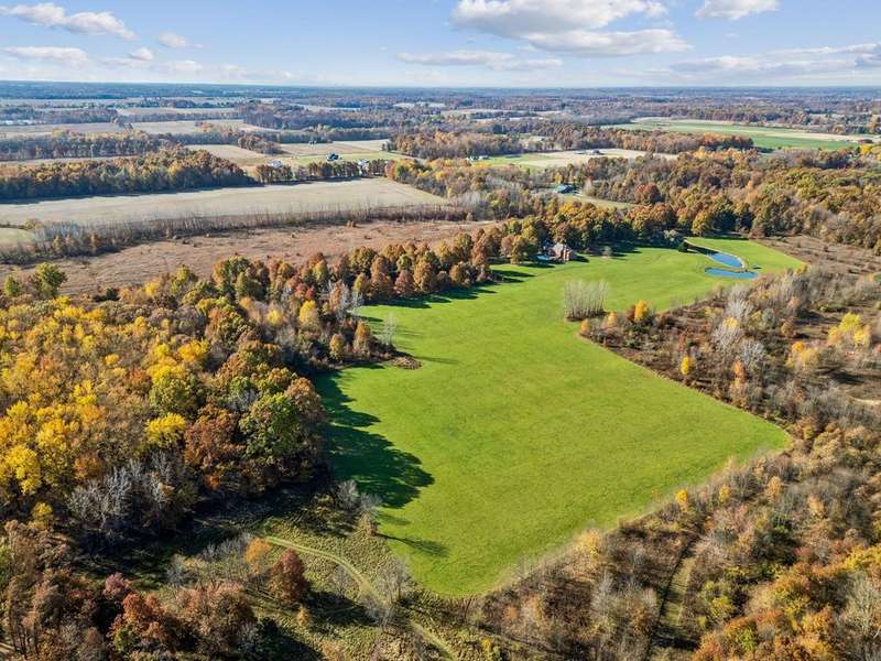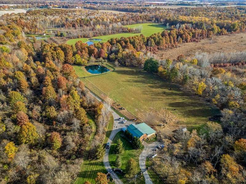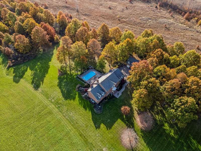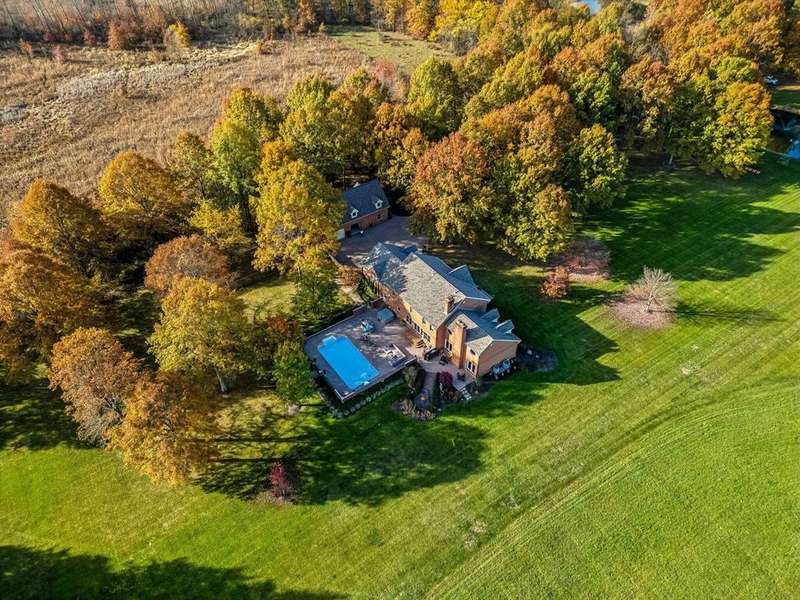 Welcome to an extraordinary property unlike anything else on the market?an all-brick, 7,000 sq. ft. Georgian manor set on 44 breathtaking acres (2 Parcels) of pastures, open fields, mature woods, and ponds. Just 15 minutes north of New Albany, this luxury estate offers exceptional privacy, timeless charm, and modern functionality in a picturesque setting.The fully renovated main residence blends classic elegance with contemporary updates, featuring five spacious bedrooms, five full baths, and grand living areas with exquisite detailing throughout. At its heart is a stunning gourmet kitchen, centered around a massive island with seating for six?ideal for entertaining or everyday living. Custom cabinetry, WOLF stainless steel appliances, and wide-plank hardwood floors add warmth and sophistication, while the open layout ensures seamless flow and function.The primary suite offers custom built-ins, whitewashed brick, wood flooring, and abundant natural light. The spa-like ensuite features an oversized freestanding soaking tub and a glass-enclosed walk-in shower with a rainfall head.A dramatic game room blends industrial and modern design with exposed brick, rich wood paneling, soaring ceilings, skylights, and sleek tile floors. Oversized windows flood the space with natural light, enhancing its bold yet inviting atmosphere.Adjacent to the main home, a beautifully crafted brick carriage house adds flexibility with two office spaces and a two-bedroom guest suite above the garage?ideal for extended family or working from home. A 30x60 two-story masonry barn includes a stylish condo above, offering even more space and versatility.Outdoors, enjoy panoramic views, expansive paver patio back courtyard , and a large private pool?perfect for entertaining or relaxing in total seclusion.Whether you're seeking a private compound, future equestrian retreat, or executive estate, this one-of-a-kind Sunbury gem delivers. Schedule your private tour today!