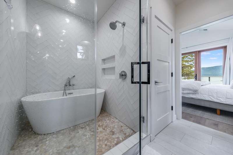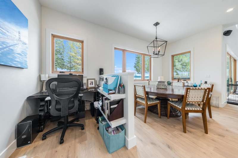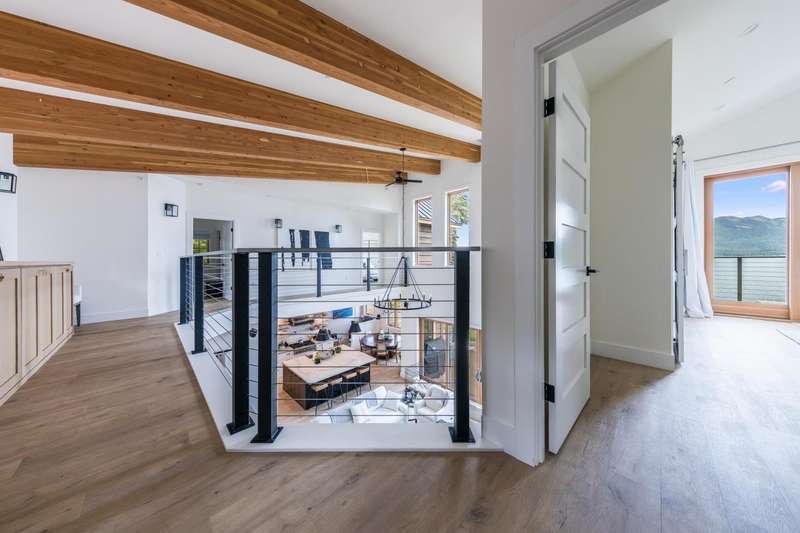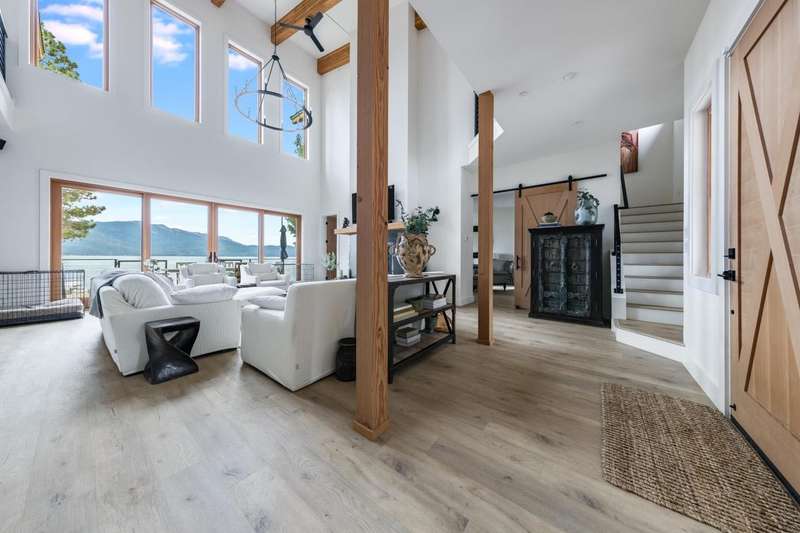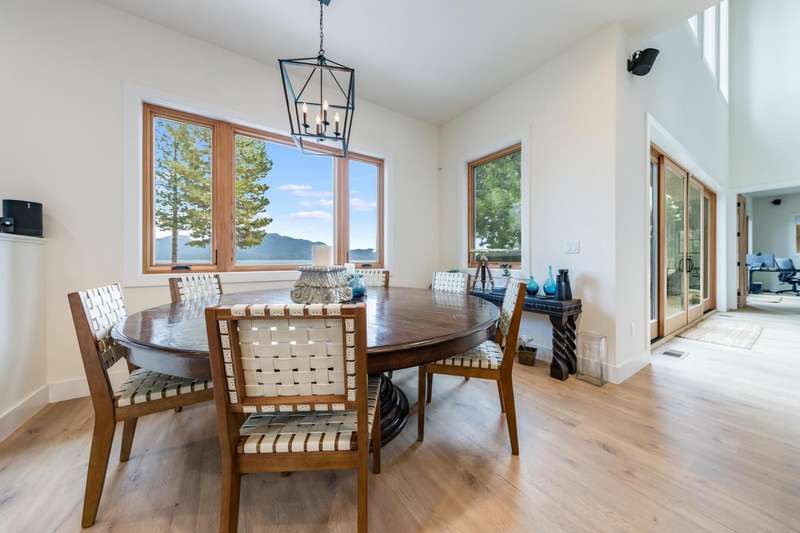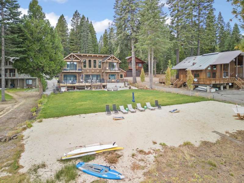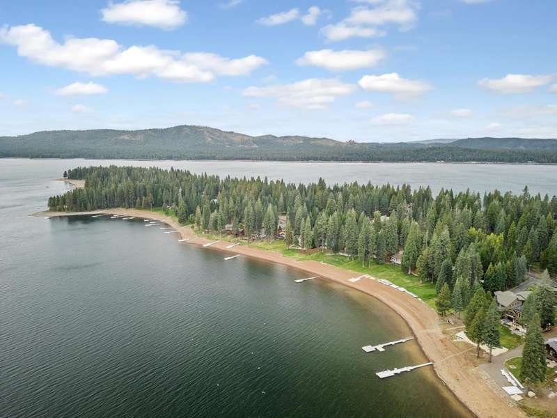 Located on the beautiful shores of Lake Almanor, this stunning lakefront estate offers wonderful modern design blended with tasteful mountain accents. The home sits on almost a half acre of gentle sloping land leading to the waters edge. A full 6 bedroom and 6 and one half baths including the guest house. Main house offers 3000 square feet of living space and boasts 22 foot ceilings with wonderful natural light. Well appointed kitchen would make any top chef proud. Magnifica Porcelain counter tops and Luxury wide vinyl flooring Throughout kitchen and living room. Oversized island allows for plenty of seating for the entire family and friends. Wonderful eat in breakfast nook overlooking the expansive deck with lake and mountain views. Large family area located behind the living room could be converted to a separate master suite on the main level if so desired. Each bedroom in the main house offers its own private bath. Closet space has been cleverly designed to maximize storage area. Guest house offers a large bunk room downstairs with full bath. Upstairs boasts a full kitchenette along with 2 additional bedrooms and full bath. Oversized garage with 14' door height to accommodate all of the water toys and vehicles. Entire home and guest house offers custom concrete siding for maximum fire retardant and added insulation. Central heat and air conditioning throughout both the house and guest house. Huge lakeside composite deck allows one to soak in the expansive views of Dyer Mountain and the crystal blue Lake Almanor waters. Large lakeside grass area is ready for all the summer activities accompanied by your own sandy beach to the waters edge. Head on down to the custom aluminum floating dock and hit the water with all the summer toys. Two buoys included. Come enjoy year-around living in this magical mountain retreat.