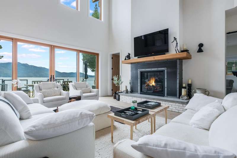 Located on the beautiful shores of Lake Almanor, this stunning lakefront estate offers wonderful modern design blended with tasteful mountain accents. The home sits on almost a half acre of gentle sloping land leading to the waters edge. A full 6 bedroom and 6 and one half baths including the guest house. Main house offers 3000 square feet of living space and boasts 22 foot ceilings with wonderful natural light. Well appointed kitchen would make any top chef proud. Magnifica Porcelain counter tops and Luxury wide vinyl flooring Throughout kitchen and living room. Oversized island allows for plenty of seating for the entire family and friends. Wonderful eat in breakfast nook overlooking the expansive deck with lake and mountain views. Large family area located behind the living room could be converted to a separate master suite on the main level if so desired. Each bedroom in the main house offers its own private bath. Closet space has been cleverly designed to maximize storage area. Guest house offers a large bunk room downstairs with full bath. Upstairs boasts a full kitchenette along with 2 additional bedrooms and full bath. Oversized garage with 14 door height to accommodate all of the water toys and vehicles. Entire home and guest house offers custom concrete siding for maximum fire retardant and added insulation. Central heat and air conditioning throughout both the house and guest house. Huge lakeside composite deck allows one to soak in the expansive views of Dyer Mountain and the crystal blue Lake Almanor waters. Large lakeside grass area is ready for all the summer activities accompanied by your own sandy beach to the waters edge. Head on down to the custom aluminum floating dock and hit the water with all the summer toys. Two buoys included. Come enjoy year-around living in this magical mountain retreat.