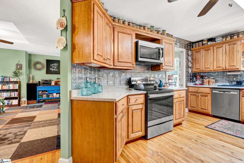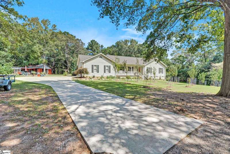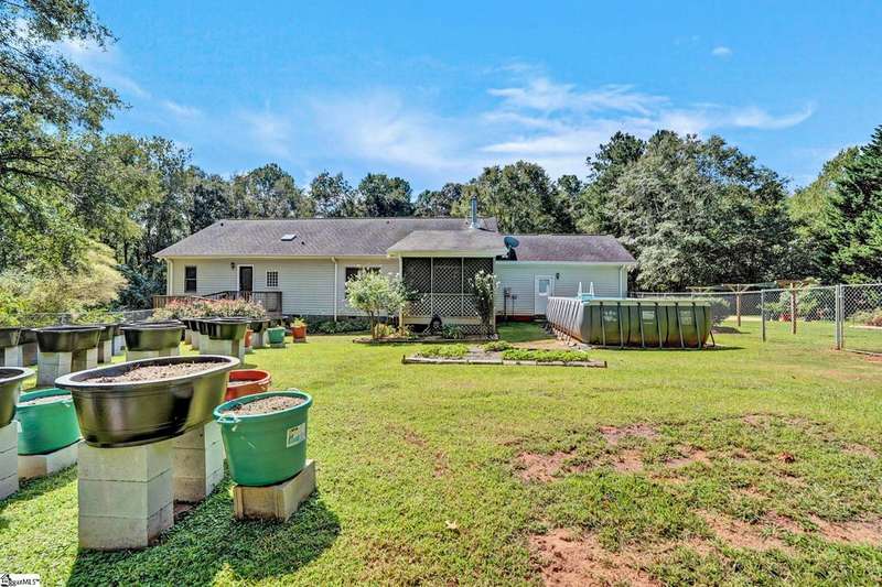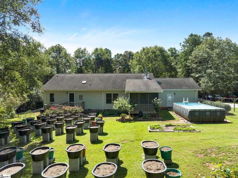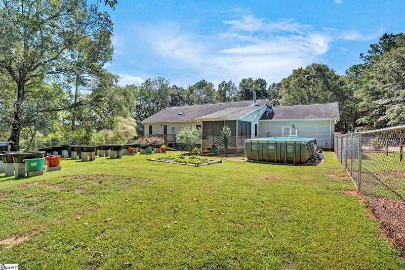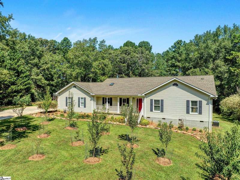 Welcome to this beautiful ranch-style home at 125 Christie Lane in Piedmont?a hidden retreat tucked away on 2 private acres with no HOA, in the highly sought-after Wren school district. Blending modern upgrades with timeless character, this 3-bedroom, 2-bath home features original hardwood floors, new carpet (2023), fresh paint throughout (2021?2024), and a cozy wood-burning stove (2021). The kitchen is fully equipped with all new appliances (2021), while the Anderson sliding door (2023) fills the home with natural light and includes a transferable 8-year warranty. Peace of mind comes with major updates already completed, including HVAC handling and ductwork (2021), water heater (2022), front door (2023), and garage door opener (2024). Outdoors, enjoy a 2-car garage with a hidden gravel-to-concrete drive, an above-ground pool for summer days, a charming outdoor fireplace for gatherings, and a fenced backyard ideal for pets or play. Homestead-ready amenities include a chicken coop, two 300-gallon rain barrels, and a barn for storage or workshop use. Fruit trees and plants?pear, peach, apple, fig, blueberry, and blackberry?make the property a true gardener's paradise. Extras that convey include the garage refrigerator, curtains, rods, and window treatments, ensuring this home is move-in ready. Offering privacy, convenience, and access to top-rated Wren schools, this one-of-a-kind property is the perfect place to call home. If you didn't know it was here, you'd miss it?schedule your showing today and discover this hidden gem in Piedmont.