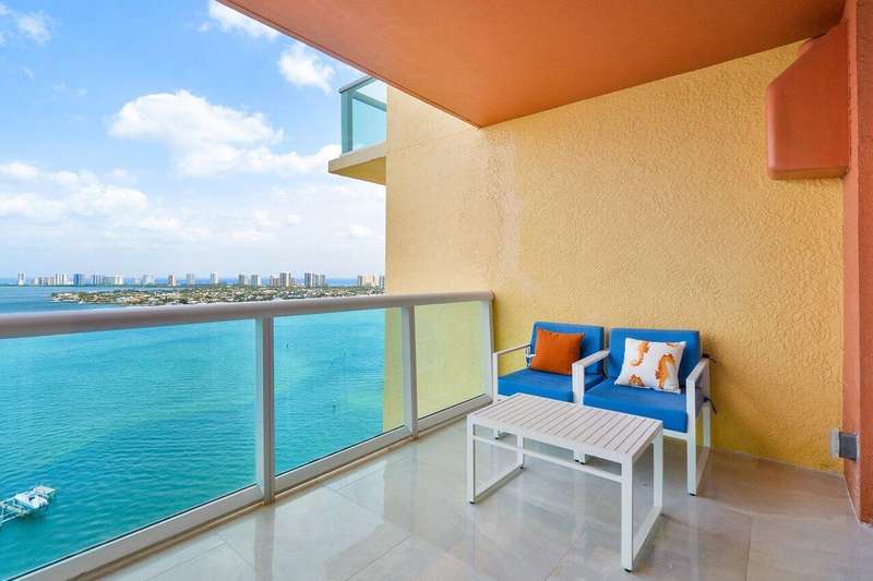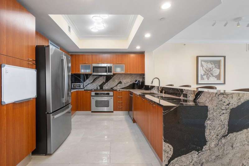 Panoramic 22nd floor Intracoastal & ocean views! Immaculate 2BR/2.5BA condo w/impact glass, Open concept w/spacious great room, dining/den, granite waterfall and backsplash in kitchen w/stainless appliance with split floor plan. Spacious owner suite w/his & her walk-in closets. Marble owner bath w/double vanity, jetted whirlpool bathtub & water closet. LED-lighted vanity mirrors in every bathroom. Neutral fresh paint and porcelain flooring throughout. Assigned parking, 24/7 manned gate, valet, tennis, pickleball, walking path w/gazebo, covered rooftop oasis w/pool, spa, BBQ areas, clubhouse, billiard room & fitness center. Marina w/dry docks available. Jump on your boat effortlessly & be on the ocean in minutes; no fixed bridges!