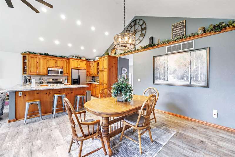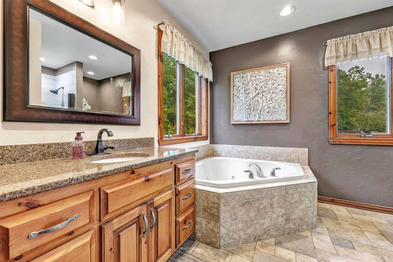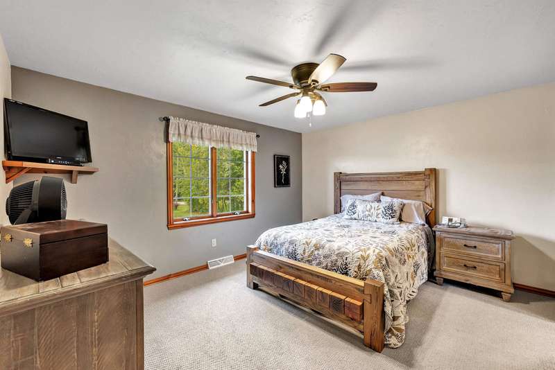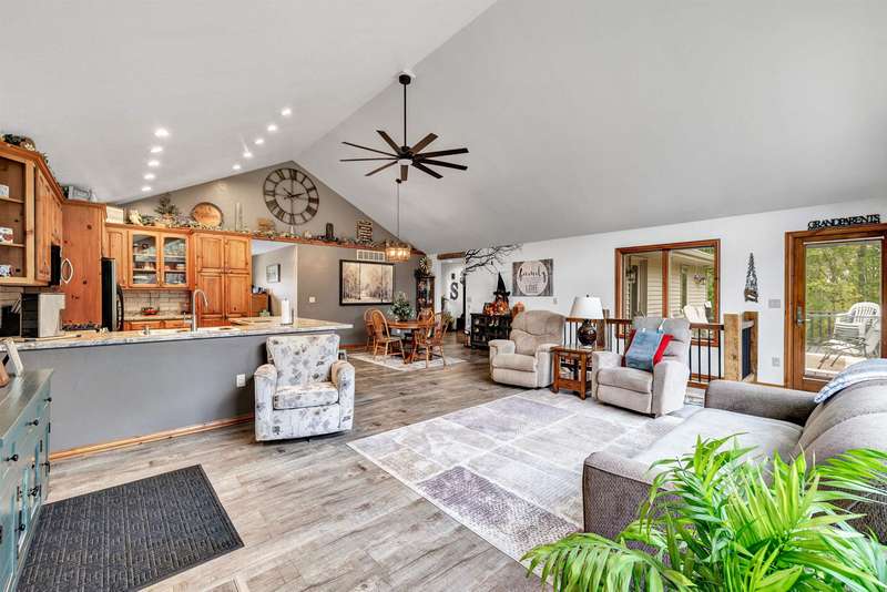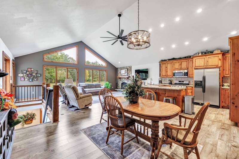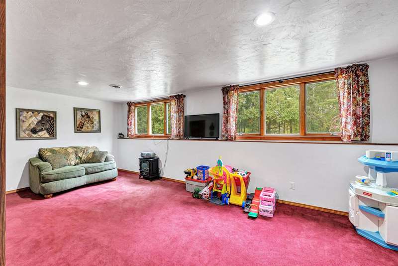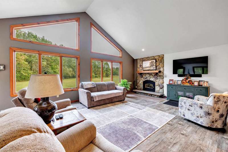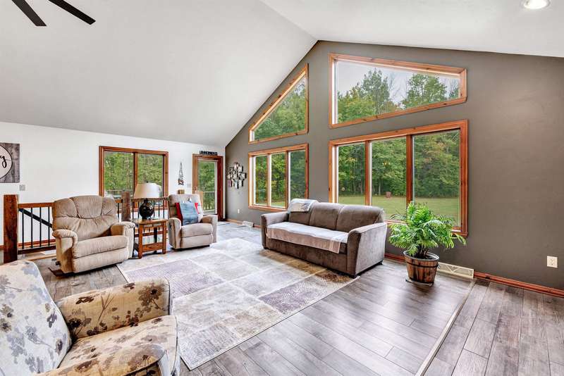 Exceptionally well maintained custom home on beautiful acreage. Property is conveniently located between Appleton, Green Bay, Shawano, and Pulaski. Home features a great open concept floorplan with stunning views of the property throughout. Main floor features a great flex space off the garage, currently being used as an office, 2 bedrooms and 2 full baths. Spacious living, dining, and kitchen area - great for entertaining. Kitchen has gorgeous hickory cabinets. Wood burning fireplace in living room. Lower level rec room features large windows, half bath, and abundant storage. Detached garage ready for your next project! Garage is heated and insulated. Garage has an outlet for welding. Path in woods great for walking! Move-in ready home!