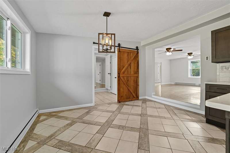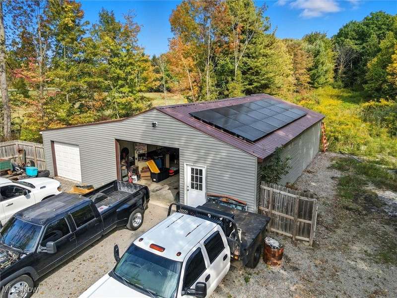 This updated ranch-style home is situated on approximately 2 private acres and includes an attached oversized garage and a separate outbuilding. Inside you will find four bedrooms, two and a half bathrooms, living room, and a large eat-in kitchen with an island. There are two attics that provide additional storage space. The interior has been freshly painted. The kitchen features grey Shaker cabinets, quartz countertops, and an island with a sink. The dining room is adjacent to the kitchen and is separated by a barn door. A large living room includes a half bath and provides access to either a bedroom or an office. The master suite contains two closets, space for furniture, and a bathroom with a large, tiled shower. Additional bedrooms and a full bath are located near the master suite. Located behind the home, a 48'x30' insulated outbuilding offers extra space and is equipped with new vinyl siding and electric service. The property is also outfitted with 38 solar panels intended to reduce energy expenses. Other updates include a new roof in 2020, and a new septic system installed in 2018. Other recent updates, cleaning of gutters, pressure washing of house, siding on back building. This home is move in ready. Schedule your showing today.