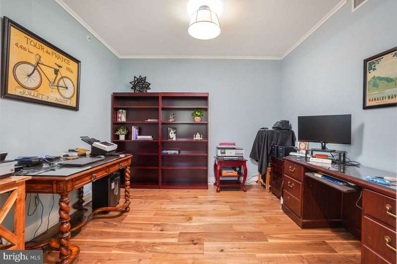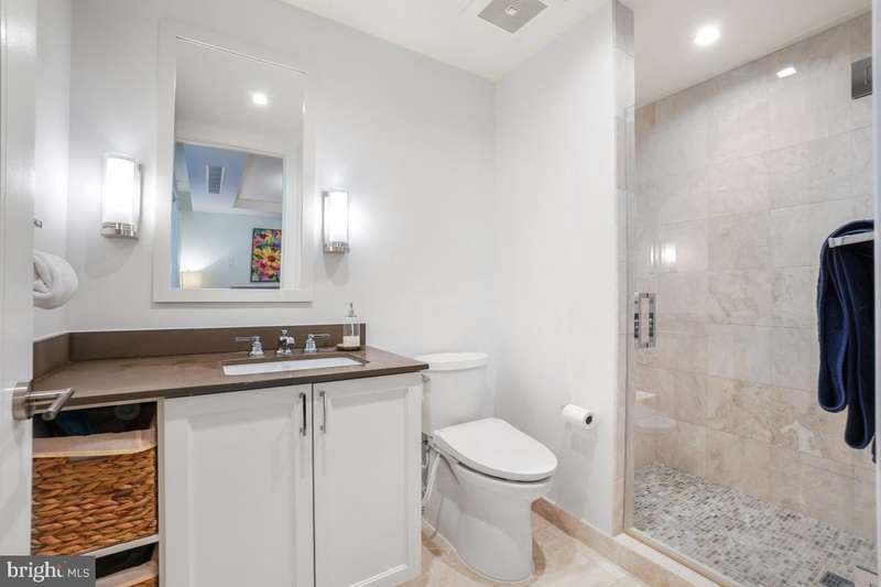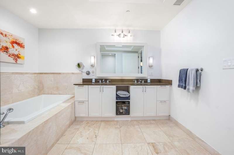 Sophisticated luxury living in downtown Bethesda's prestigious building, The Lauren. Welcome to The Lauren, an exclusive boutique condominium known for its refined style and exceptional service. This spacious two bed, two and a half bath condo with den/office offers 2,264 sq. ft. An extremely quiet, light-filled corner residence, where you have no neighbors on either side, #107 will welcome you and your guests into its large foyer, with two double coat/storage closets. From there you will walk into the kitchen with high-end stainless steal appliances, marble countertops, and oversized kitchen island with seating. The open living area is perfect for entertaining, featuring a gas fireplace and built-in shelves. The space also features a nicely sized den/office with pocket doors for privacy, and a half bath. The large laundry room with sink leads to the large owner's suite with its abundance of closets. The luxurious primary bath has a dual sink vanity, soaking tub, and separate shower. On the other end of #107, is the second bedroom with ensuite full bath, providing comfort and privacy for guests. The sale includes two garage parking spaces with EV charger (#60 & #61 ), a storage unit (#19), and a private wine locker (#16) in the Onyx Lounge. The buildings' amenities include an elegant lobby with 24-hour concierge & secure access, on-site management, engineering staff, plus a rooftop terrace with a caterer's kitchen, the Onyx Lounge/party room with caterer's kitchen, and a gym/fitness center. And the best part of all- you are literally steps from all the shops and restaurants Downtown Bethesda has to offer! From the moment you walk into The Lauren lobby, no other building defines luxury like this.