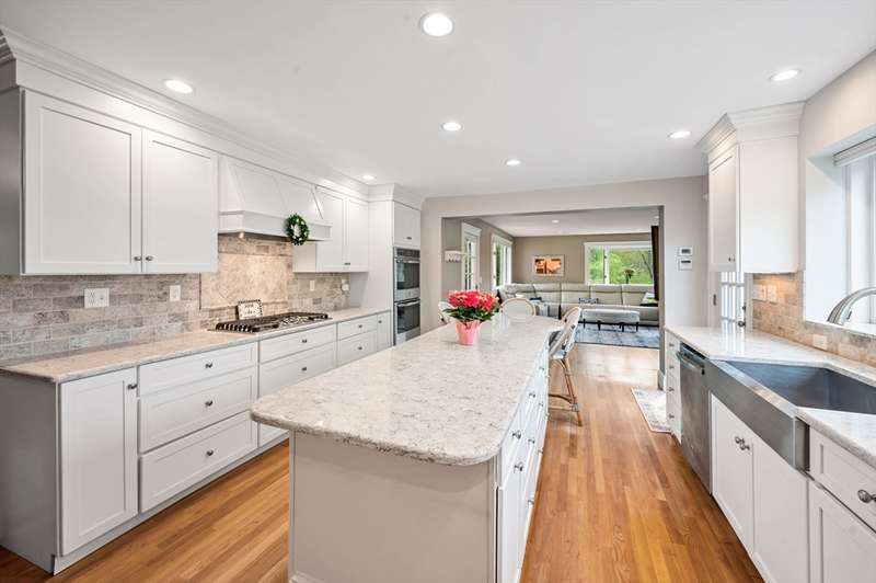 Within walking distance to Concord Center and abutting 8 acres of conservation land, this wonderful 4-bedroom colonial has recently been extensively renovated. It offers a flexible floor plan, modern amenities, and yesteryear charm. A beautiful sunlit kitchen flows to a spacious family room with a built-in window seat. The dining room and living room with fireplace anchor the front entrance foyer. A large first-floor primary with cathedral ceiling is accompanied by an office, walk-in closet and a recently renovated ensuite bath. The second floor features another primary bedroom and two additional bedrooms. The house features hardwood flooring , built-in cabinetry, a wood-burning fireplace, and an expansive .8 acre grass yard surrounded by mature plantings. The house is easy to maintain with an irrigation system, and central A/C. You ll fall in love with the house and first floor primary bedroom, the yard, and the proximity to Concord Center, conservation land and trails.