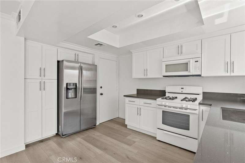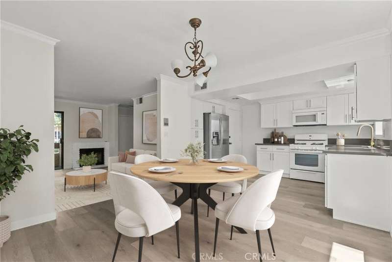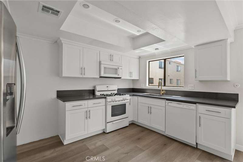Stylish Updated 2 BR/ 2.5 BA Townhouse with approx. 1,095 sq.ft of living space. Privately tucked into a secure, gated complex in the heart of Reseda, this tri-level home features a remodeled kitchen with quartz counters and sleek cabinetry, laminated wood floors throughout, and a cozy fireplace in the living area. Master suite with private bathroom and high vaulted ceilings. Updated Bathrooms, Central A/C & heat. The attached 2-car garage provides secure parking and laundry area.