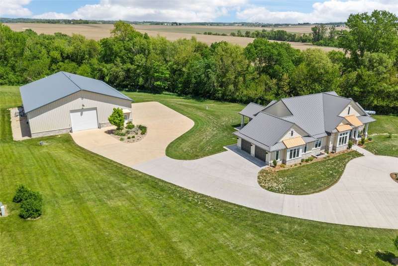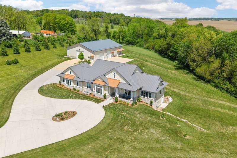 Every so often, a property comes along that simply has no equal — and this is it. Tucked just minutes from Ely, Iowa, on 9 acres of gently rolling land & timber that includes two separate parcels, this one-of-a-kind estate blends exceptional craftsmanship, premium functionality, and a setting that feels like a retreat.Built in 2020 with a discerning eye for quality, this custom home spans over 4,100 finished square feet with design elements and amenities that far exceed expectations. From the handcrafted cabinetry throughout to the expansive, open-concept living spaces, no detail has been overlooked. The main level showcases a wall of windows with timbered views, a gourmet kitchen with a massive island, formal dining room, and a split bedroom design for added privacy. The primary suite is a sanctuary of its own, complete with sunrise views, a spa-like bath, and a zero-entry shower with multiple diverters featuring rain shower and wall massagers. There is radiant in-floor heat in the garage and lower level floors — offering everyday luxury and comfort.The walk-out lower level offers an inviting wet bar made of knotty alder, a large family room, two additional bedrooms, a full bathroom, dedicated workout room, and a flex space perfect for specialty storage. The home’s energy efficiency is second to none, with spray foam insulation and smart lighting controls via the app-controlled system.Outside, you'll find an expansive circle driveway, countryside views, and a tranquil screen porch the sellers say is one of their favorite places to relax — with zero-step entry from both the screen porch and the attached garage for easy, seamless access. A stubbed gas line is in place for a future firepit or outdoor kitchen. Plus a whole house generator for peace of mindCompleting the property is an impressive 4,800 sq ft accessory building built in 2019 — fully insulated with spray foam and equipped with radiant floor heating in three zones. It features three oversized overhead doors and a mechanical room with laundry hook-ups. There is a walk-up loft for all of your storage needs and on the north end of the building is a fully finished 800 sq ft living space. This is the perfect ADU with a full kitchen, living room, two bedrooms, and a full bathroom — ideal for guests, multigenerational living, home base business or a remote work setup.Located directly on a hard-surface road next to a trail head to the Cedar Valley Nature Trail, the property is just minutes to the Eastern Iowa Airport, downtown Cedar Rapids, Solon, Iowa City, Lake Macbride, and a wealth of nearby parks, recreation, and community attractions.This is more than a home — it’s an uncompromising lifestyle property, and a rare opportunity to own something truly exceptional.Buyer should verify property taxes and the finished sq. ft. themselves. ***AGF Sq. Ft. | Level 1 Bedrooms, Full Baths, and Half Baths noted on the MLS includes the 800 sq. ft. ADU, the 2 bedrooms, and 1.5 baths also in the ADU.*Proof of funds & 48 hours notice required for any showing, and the listing agent will be present.