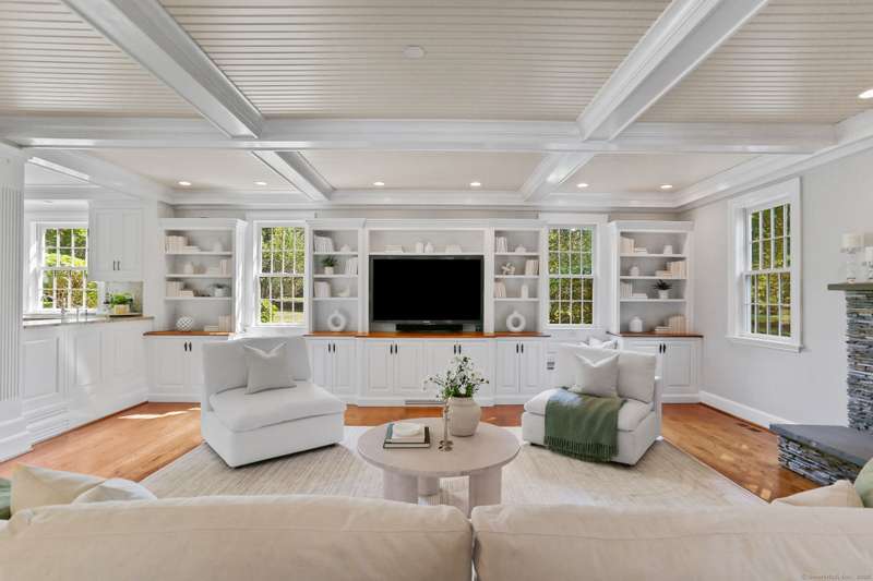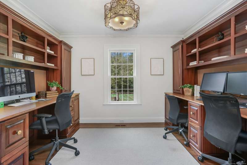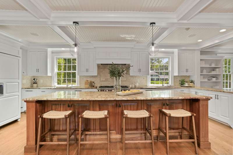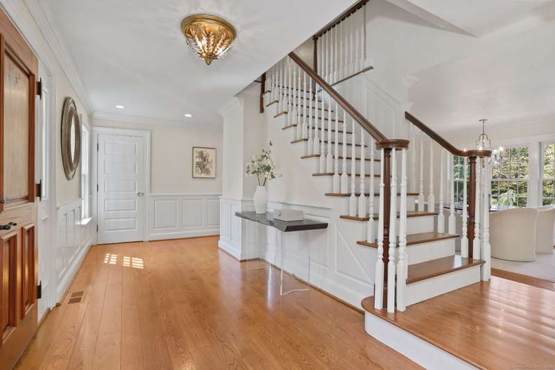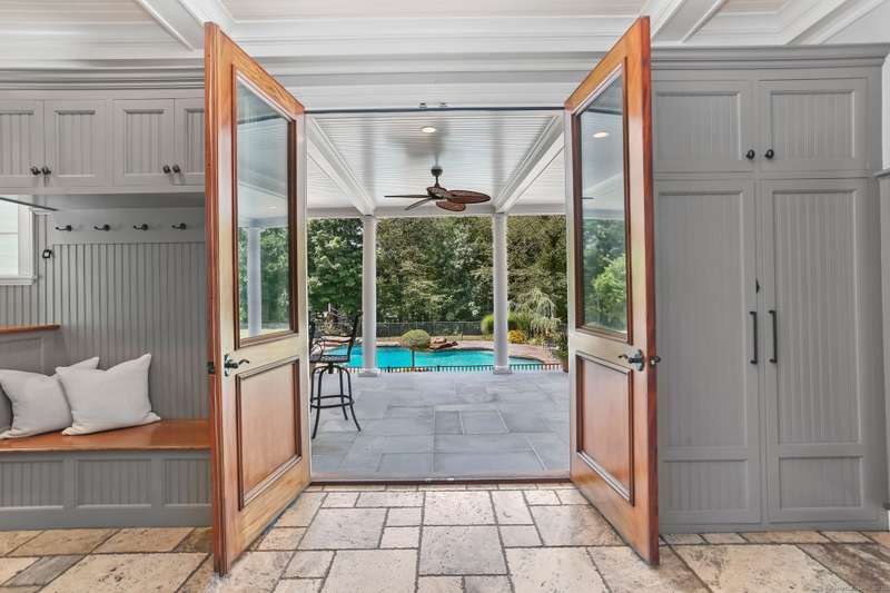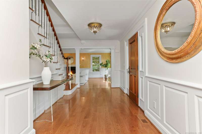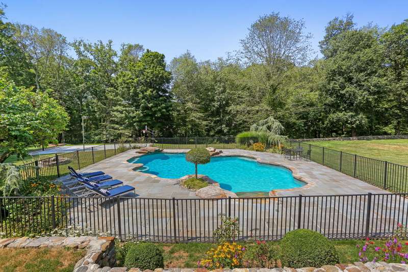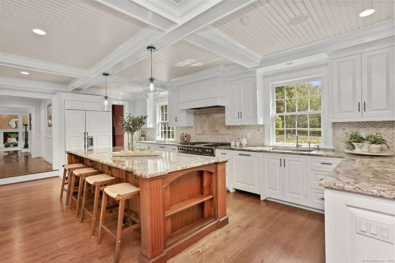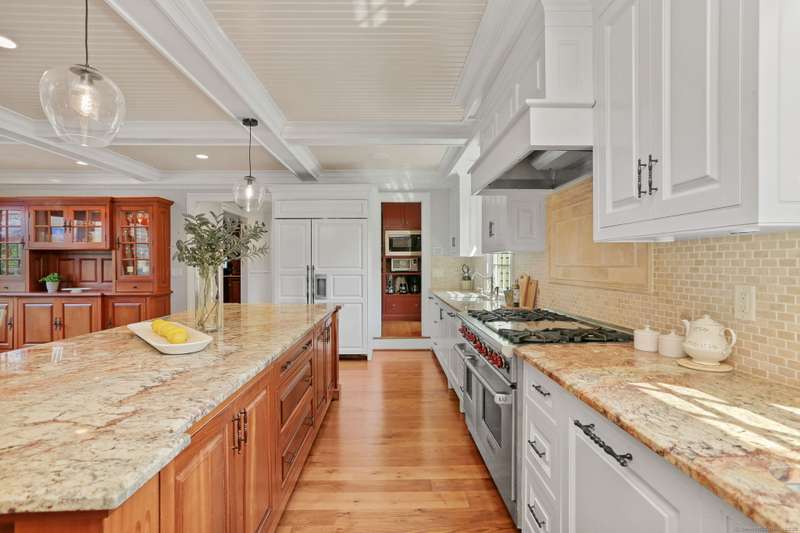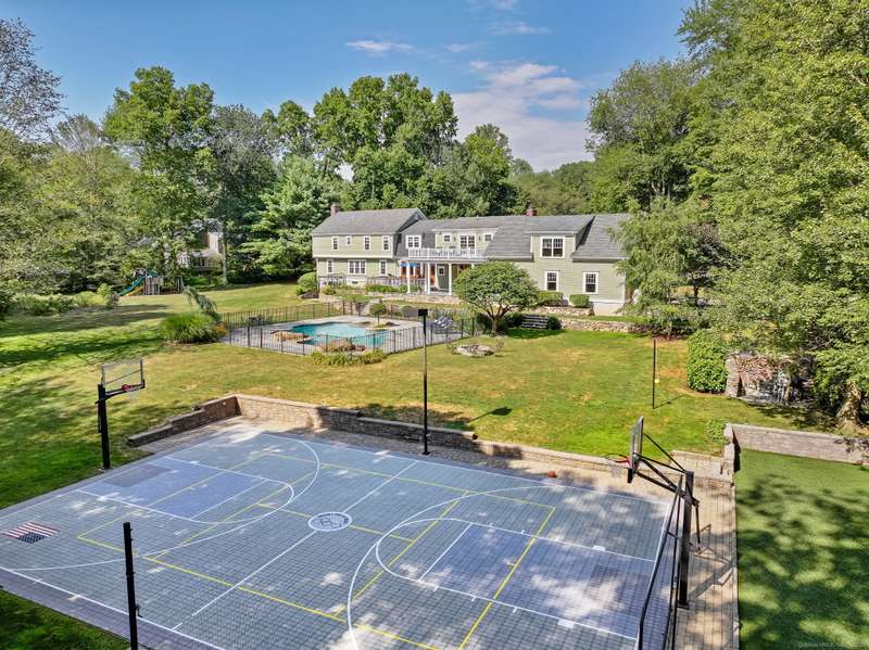 Welcome to 545 Shrub Oak Lane, an expanded Colonial on 2 private acres in Greenfield Hill. This home sits on a beautifully flat front yard that enhances its curb appeal. Fully renovated in 2012, the family room and oversized kitchen is the heart of the home. The custom designed kitchen has an 10 foot mahogany island with granite countertops, walk-in panty, and mahogany wood framed glass doors that create a seamlessly indoor-outdoor experience. The first level offers a formal living and dining room, an office and an expanded mudroom. Upstairs, the primary suite includes french doors to a private deck, a steam shower, a jacuzzi tub, walk-in closet, and a separate sitting room. Four additional bedrooms, two baths, and laundry room complete the upper level. The lower level offers a rec room, extra laundry, an office and ample storage. The oversized three-car garage with unfinished bonus space above is ideal for a in-law suite or future expansion. Outside is an entertainer's paradise, a c