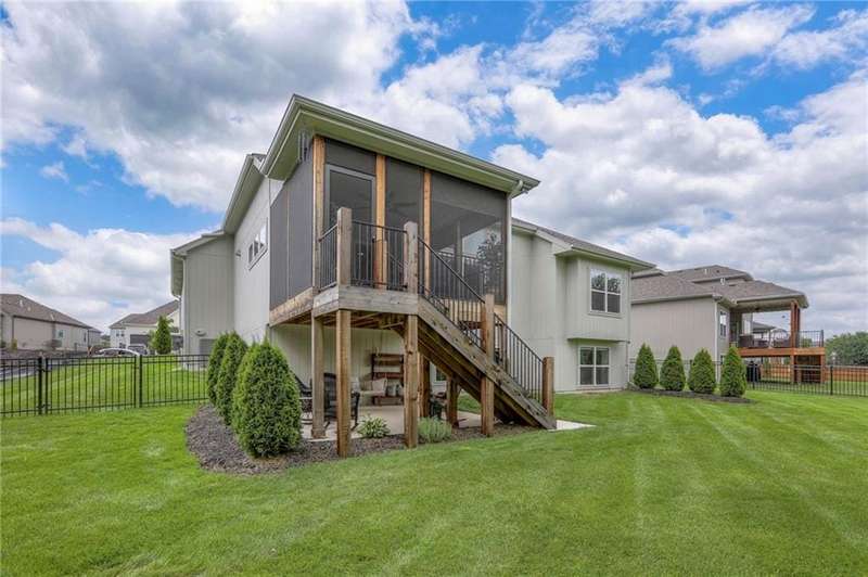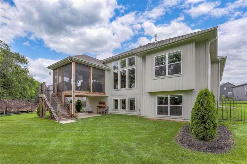 Just two years young with $50,000 in upgrades! Experience the feel of a new build plus so many extras, without the wait! Step into a serene retreat with a spacious, screened-in porch overlooking a professionally landscaped, fully fenced yard for ultimate privacy, all backing to greenspace. Entertain effortlessly in the open kitchen, complete with a large walk-in pantry, custom wood ceiling, and a spacious island that opens to the Great room with soaring ceilings and gas fireplace. Primary suite offers a spa-like retreat with luxury cove heating, a soaker tub and walk-in closet. Flexible 2nd main-level bedroom serves as a dedicated home office or a comfortable guest bedroom. 2nd full bath with tub/shower and laundry room also on main level. The finished lower level has bright daylight windows with family room, wet bar, two bedrooms, a full bath, and ample storage. Whole house alarm system, 3-car garage with epoxy floors and sprinkler system! Situated in highly desirable West Lees Summit neighborhood with a community pool and top-rated schools-Longview Farms elementary, Pleasant Lea middle and LS West High school. This home provides the perfect blend of style, comfort, and convenience, just minutes to major highways, shops and restaurants!