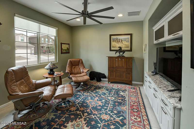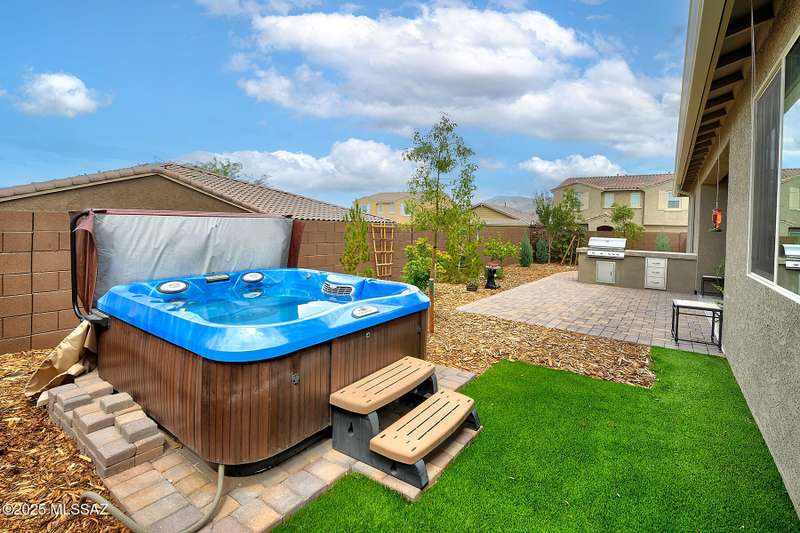 Welcome to this exceptional home nestled on a premium corner lot in the sought-after Saguaro Trails community. Built in 2020, this stunning 3BD/2.5BA residence, with a flexible office or optional 4th bedroom, features professional landscaping, an extended paver patio with built-in BBQ, firepit, and luxurious Jacuzzi hot tub. Inside, enjoy an open great room design with 9' ceilings, designer finishes, upgraded chef's kitchen, quartz counters & custom California closets. Additional Upgrades include electric blinds, solar tubes, surround sound, water softener and 2-car garage with epoxy flooring. With top-rated Vail schools and numerous community amenities, including playgrounds, dog park, pool & splash pad, this home offers comfort, style, and convenience in one perfect package.