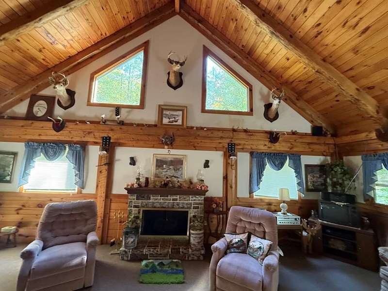 This camp is a hunter/hiker/nature-loving ideal place. It's 28 A of peacefulness at its best.It boasts of a first floor bedroom and bath. The open concept for kitchen/dining and living room allows for plenty of space of family and friends. The loft adds plenty of room for several additional beds for guests. The property adjoins state game lands The home is completely functional with both propane heat and lights and also wired for generator hook up that can run the AC in addition to lights. There is a covered rear deck at well as and open deck. Property is two sides adjacent to State Game Lands (7100+ acre!)