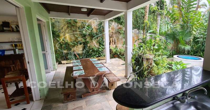 Casa no bairro Praia de Juquehy com 500m² área construída, 7 dormitório(s), 2 suíte(s), 4 vaga(s), 6 banheiro(s), piscina, mobiliado (a), rua sem saída, ar condicionado, dep. de empregados, reformado (a), varanda, aquecedor solar, pé direito duplo.