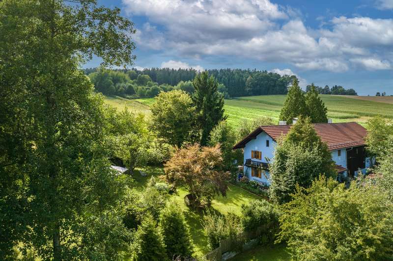 Built in 1910, this farmhouse with 7 rooms, including 3 bedrooms and 3 bathrooms, offers a unique opportunity to combine rural living with modern comfort. Originally designed as a smithy, the outline and cubature have not been altered. There is no monument protection. The property extends over four parcels with a total of approx. 4,300 m², is registered as an agricultural business with a business number and thus offers a wide range of possible uses. The farmhouse impresses with its oiled real wood and natural stone floors. Divided larch wood sash windows with tilt-and-turn function adorn the entire house. Like the windows, all the interior doors were made to measure by a carpenter and are fitted with iron fittings. During the refurbishment and renovation, great importance was attached to high-quality, organic materials (e.g. lime-mineral plaster) and fittings. The first floor also has no thresholds and extra-wide doors to make it senior-friendly and barrier-free. On the first floor, with a ceiling height of approx. 2.20 meters, there is a high-quality solid wood Nolte kitchen made of apple wood with granite worktop and new appliances as well as a dining room. The living room has a Swedish stove/fireplace that provides cozy warmth. The underfloor-heated and insulated extension with gallery is another highlight. In 2024, the shower room was redesigned with a floor-level shower, elegant travertine mosaics and modern fittings in matt black. The separate guest WC was also refurbished. A laundry/utility room offers the possibility of installing an additional kitchen. The upper floor with a ceiling height of approx. 2.30 meters accommodates three bedrooms and 2 bathrooms. These include two guest or children's bedrooms with south-facing balconies, as well as a master bedroom with en-suite master bathroom including bath, shower and high-quality oak bathroom furniture. An additional shower room with walnut furniture is available for your guests or children. All bathrooms in the house are equipped with high-quality matt black fittings (Gessi) and ceramics from Villeroy & Boch as well as real glass showers and are designed with senior citizens in mind. The house was extensively gutted and renovated between 1994 and 1996. It was fitted with new roof battens and roofing, a modern electrical distribution system and copper water and heating pipes. The interior and exterior plaster and the floor structure were also renewed. A new drainage system was also installed around the house. The oil heating system (low temperature) including tanks was also brought up to date and prepared for future solar support. Further extensive renovations were carried out between 2001 and 2025, including the renovation of all bathrooms and the replacement of floor coverings and windows, including window sills. The extension was fitted with underfloor heating and new fine stone flooring. Exterior work such as the redesign of the house façade, the terrace covering and the fencing of the property round off the whole project. The attached barn offers additional space for various projects with a potential expansion area of approx. 350 m². A renovated, separate former garage house completes the possible uses. Two wells are available for the garden water supply: A deep well with a depth of approx. 54 meters and another well with a depth of approx. 32 meters. These offer the possibility of installing a geothermal heating system. There is also a rainwater collector, high voltage current and a wallbox for electric vehicles. This property not only offers charming living space, but also numerous possible uses and is ideal for prospective buyers who appreciate the combination of traditional charm and modern amenities. A viewing is well worthwhile to discover the full potential of this unique offer.