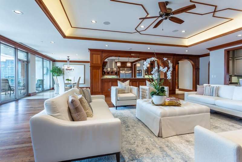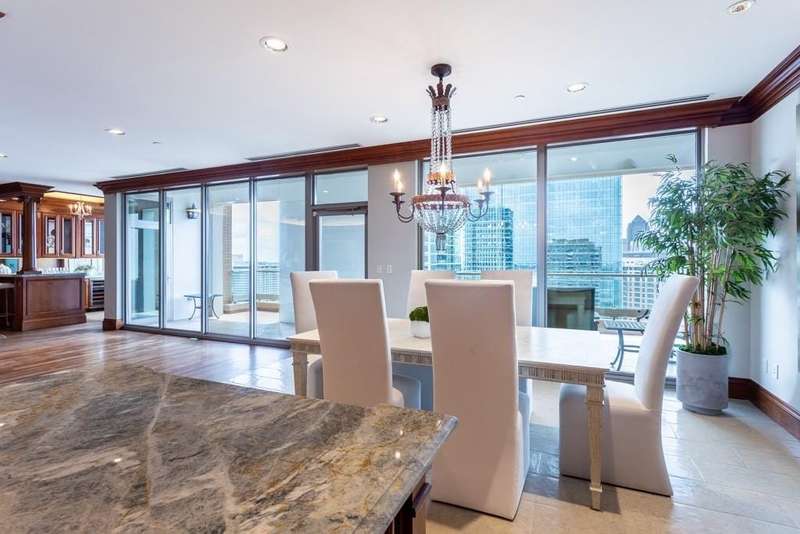 Perched on the 19th floor, this 3-bedroom, 3.1-bath Sub-Penthouse at The Stoneleigh Residences redefines high-rise luxury while living like a true home. Your private elevator opens to a secluded vestibule and foyer, setting the stage for gracious living. Cherry wood floors and picture-frame paneling create warmth throughout the generous Living Room, where a fireplace, wet bar, wine refrigerator, and a tucked-away office with pocket doors elevate daily life. The open Kitchen is a chefs dream with Sub-Zero & Wolf appliances, marble counters, butlers pantry, and ice makeranchored by an island and flowing seamlessly into the Dining Area. Entertain with ease as guests spill onto a sizable balcony showcasing jaw-dropping vistas of Downtown, Reunion Tower, the Calatrava Bridge and Uptown. The richly paneled Library shares a marble bath and walk-in closet-desk combo with a Guest Bedroom suite, while a second Guest Suite with ensuite bath stands ready for visitors. The Primary Suite boasts its own balcony, a clever niche for a large safe, and a spa-caliber Bath with steam shower, dry sauna, dual vanities, and an expansive wrap-around closet. Three coveted parking spaces and access to Stoneleighs 5-Star amenities complete the lifestyle: 24-hour concierge, valet, owners' club room with bar, card room, 20-seat stadium style theater, banquet facilities, catering kitchen, state-of-the-art fitness center with locker rooms, sauna & steam, resort-style pool, outdoor living with grills & fireplace, a grand lawn with private fireplace and pet parkplus direct access to Le Meridien Stoneleigh Hotel. All in walkable Uptown, minutes from Victory Park and American Airlines Center with Mavs and Stars games and concerts, Klyde Warren Park, CBD, The Crescent, the #1 rated largest contiguous urban Arts District in the US, myriads of fine dining choices, shopping, and Dallas major highways. Stoneleigh #19A isnt just a residenceits Uptowns most refined lock-and-leave lifestyle.