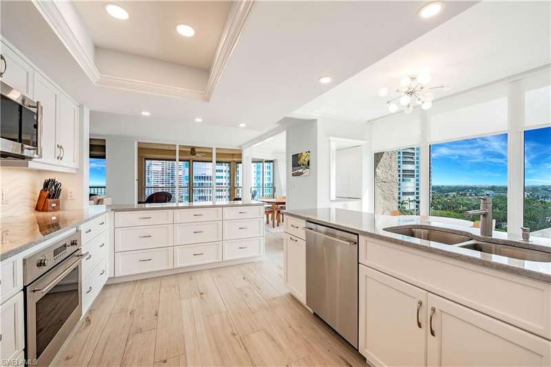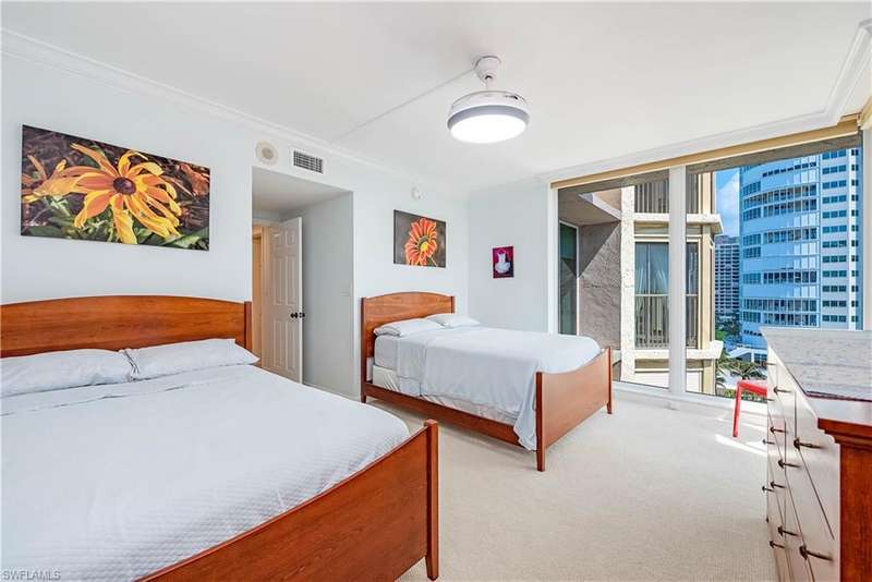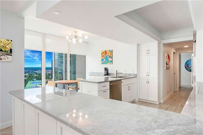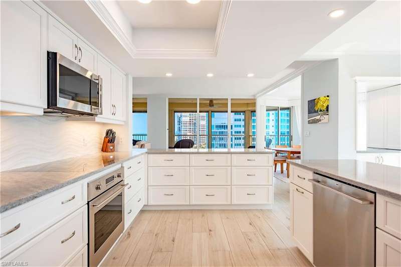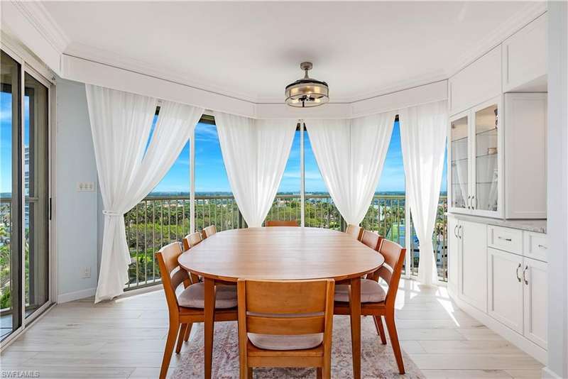 Reduced for a limited time to accommodate Seller's 1031 Exchange. Immerse yourself in the prestigious beachfront lifestyle of Park Shore at the upscale La Mer tower. This beautifully maintained and tastefully updated 10th-floor residence offers 2,226 square feet of living space, featuring two bedrooms and two bathrooms with expansive views of the Gulf reaching all the way to Sanibel Island, and pristine white sand beaches. Floor-to-ceiling windows on three sides and a large, screened lanai flood the interior with natural light, offering breathtaking panoramas from sunrise to sunset. The well-designed floor plan includes a spacious primary suite with abundant closet space, a separate breakfast nook off the kitchen, and a wet bar ideal for entertaining. Additional features include electric hurricane shutters and partial impact glass for peace of mind and a deeded parking space. La Mer is one of Park Shore s premier buildings, offering a guard-gated entry, on-site management, 24-hour secu