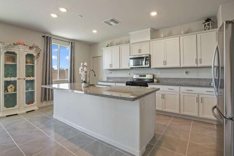 This 5-bedroom, 3.5-bath home offers 3,153 square feet of thoughtfully designed living space. The main level features a bright great room and chef's kitchen with an oversized island, walk-in pantry, and plenty of space to gather. Two en-suites one on each level are perfect for multigenerational living or guests. A flexible downstairs room can serve as an office or 6th bedroom. Upstairs, a large loft provides options for a game room, media space, or second living area. The oversized laundry room offers extra storage and counter space. Enjoy water views, no front-facing neighbors, owned solar, a 3-car tandem garage, and a large backyard with endless potential. A park is nearby for added outdoor enjoyment. Don't miss this opportunity schedule your private tour today!