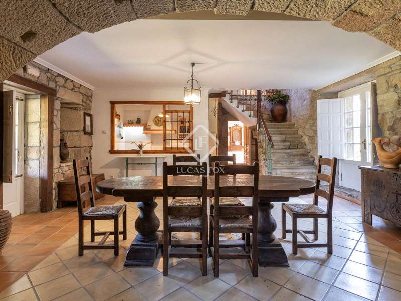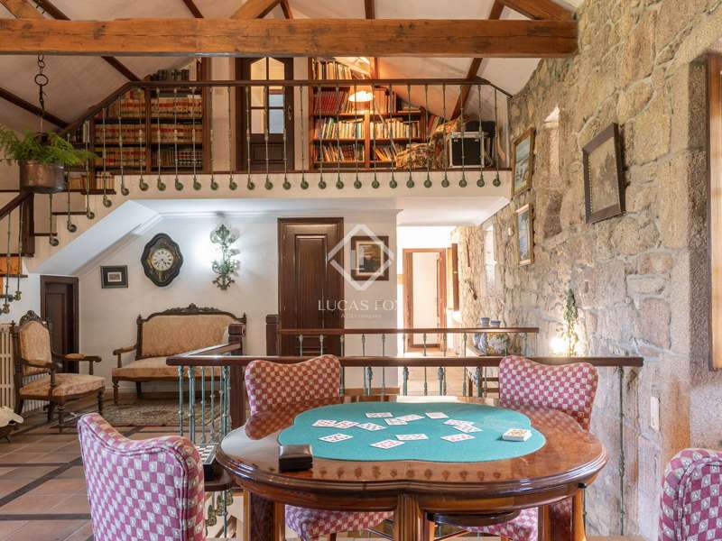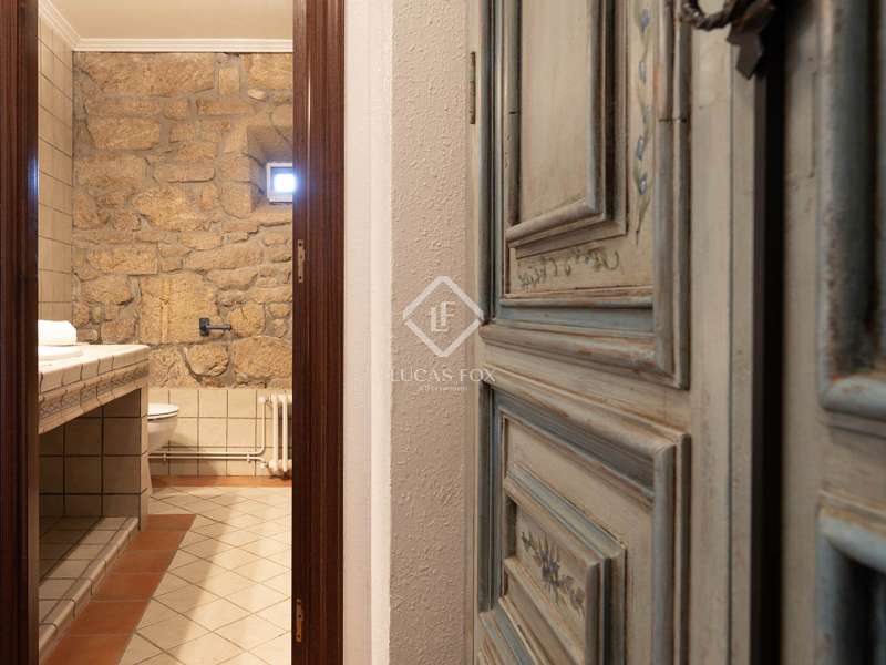 Lucas Fox presents this exclusive house with a lot of history dating back to the 18th century. It was completely renovated a few years ago with an excellent result that combines stone and wood to achieve a design with a period aesthetic and incredible taste. The original internal structure, which had wooden beams and a mansard roof, was carefully preserved. The property is accessed via a covered walkway. Once inside, there is a spacious living room with impressive ceiling heights, exposed wooden beams and stone flooring. On the left is a large, well-preserved stone fireplace with an oven and a large stonework shield. On this floor, there is a toilet, and in the area on the right, there are two large bedrooms with period furniture and private bathrooms. Via stairs, we access an attic area with a small library and bedroom area that offers beautiful views of the living room. Here, we find two large bedrooms with lovely garden views and a bathroom. We access the lower area of the property via stone stairs that house a very cosy living room with an open rustic kitchen and a sizeable semi-circular stone arch that stands out. To the right is the bedroom area with a hallway leading to a charming oratory and two spacious bedrooms with private bathrooms. This floor has two entrances. On the right, we access a fantastic porch where you can enjoy. It overlooks the back of the property, which has a garden and a barbecue area. On the left, we go to the front part of the house, which has an annexed stone building currently used as a warehouse. There is also a lovely fountain with stone details and a garden area. This fantastic house offers stone walls and ancient elements, such as a dovecote and several columns. The property also has defence embrasures, gargoyles, and a shield on the façade. The exterior area surrounding the property is well maintained, with some good-sized magnolia and olive trees that offer unique spaces to enjoy, ornamental plants and a fountain. Given its characteristics, this beautiful and exclusive property would be ideal for a large family or as a bed and breakfast. Get in touch for more information.