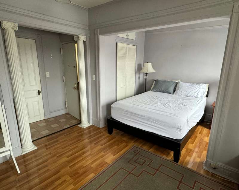 This top floor alcove studio with wood floors and a separate galley kitchen is both bright and quiet. Perfectly located overlooking 7th Avenue in the center of Park Slope, this apartment is near to all public transportation and local services and only 2 blocks away from Prospect Park. Pied a terres are OK. Guarantors accepted. No pets, no smoking. Call to arrange a viewing. ;
