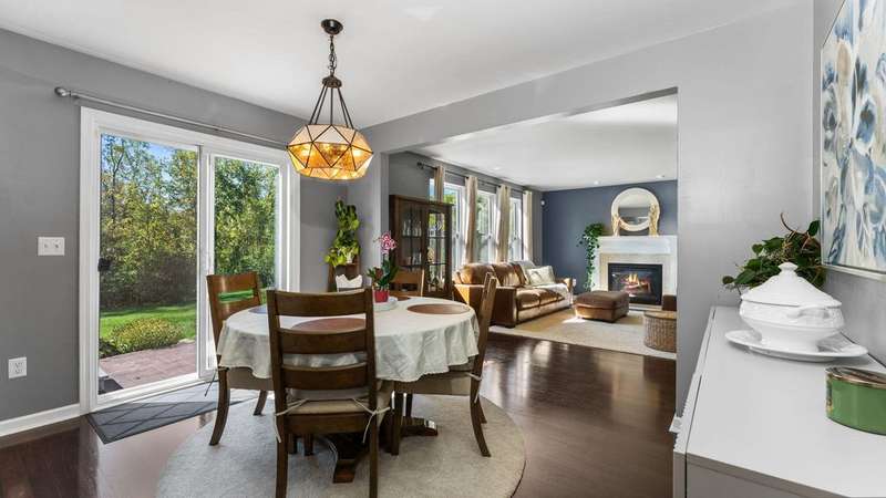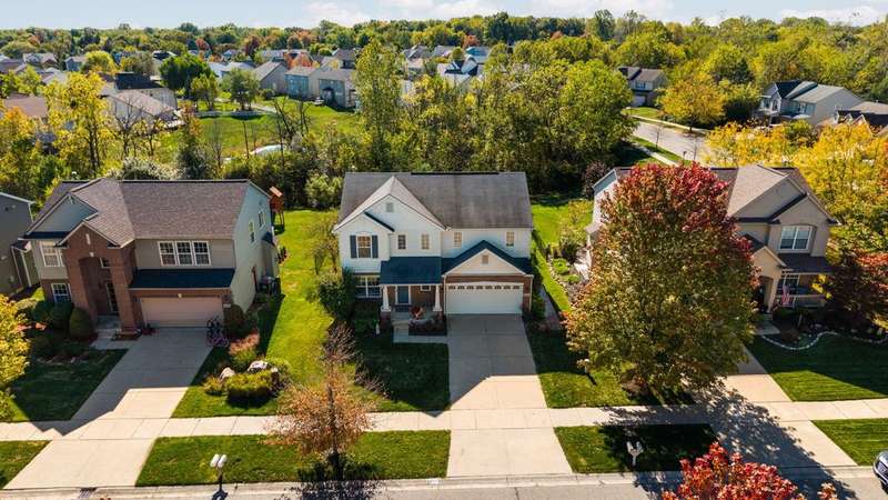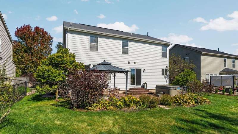 Welcome home to this stylish Colonial on a premium lot backing to a wooded greenbelt, with plenty of space for your family. Four bedrooms + upper sitting room/loft/office, & two main floor living areas, plus dining & kitchen. Covered front porch, stamped patio with pavilion & hot tub, & fenced back yard offer beautiful outdoor spaces to enjoy. Indoors, cozy up in front of a fire on a chilly evening, or enjoy making treats in the well-appointed kitchen with island & pantry. Primary suite boasts a WIC & en suite bath. Hard floors throughout main level, stairs, upper hall, & loft. Premium lighting, 2-car garage, central AC. Convenient main floor laundry & half bath. Lower level is plumbed for full bath, ready for your finishing touches. Landscaped with roses, flowering shrubs, mature trees, & perennials. Conveniently located near parks, schools, a new library, & popular commuting routes, yet with a peaceful country feel. Easy access to UM, EMU, and hospitals. Don't wait for this one!
