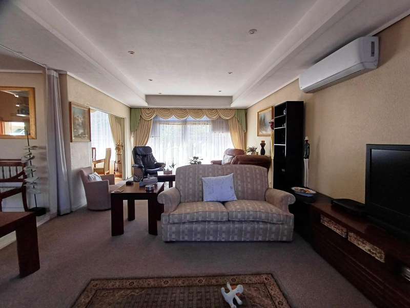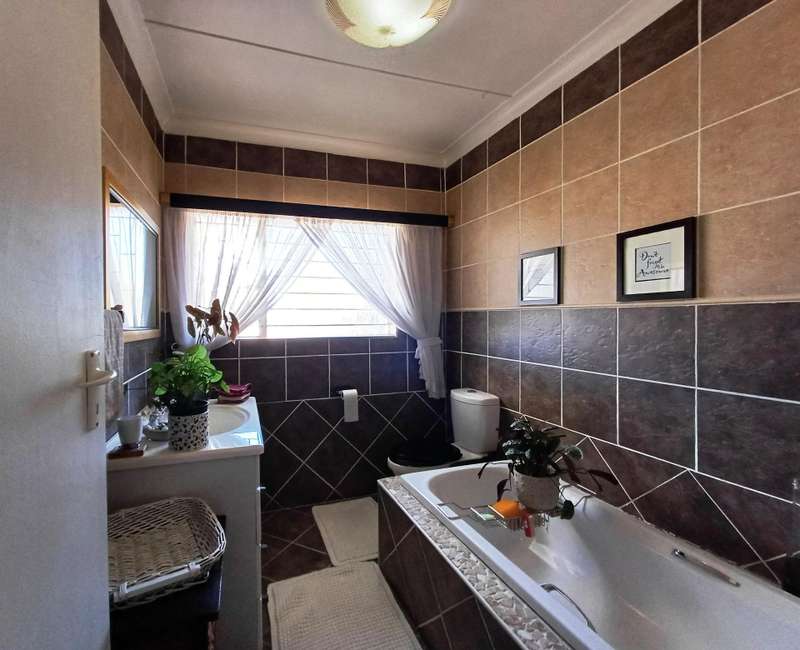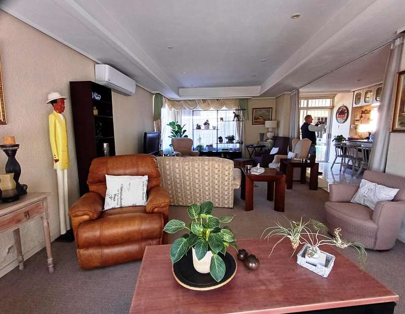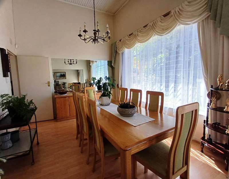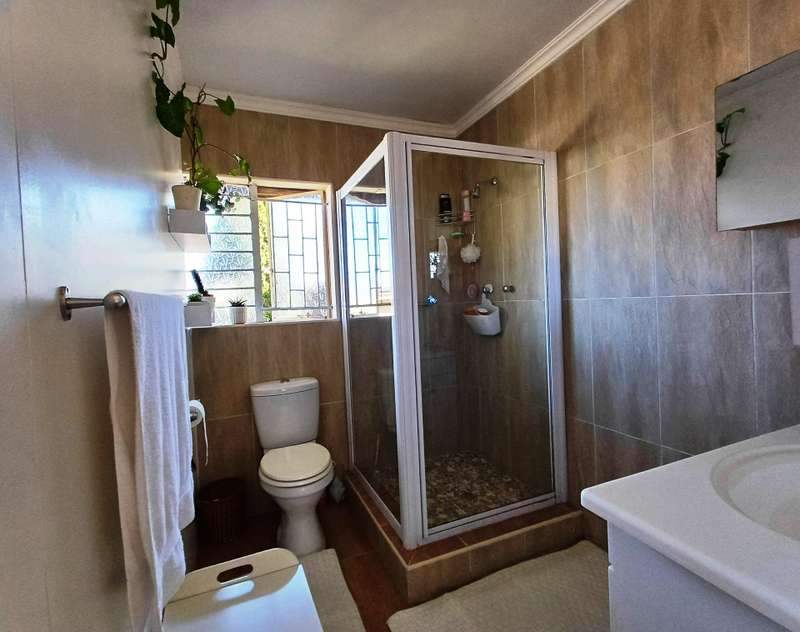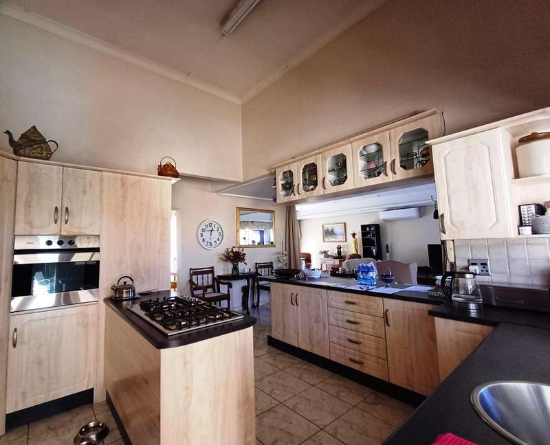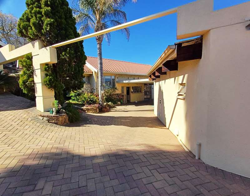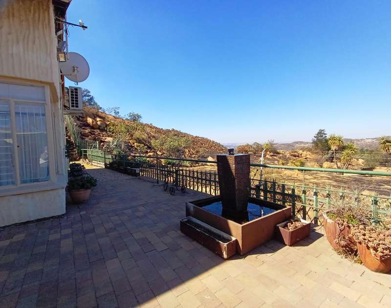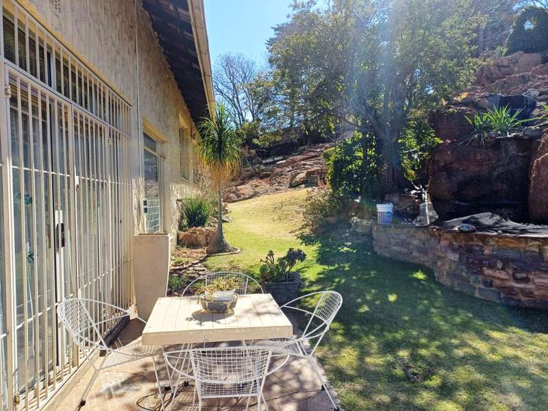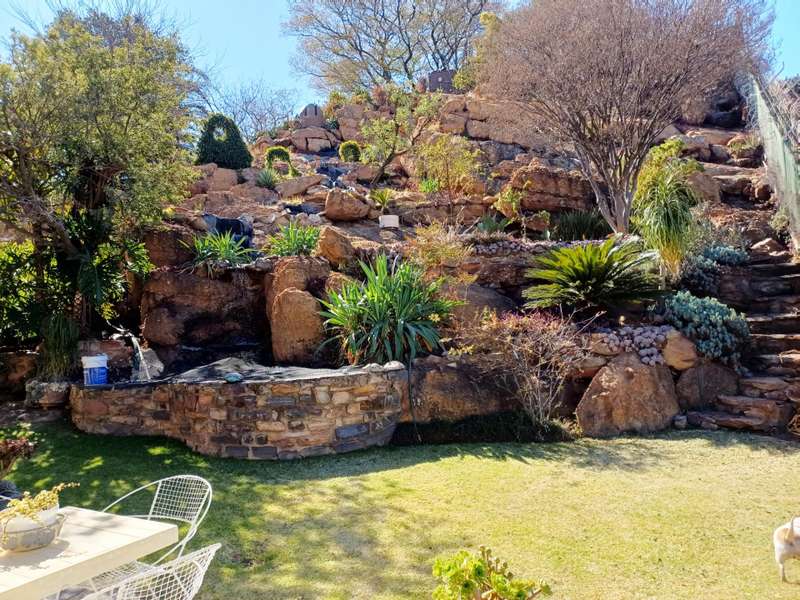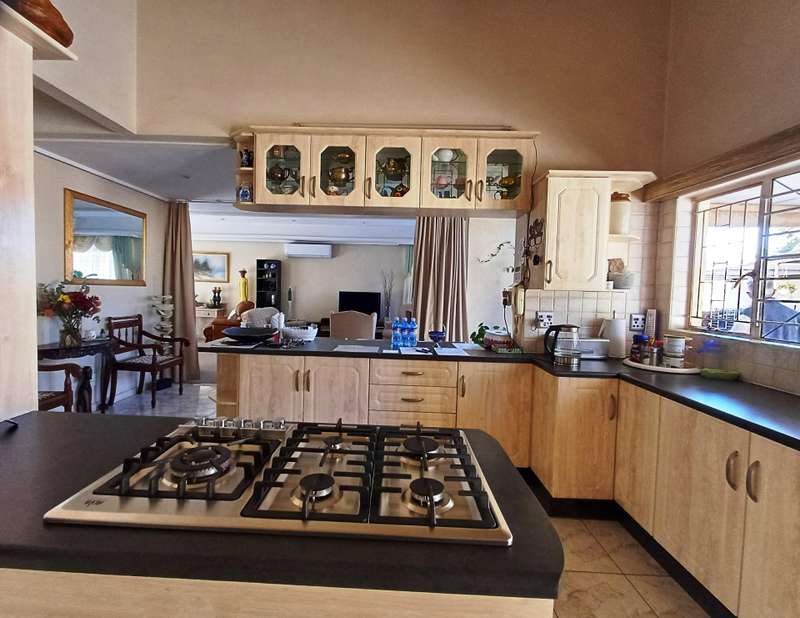 THIS BEAUTIFUL HOME OVERLOOKING THE LINMEYER HILLS THIS HOME OFFERS: Spacious open-plan kitchen with granite tops, a centre island with a 5-plate gas hob and a separate oven Loads of cupboard space for all your storage and space for your appliances. From the kitchen you walk through to the lounge and dining room overlooking the picturesque garden with a waterfall and fountain. Upstairs: There are 4 spacious bedrooms with built-in cupboards and fitted carpets 2 spacious bathrooms, one with a bath, basin & loo The master bedroom with a MES has a shower, basin & loo There is an outside room which can be used for an entertainment room with a patio ADDITIONAL: Double garage Alarm system Electric fence Intercom Security gates on all the outside doors