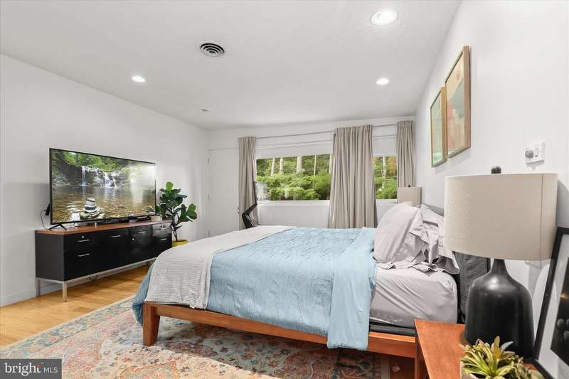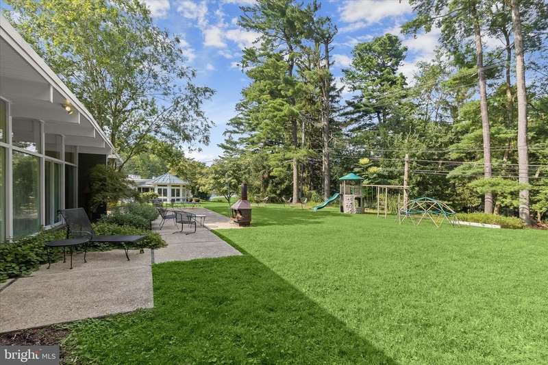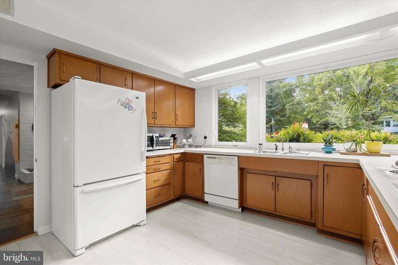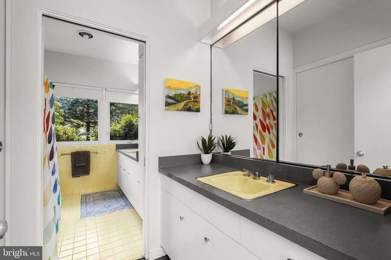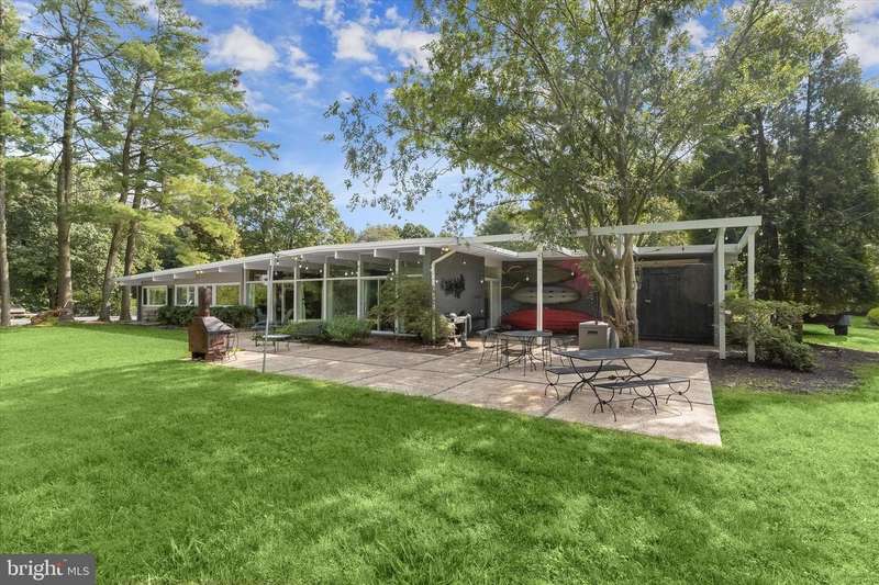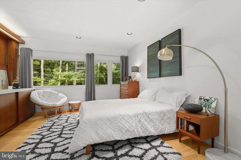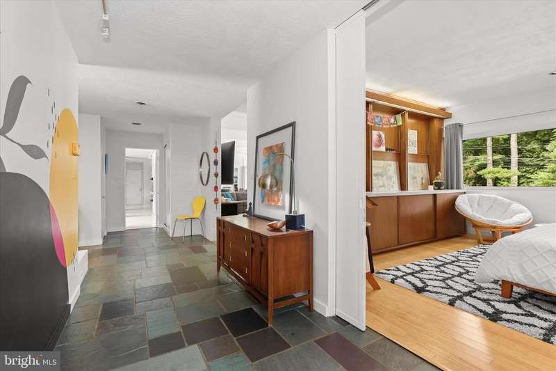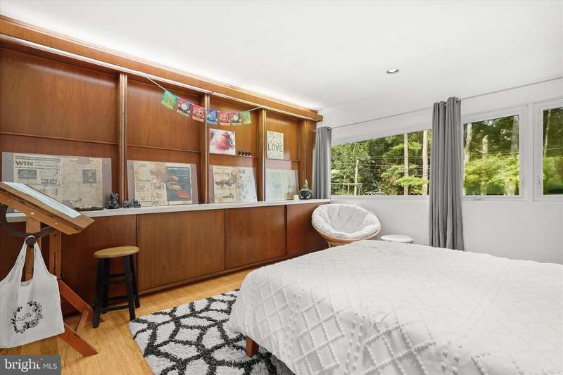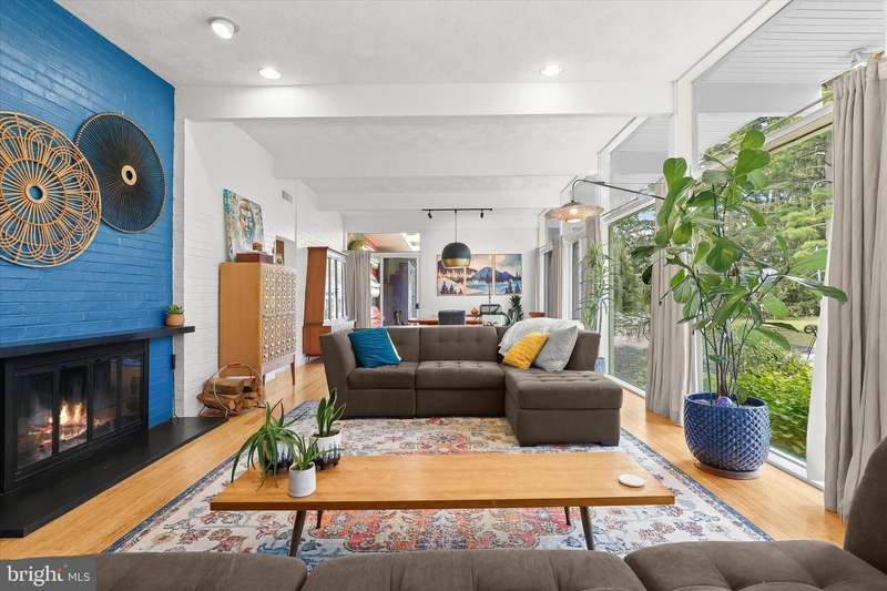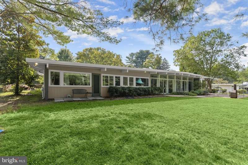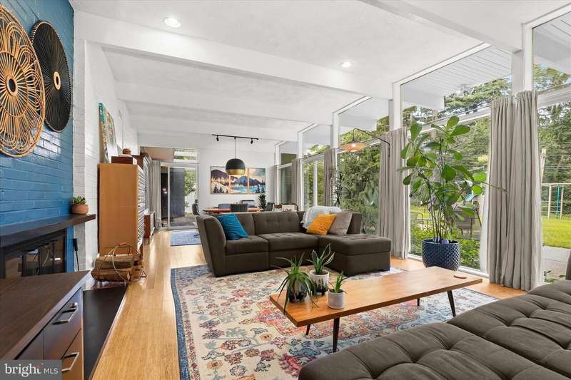 **HIGHEST AND BEST DUE SUNDAY 11/16 by 7PM** Welcome to this stunning Mid-Century Modern home designed and built by Gordon Sugar in the sought-after Stevenson, offering exceptional one-level living with four bedrooms and two-and-a-half bathrooms. Tucked away in a quiet cul-de-sac on a half-acre lot backing to trees, this home's peaceful setting provides a true retreat. Discover the warmth and charm of this inviting residence filled with natural light, where tall vaulted ceilings, brick walls, and slate and hardwood floors highlight its authentic 1950s craftsmanship. The impressive open-concept living and dining rooms are filled with natural light from floor-to-ceiling windows and sliding glass doors that open to the backyard, anchored by a cozy wood-burning fireplace. A spacious eat-in kitchen includes a breakfast nook perfect for casual meals. Completing this side of the home are a laundry room, half bathroom, and access to the two-car garage. On the opposite wing, the primary bedroom features a walk-in closet and a private ensuite bathroom with a walk-in shower. The second bedroom is a versatile space with sliding built-in cabinets that open to the living room, making it ideal as a den or office. Two additional bedrooms and a shared full hall bathroom with a tub-shower complete the layout. Outside, enjoy the expansive backyard with a large patio and plenty of room for gatherings. An outdoor storage closet holds everyday essentials, while a large underground fallout shelter offers additional flexibility and can be utilized for storage.