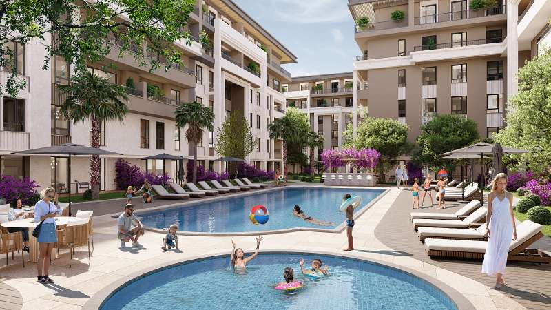 The project in Kartepe is situated on 63.000 m² total plots. There are 6 19-storey blocks within the accessible complex. The project offers a basketball court, communal garden, playground, sauna, outdoor parking, indoor and outdoor swimming pools, 24/7 security service, security cameras, Turkish bath, fitness center, lifts, and a social club.