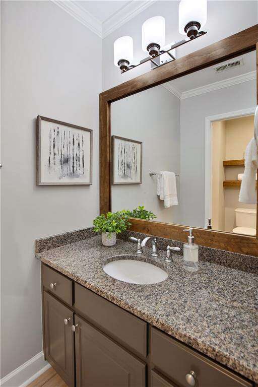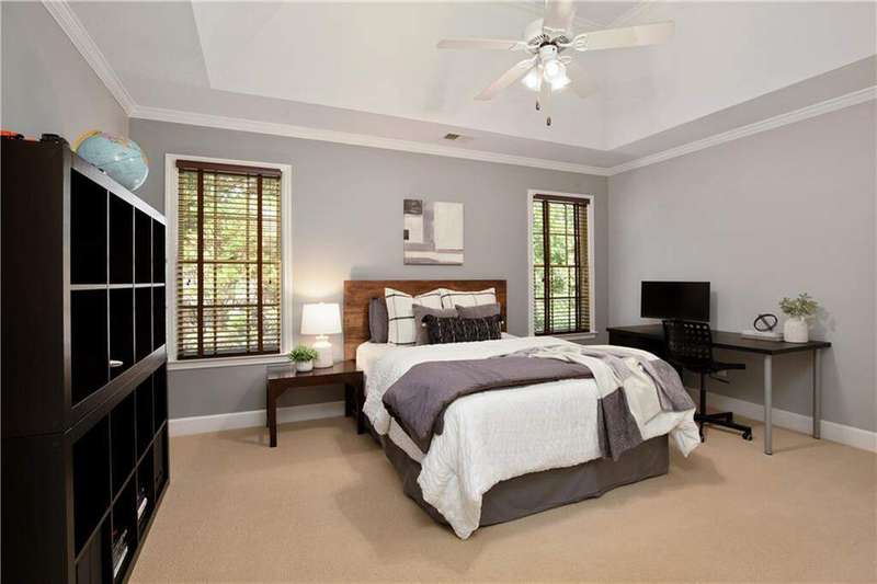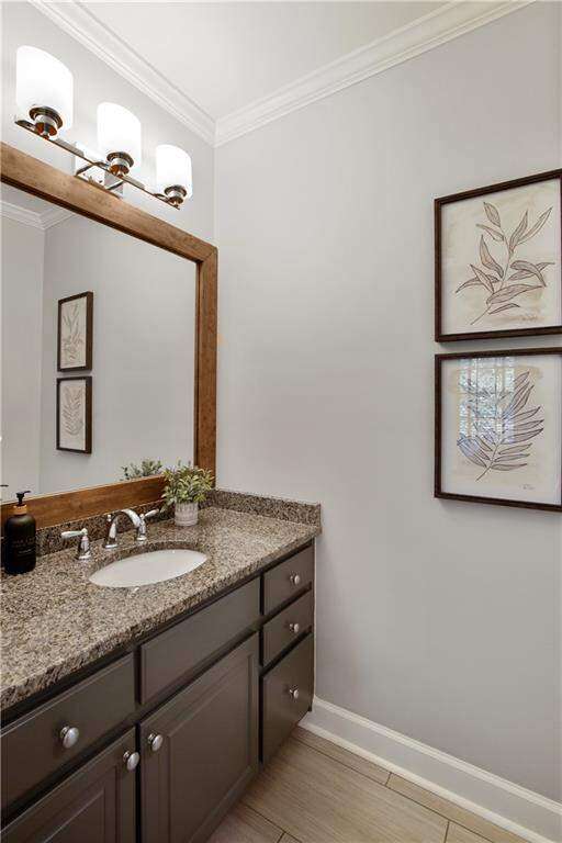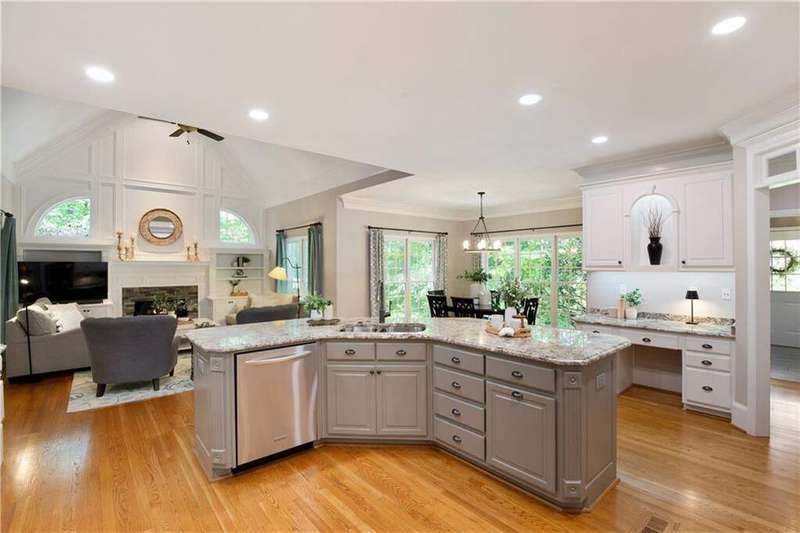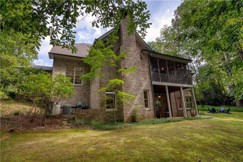 LUXURY LIVING IN WHITE COLUMNS W/ PRIMARY ON MAIN & DREAMY SCREENED PORCH. Nestled on a private, wooded 1.17-acre lot in the prestigious White Columns golf community, this timeless 4-sided brick traditional offers the perfect balance of classic elegance, modern updates, and a premier lifestyle. From the welcoming covered front entry to the serene, screened porch overlooking nature, every detail has been thoughtfully designed for refined living and easy entertaining. Step into a dramatic two-story foyer highlighted by elegant millwork and a wide hardwood staircase. The light-filled open floor plan showcases gleaming hardwood floors, oversized windows, and tranquil wooded views. A private office with extensive trim work and French doors is ideal for working from home, while the banquet-sized dining room sets the stage for memorable gatherings. The soaring two-story great room impresses with a wall of windows, custom built-ins, a cozy fireplace and French doors to the screened porch. The updated chef's kitchen features painted cabinetry, granite countertops, a decorative glass tile backsplash, newer stainless-steel appliances, double ovens, an expansive island with seating for six, a walk-in pantry, and both a butler's pantry and desk or coffee nook. Flow seamlessly into the vaulted keeping room with built-ins, a stone fireplace, and access to the screened porch, creating an inviting space for everyday living and entertaining. The screened porch with ceiling fans is the ultimate outdoor living room, perfect for entertaining, dining al fresco or relaxing while enjoying the wooded backdrop. The generous primary suite on main offers a peaceful retreat with a trey ceiling, serene sitting area, dual walk-in closets, and a renovated, spa-inspired bath with quartz countertops, a frameless glass shower, and luxurious soaking tub. Upstairs you'll find three spacious secondary bedrooms, including one with an en suite bath and two with a shared bath featuring separate vanity areas. A bonus/flex room provides the perfect spot for a study nook, playroom, or fitness space, while a huge walk-in linen closet and walk-in attic storage offer plenty of organizational space. The unfinished, window-filled, daylight terrace level delivers endless possibilities! It spans over 2,800 square feet with high ceilings and walk-out access to the covered patio and backyard. A rare blank canvas, it's easily transformed into your dream space - whether an entertainment area with bar/kitchen, media room, home gym, guest suite, workshop, or wine cellar... White Columns Country Club members enjoy world-class amenities, including a Tom Fazio-designed championship golf course, newly renovated pool complex with cabanas and splash park, complete tennis and pickleball programs, clubhouse with multiple dining options, a fitness center, and an active social calendar. Don't miss this rare opportunity to experience privacy, luxurious living and an exceptional lifestyle at 711 Hallbrook Court.