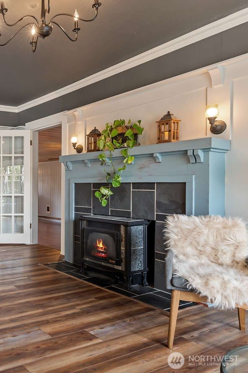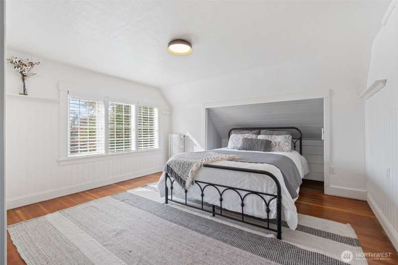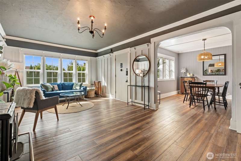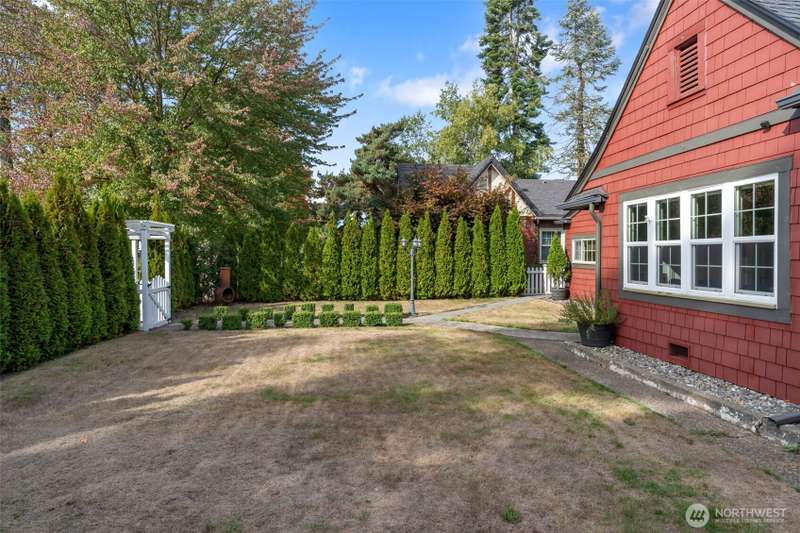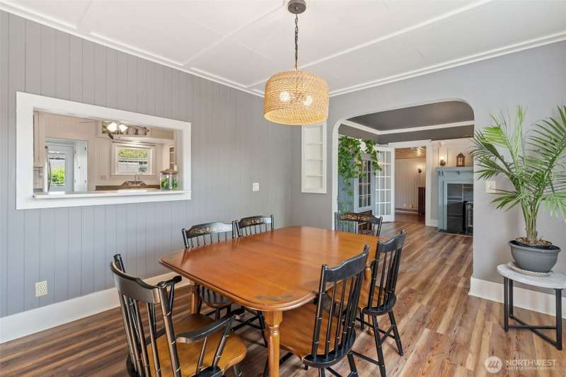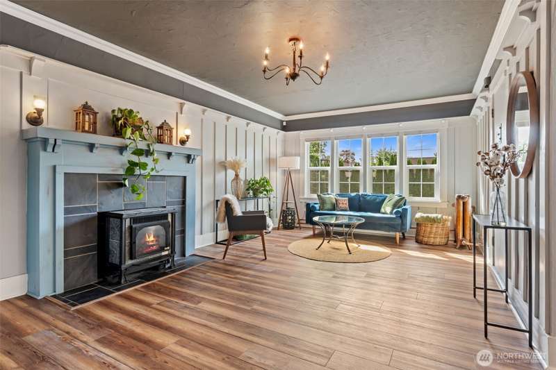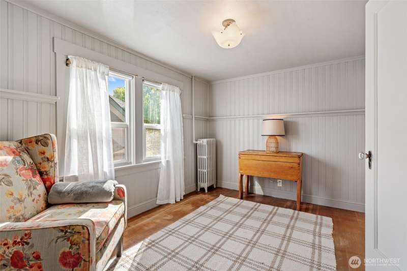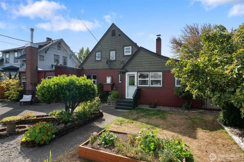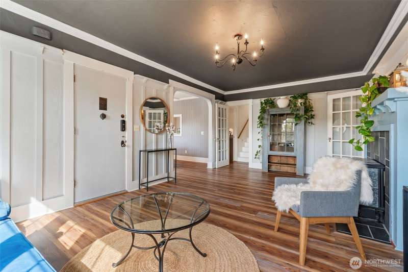 Stunning Edison Tudor with over 2,600 sq. ft. of charm and flexibility! This home offers 3 bedrooms, 2 beautifully updated baths, formal dining, multiple living areas with fireplaces, and a den/office behind French doors. Choose between an upper-level primary retreat with sitting area or a convenient lower-level suite. Major updates include new siding, roof, paint, and electrical. The original millwork and wood tongue and groove are outstanding. Outside, enjoy a private fenced yard with mature landscaping, outbuildings, covered parking, and bonus space perfect for guests, office, or Airbnb. A move-in ready gem with room to grow!