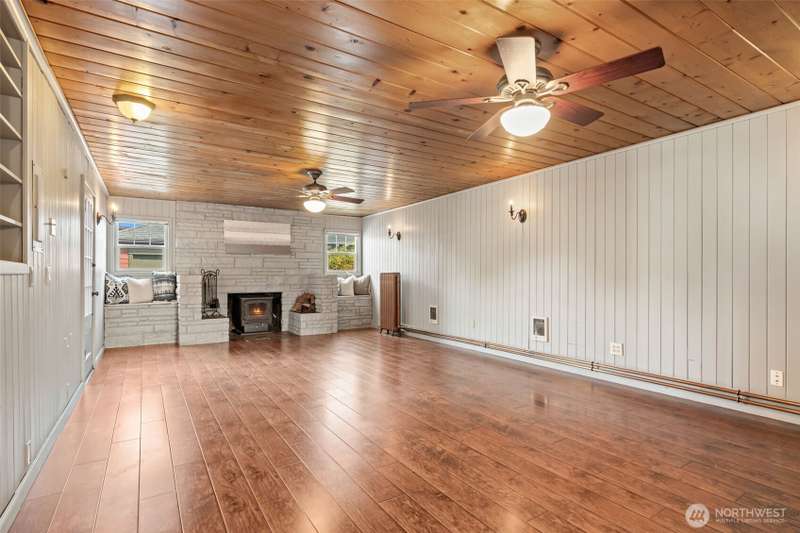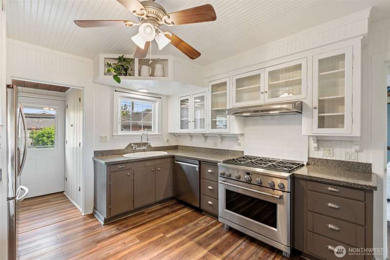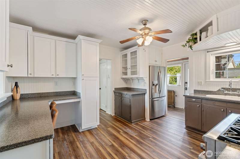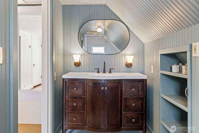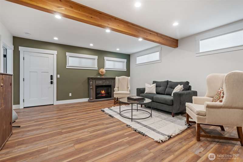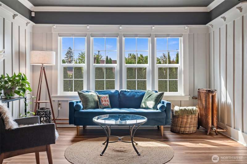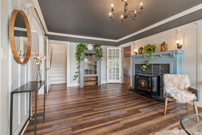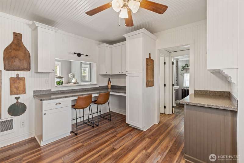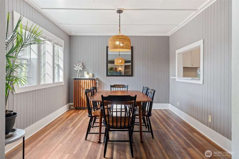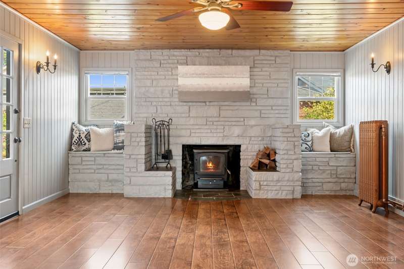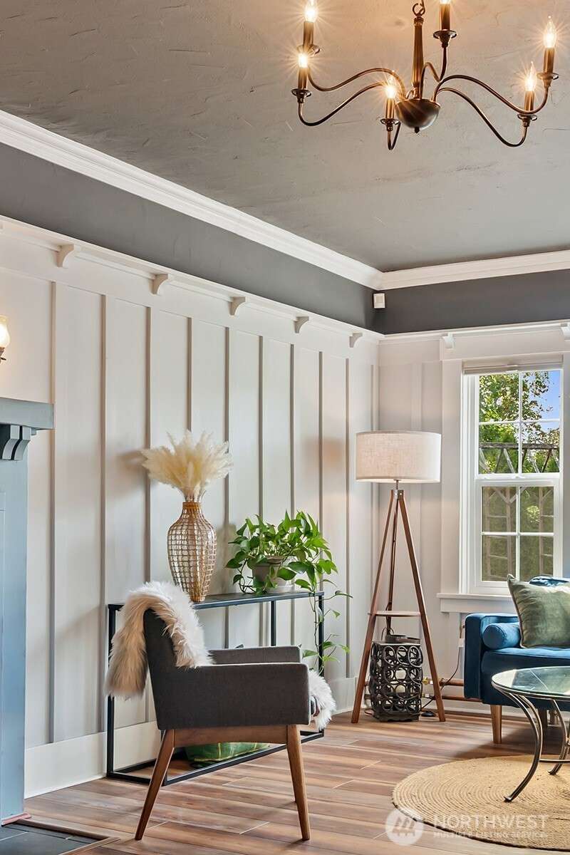 Stunning Edison Tudor with over 2,600 sq. ft. of charm and flexibility! This home offers 3 bedrooms, 2 beautifully updated baths, formal dining, multiple living areas with fireplaces, and a den/office behind French doors. Choose between an upper-level primary retreat with sitting area or a convenient lower-level suite. Major updates include new siding, roof, paint, and electrical. The original millwork and wood tongue and groove are outstanding. Outside, enjoy a private fenced yard with mature landscaping, outbuildings, covered parking, and bonus space perfect for guests, office, or Airbnb. A move-in ready gem with room to grow!
