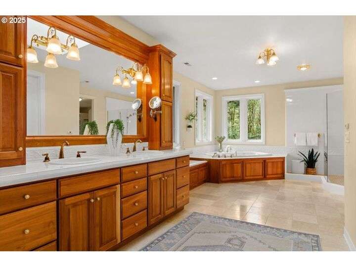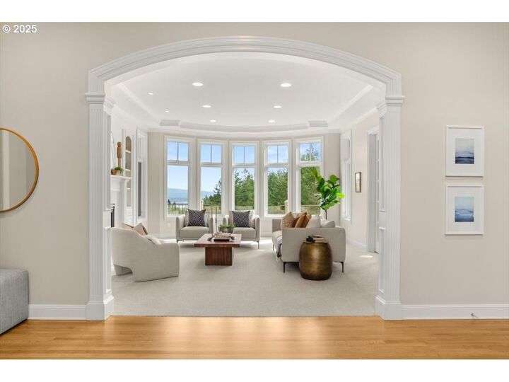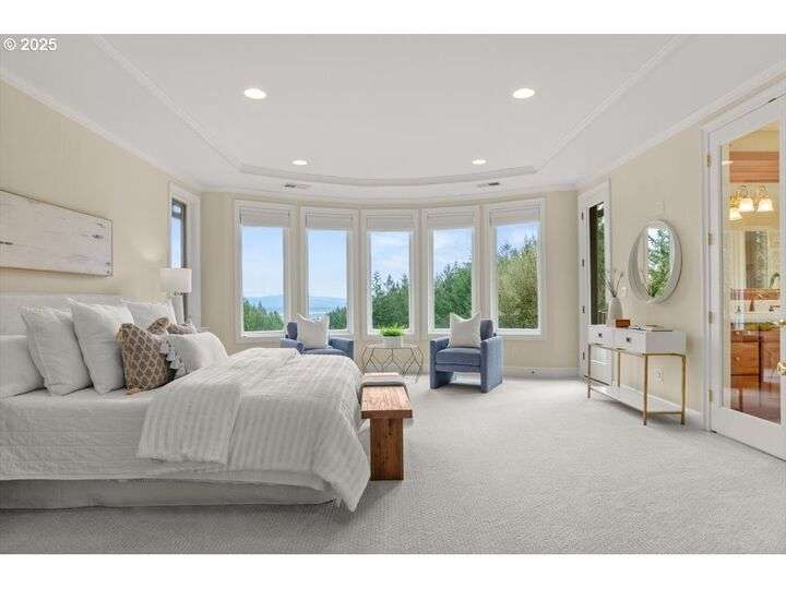 The Lightning Ridge Estate — A Singular Offering in NW Portland. Nearly 10 gated acres of forested privacy and architectural grace. 8,913 sq ft with soaring ceilings, custom finishes, walls of glass, and a layout ideal for multi-generational living. Includes an award-winning, spa-level fitness suite with built-in zones and hookups for sauna, cold plunge, and gym. Also features a private guest suite with kitchen and a three-car garage discreetly positioned for design continuity. Multiple patios, extensive gardens, and private trails enhance daily living. Minutes to Forest Park, top-rated schools, and the cultural heart of the city. •••A property tax appeal has been filed. [Home Energy Score = 2. HES Report at https://rpt.greenbuildingregistry.com/hes/OR10053730]