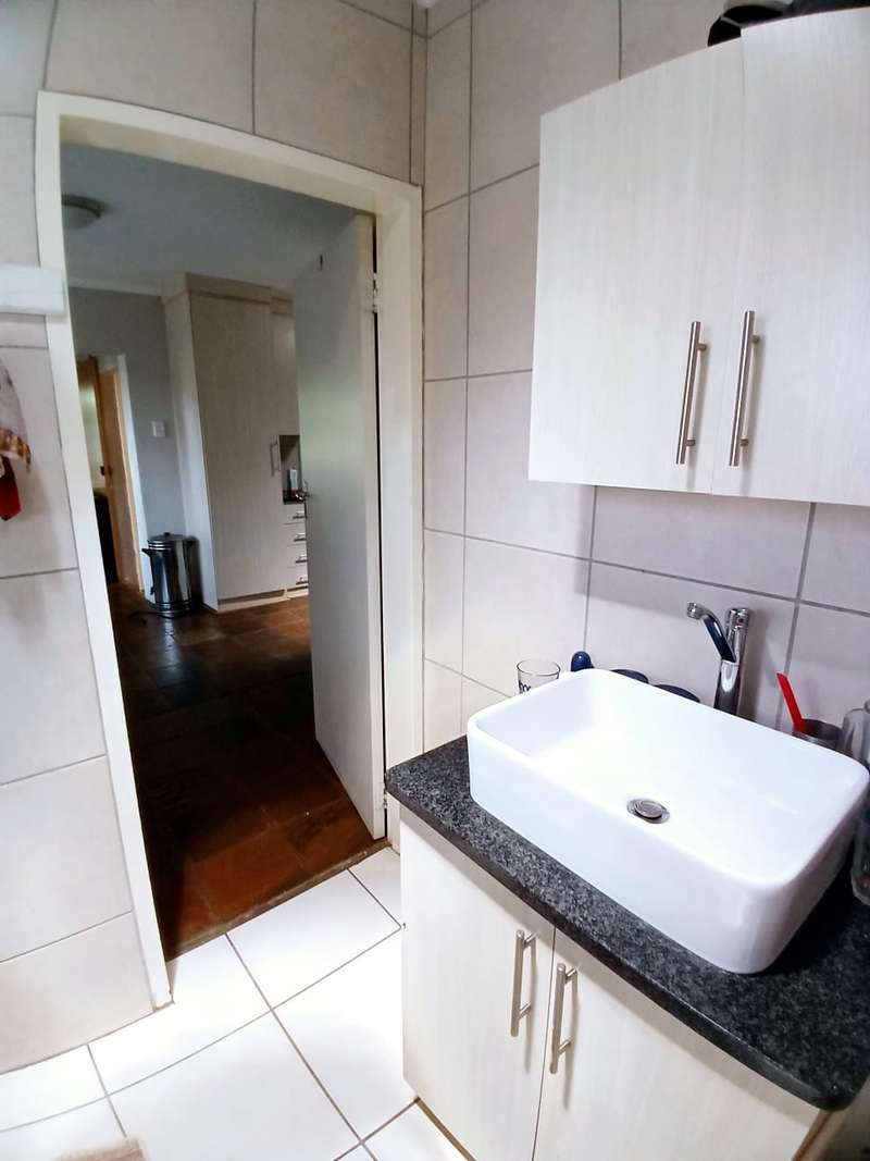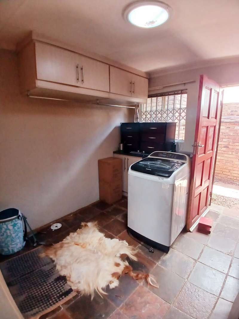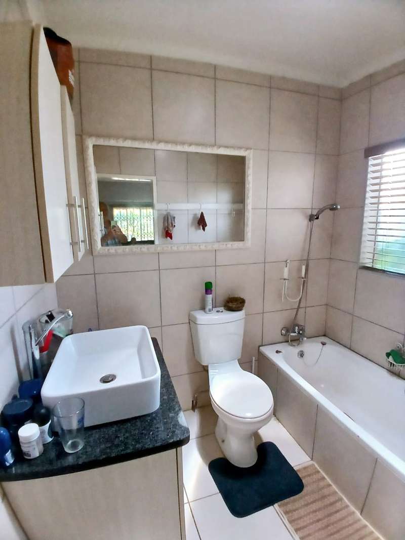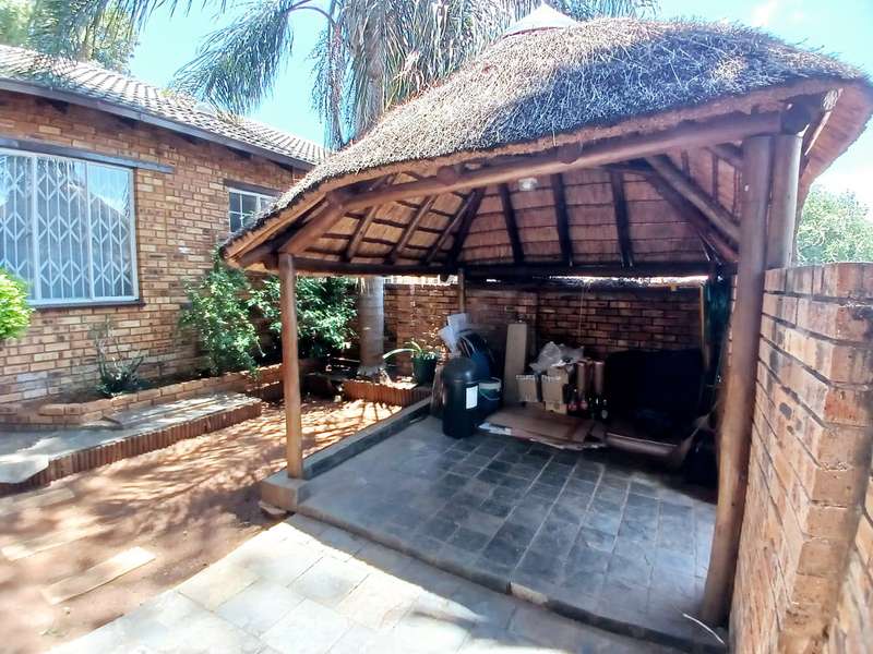 Exclusive Mandate !!! Immaculate two bedrooms with large cupboards. Bathroom and toilet with shower fitted over bath. Lots of natural light filtering through several skylights. Slate tiled floors give a special ambience to this property. Modern kitchen with ample cupboards and marble worktops. Open plan living and dining area. Separate lounge with sliding door leading to the cosy thatched lapa and entertainment area. Secure estate. Ideal for first time buyer. Ready for occupation! Call for viewing appointment.