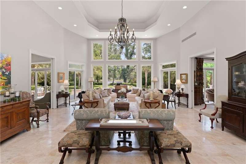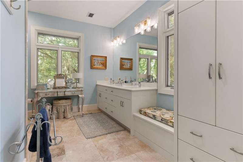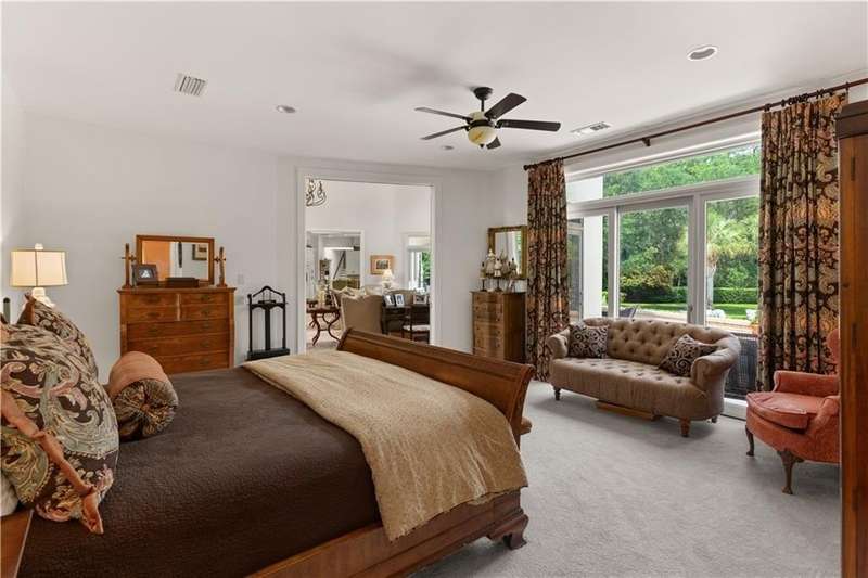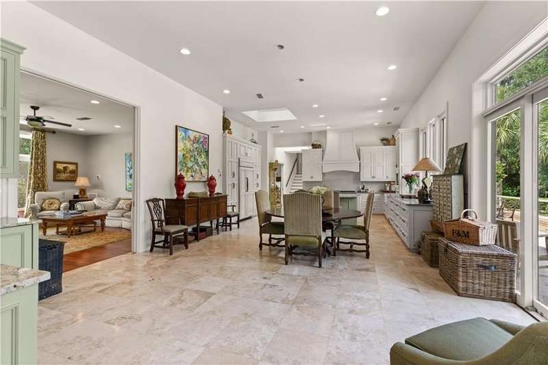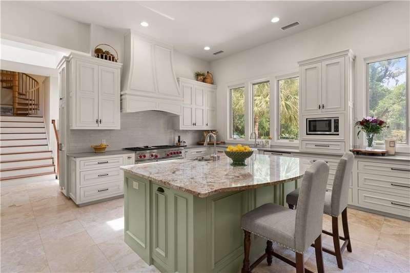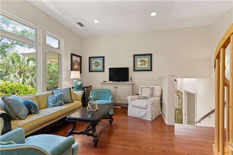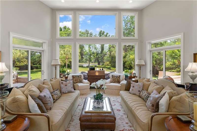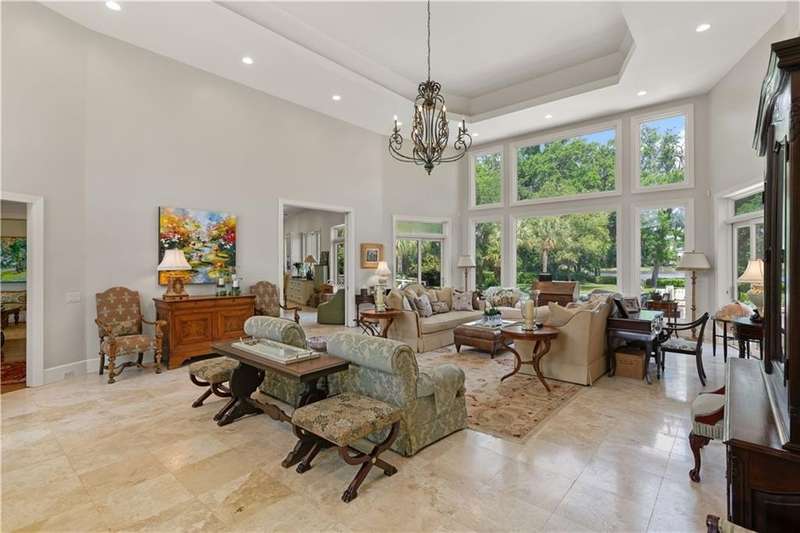 This custom-built 4-bedroom, 4-bathroom residence in the prestigious Sea Island neighborhood of Kings Point combines refined luxury with everyday comfort. Set on a large lot with an expansive private backyard and beautiful lake views, this home is a rare find. Step inside to discover oversized rooms, dramatic 20-foot ceilings, and an open layout bathed in natural light. The chef’s kitchen has been fully renovated and features custom cabinetry, marble countertops, a spacious island, and premium appliances—ideal for entertaining. The living room offers panoramic lake views, while the family room and newly renovated bedrooms bring warmth and elegance. Wide-plank wood flooring runs throughout, enhancing the home's timeless appeal. The primary suite is a luxurious retreat with two walk-in closets and a spa-like bathroom. A second ensuite bedroom provides privacy for guests or multigenerational living. Additional highlights include a large recreation room, a home office, and potential for a fifth bedroom. Enjoy resort-style outdoor living with a 40-ft saltwater pool, built-in firepit, and in-ground trampoline. Recent upgrades include new HVAC systems, a new roof, and sleek modern finishes. Ideally located near the Sea Island Lodge, Frederica Academy, and top dining, this home offers unmatched lifestyle and value in a prime coastal location. Matterport tour: https://my.matterport.com/show/?m=Scbac7bJxFd