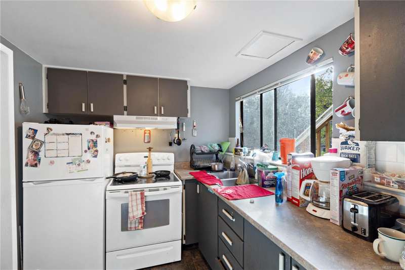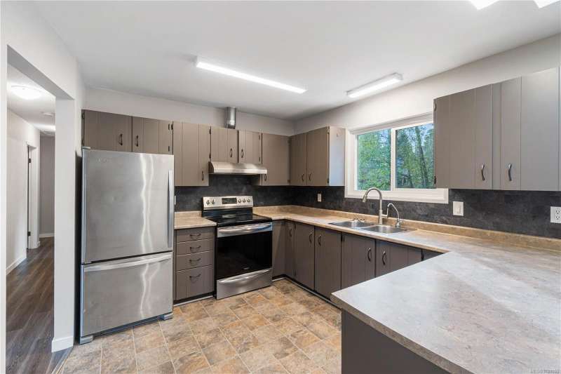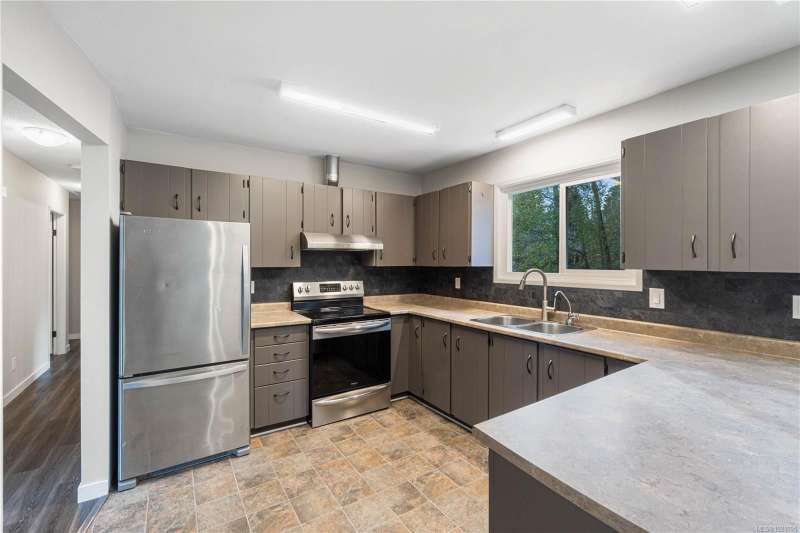 Welcome to a piece of paradise in the city! This beautifully updated 5-bedroom 3 bathroom home sits on over a quarter acre with peaceful views of year-round flowing Beaver Creek. Watch ducks wander by and even the local beavers at work. The yard is a true oasis—perfect for gardens, play space, or even chickens—and offers ample room for RVs, boats, trucks, and all your toys. Upstairs features 3 generous bedrooms, 2 bathrooms, an open-concept living/dining area, skylights, and a cozy gas fireplace. Fresh paint, an updated kitchen, and a newly renovated bathroom elevate the space. Downstairs offers a bright, self-contained 2-bedroom suite. Updates include vinyl windows, new gravel driveway, poured concrete patio, leaf-guard gutters, electrical improvements & more. Book your showing today!