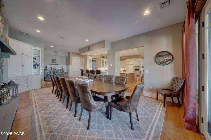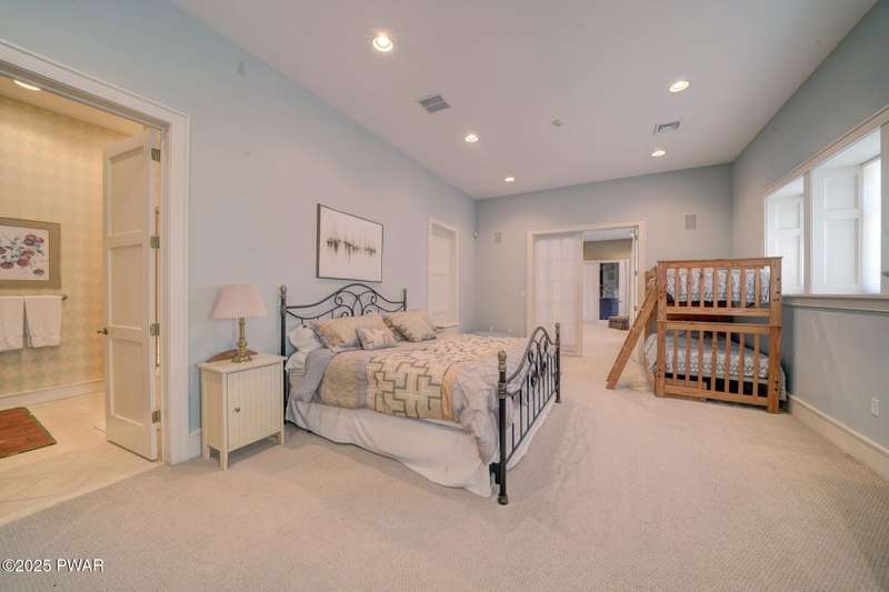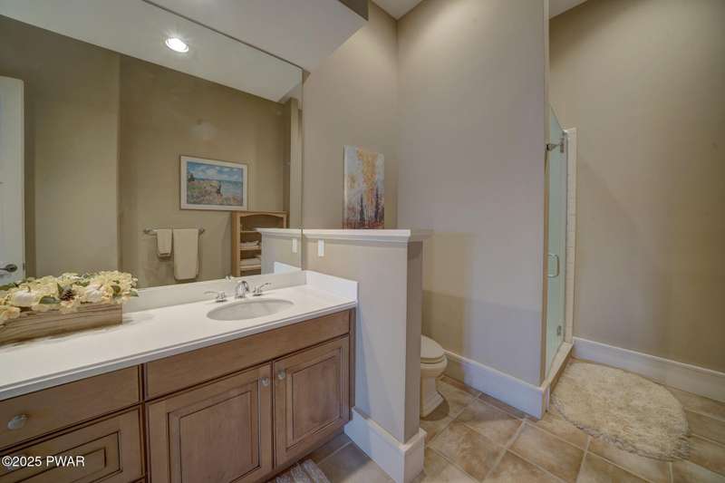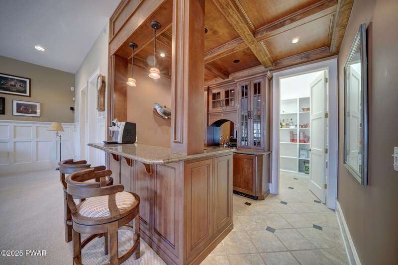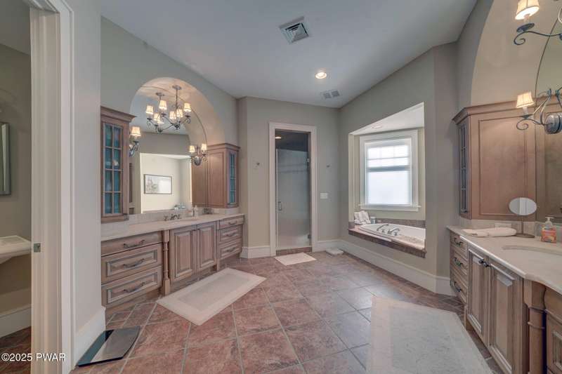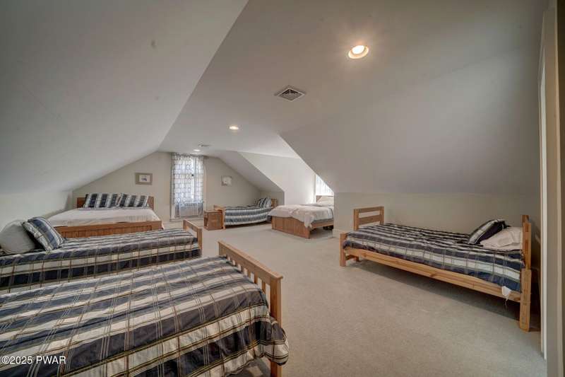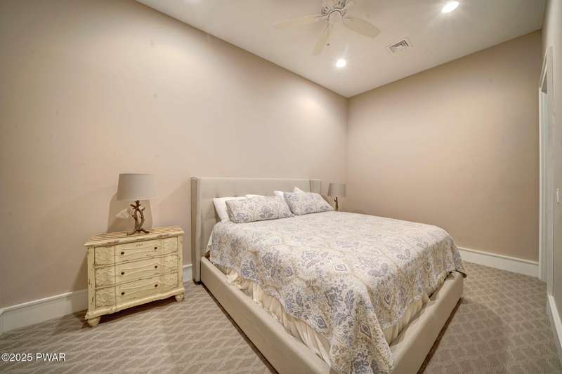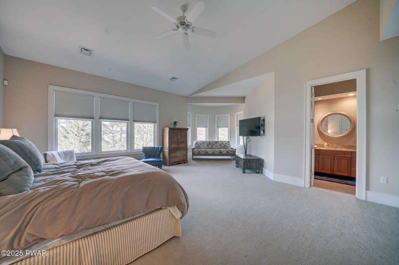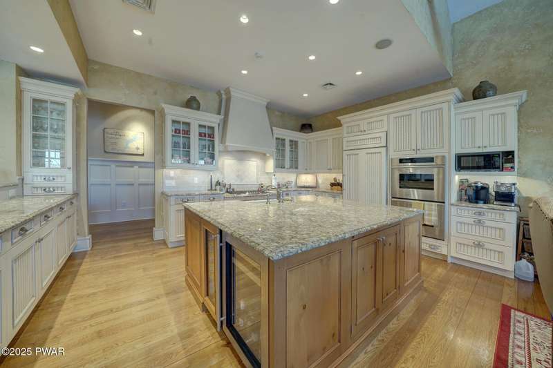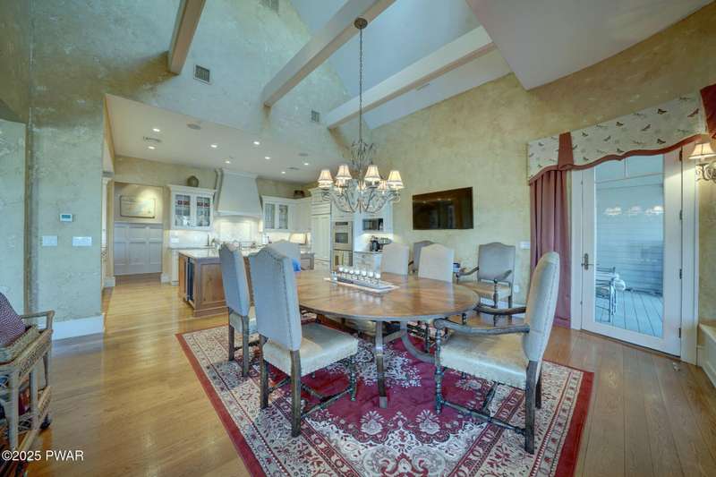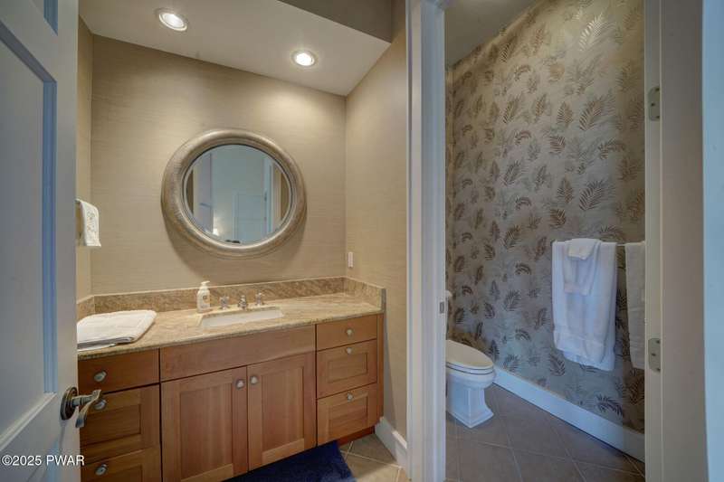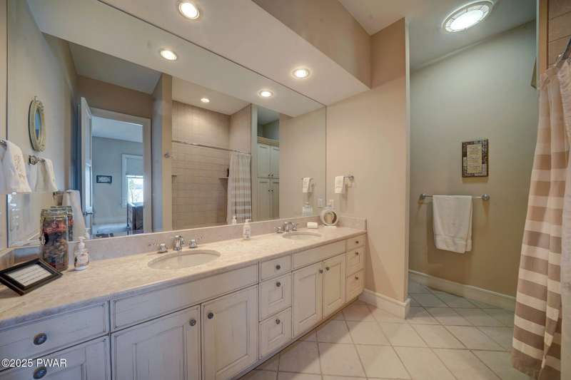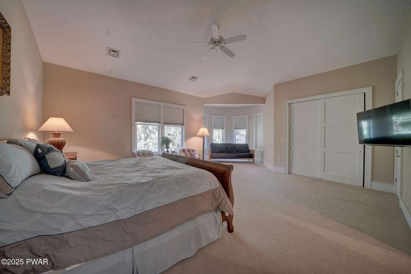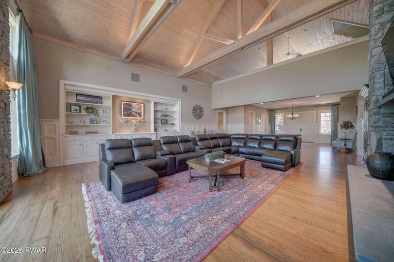 Nestled at the point in the exclusive Whispering Pines community, this remarkable home stands unparalleled on Lake Wallenpaupack. A gated entrance offers the ultimate in seclusion & privacy, creating the perfect retreat for your lakeside escape. The property spans 2.36 acres, boasting over 850' of pristine frontage on Pennsylvania's largest man-made lake. The soaring ceilings, built-in features, and a stunning floor-to-ceiling stone fireplace in the main living room will leave you in awe. The gourmet kitchen, located just down the hall, overlooks a spacious dining area & is outfitted w/ top-of-the-line stainless steel appliances, a large granite island, hardwood floors, & more. A nearby sitting room w/ its own stone fireplace provides a cozy space for entertainment. Both the living room, sitting room, & dining room open to a partially covered deck. The main level also includes a half bath and a study, providing the ideal start to the expansive master suite.The entire right wing of the 1st floor is dedicated to the luxurious master suite, featuring a spa-like bath w/ a Jacuzzi tub, walk-in shower, double sinks, & a large WIC. The spacious bedroom includes a sitting area & offers breathtaking views of Lake Wallenpaupack, which can be seen from nearly every room in the home.The left wing of the home is home to four add'l bdrm suites, each w/ its own private bath. Above the garage, you'll find a private suite, while the lower level features 2 more bdrm suites. There certainly is plenty of sleeping space in this home! The fully finished, walkout lower level is designed for fun & relaxation, offering multiple sitting areas, a double-sided stone fireplace, cigar room & a fully equipped game room. There's ample storage space and a charming wet bar, making it an ideal space for family & friends.Part of what makes this property unique is a lakeside basketball/tennis court!! Enjoy a game only a few feet from Lake Wallenpaupack!