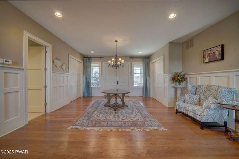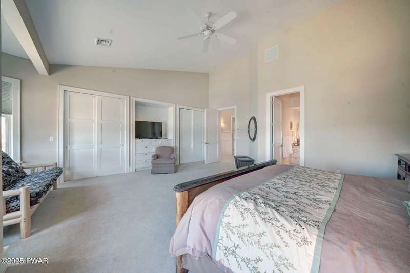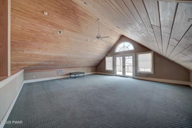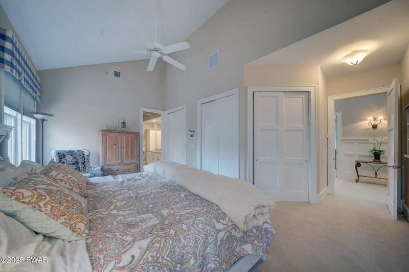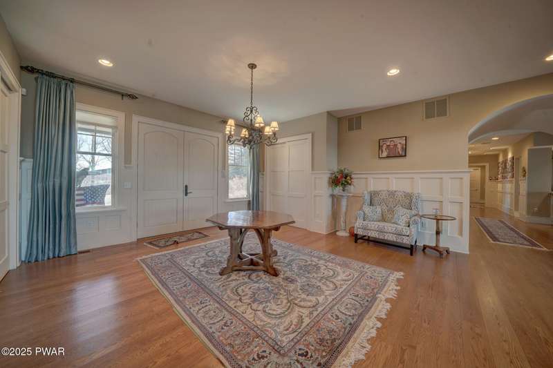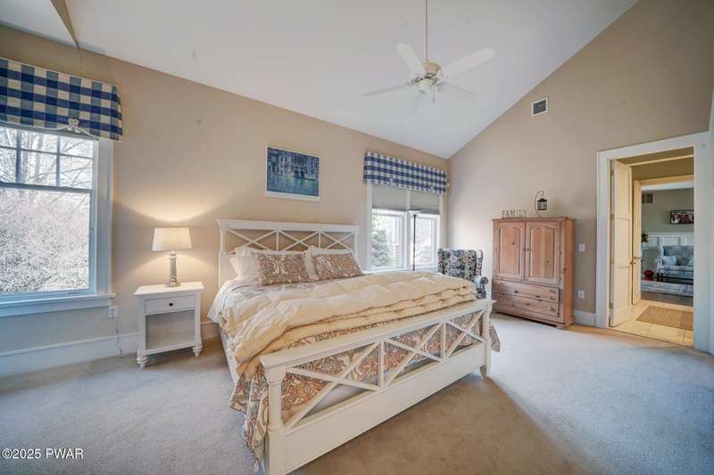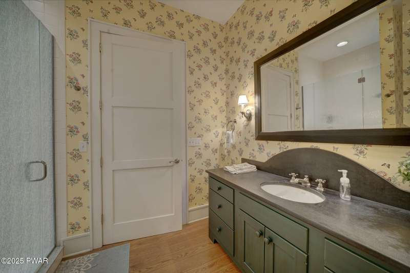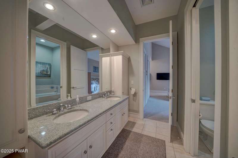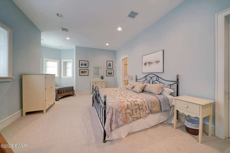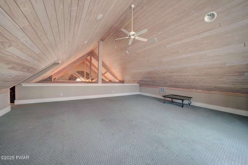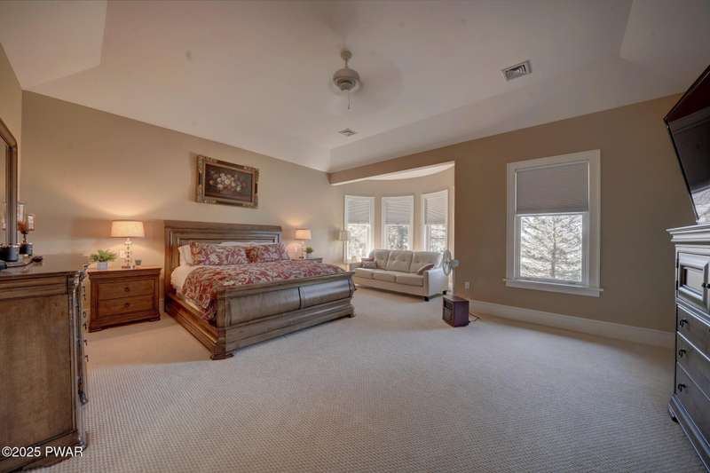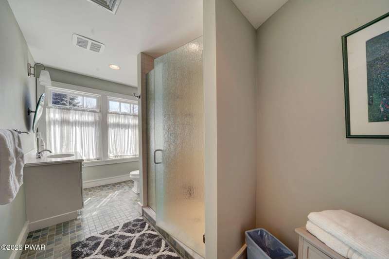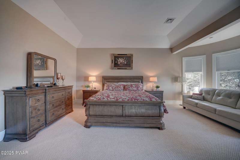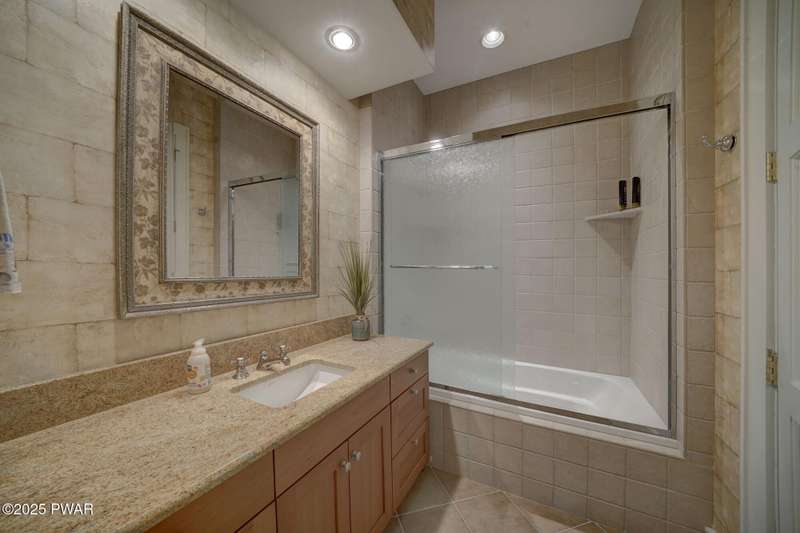 Nestled at the point in the exclusive Whispering Pines community, this remarkable home stands unparalleled on Lake Wallenpaupack. A gated entrance offers the ultimate in seclusion & privacy, creating the perfect retreat for your lakeside escape. The property spans 2.36 acres, boasting over 850' of pristine frontage on Pennsylvania's largest man-made lake. The soaring ceilings, built-in features, and a stunning floor-to-ceiling stone fireplace in the main living room will leave you in awe. The gourmet kitchen, located just down the hall, overlooks a spacious dining area & is outfitted w/ top-of-the-line stainless steel appliances, a large granite island, hardwood floors, & more. A nearby sitting room w/ its own stone fireplace provides a cozy space for entertainment. Both the living room, sitting room, & dining room open to a partially covered deck. The main level also includes a half bath and a study, providing the ideal start to the expansive master suite.The entire right wing of the 1st floor is dedicated to the luxurious master suite, featuring a spa-like bath w/ a Jacuzzi tub, walk-in shower, double sinks, & a large WIC. The spacious bedroom includes a sitting area & offers breathtaking views of Lake Wallenpaupack, which can be seen from nearly every room in the home.The left wing of the home is home to four add'l bdrm suites, each w/ its own private bath. Above the garage, you'll find a private suite, while the lower level features 2 more bdrm suites. There certainly is plenty of sleeping space in this home! The fully finished, walkout lower level is designed for fun & relaxation, offering multiple sitting areas, a double-sided stone fireplace, cigar room & a fully equipped game room. There's ample storage space and a charming wet bar, making it an ideal space for family & friends.Part of what makes this property unique is a lakeside basketball/tennis court!! Enjoy a game only a few feet from Lake Wallenpaupack!