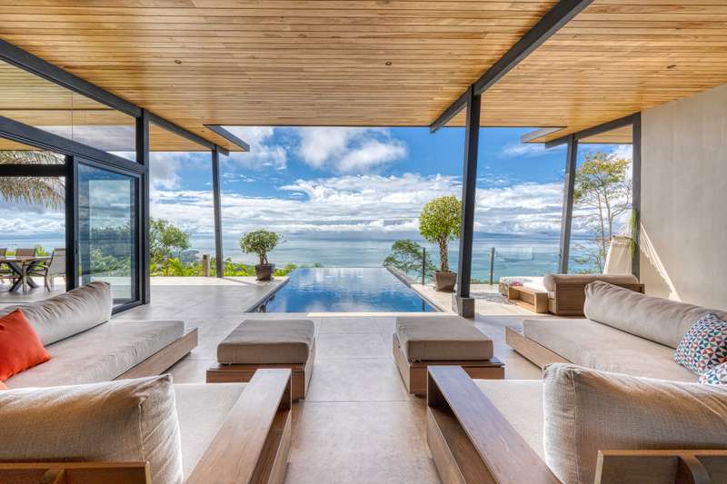 Positioned above the esteemed Whales Tail National Park in Uvita, Costa Rica, this magnificent 5-bedroom house offers vistas that echo the grandeur of Big Sur in California and the charm of the French Riviera. The Hermosa Retreat is a haven of luxury with easy access, designed for those who savor the finer things in life.