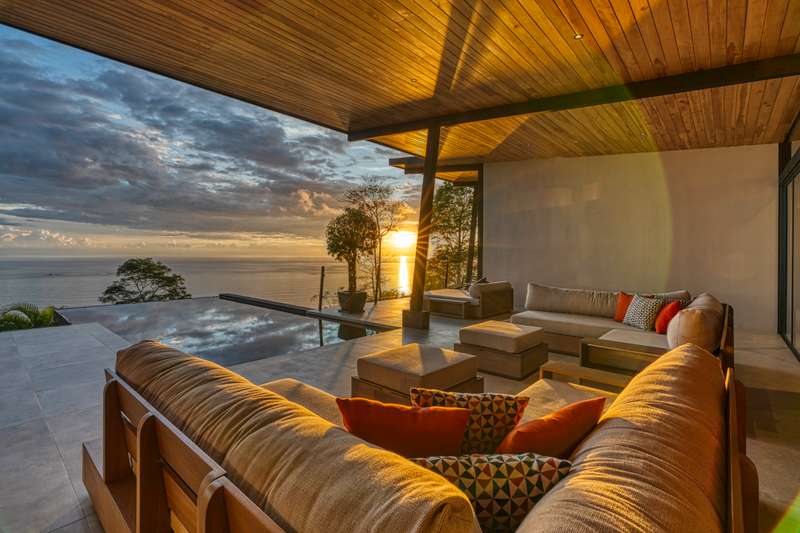 Step into the living space of Hermosa Retreat, a masterpiece of tropical sophistication, where every corner whispers luxury. Here, the indoors seamlessly blend with the outdoors, leading you to an expansive terrace. Imagine lounging on sofas, feeling the gentle breeze, or swaying peacefully in a hammock. This outdoor haven is not just a place but an experience, offering a serene backdrop for relaxation, yoga sessions, or meditative escapes amidst the embrace of nature's splendor.