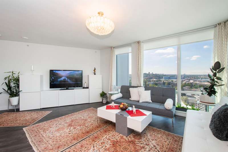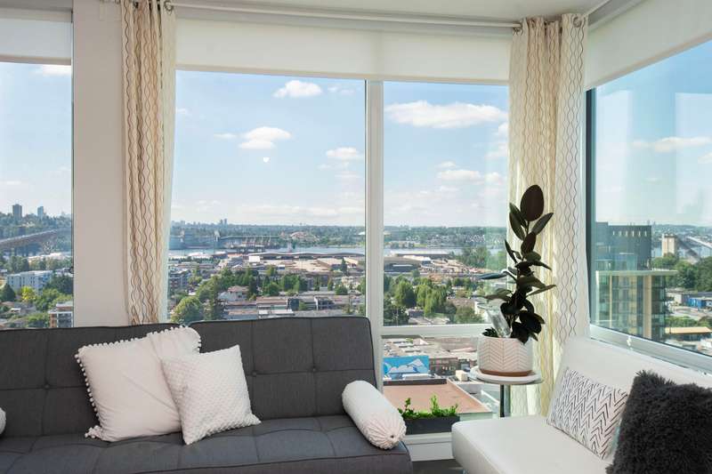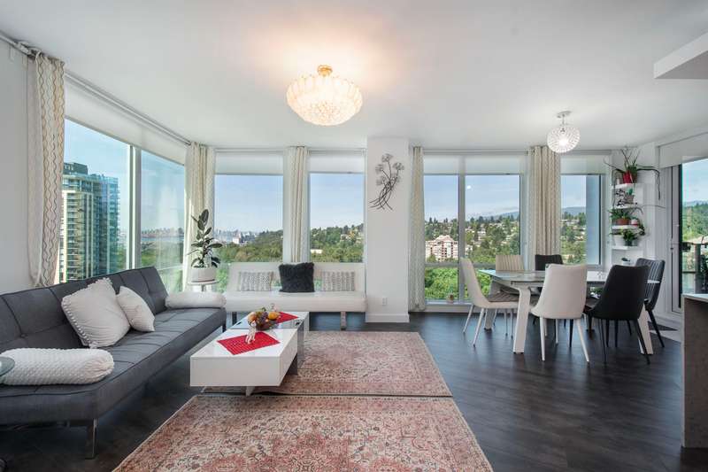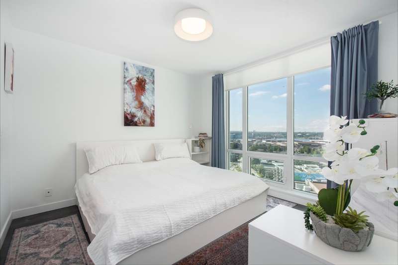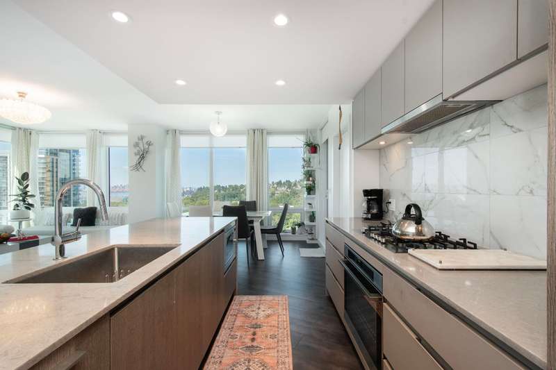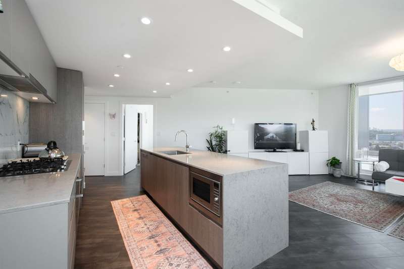 View! View! View! Discover this stunning 2-bedroom plus den, 2-bathroom corner unit, offering breathtaking South and West facing views. The thoughtful layout features an open-concept living space filled with natural light, a modern kitchen with stainless steel appliances, and a versatile den perfect for a home office/extra small bed. Building has 5 Elevators! Indulge in luxurious amenities including a fully equipped gym, amazing swimming pool, Guest suite, Bicycle rooms and all necessity for bike maintenance, and elegant party rooms for entertaining. Conveniently located near shopping, dining, transportation, and Hwy 1, this is the ultimate urban retreat. Ev parking, ample storage. The best floor plan and view in the Building! OPEN HOUSE BY APPOINTMENT.