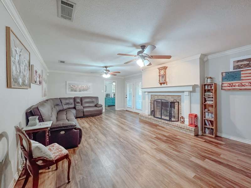 Discover the perfect blend of comfort, functionality, and charm in this spacious 3-bedroom, 2-bath home. From the moment you step inside, youre greeted by an inviting living room anchored by a cozy fireplaceideal for relaxing evenings or gathering with family and friends. A separate den offers even more living space, perfect for a media room, playroom, or home office, giving you the flexibility to design the home around your lifestyle. The thoughtfully designed galley kitchen makes meal preparation a breeze and is conveniently situated between two dining spaces: a sunny breakfast room for casual mornings and a formal dining room thats perfect for hosting dinners, celebrations, and holidays. The primary bedroom serves as a comfortable retreat, complete with its own private bath. Two additional bedrooms provide plenty of space for family, guests, or hobbies. Each space in the home is thoughtfully laid out to maximize both comfort and convenience. Step outside to a covered back porch, where you can enjoy your morning coffee, unwind after a long day, or host weekend BBQs rain or shine. The large fenced backyard offers endless possibilities for gardening, play areas, or simply relaxing in the fresh air. A storage building in the backyard provides space for tools and equipment, while the attached garage offers additional storage solutions to help keep your home organized. With its versatile layout, multiple living spaces, and generous outdoor area, this home is ready to welcome its next chapterand its next owner.